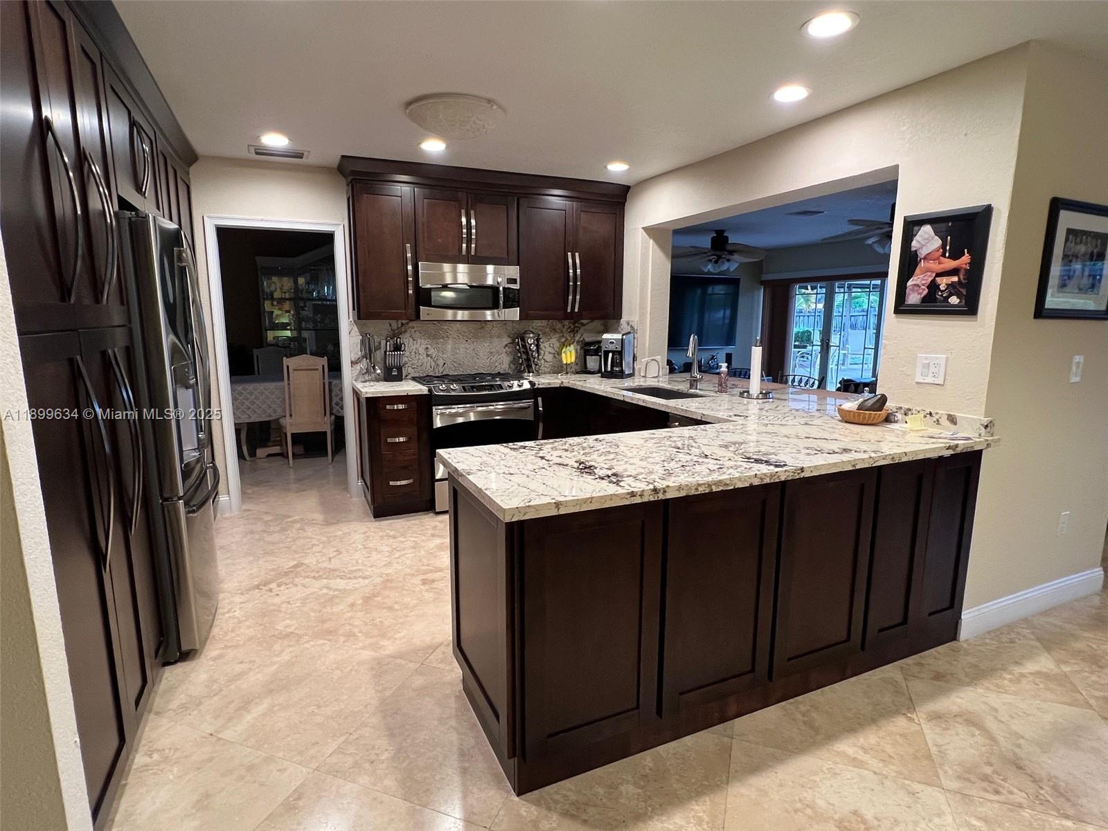 LOCATION, LOCATION, LOCATION! Enjoy breathtaking lake views in this beautiful 3-bedroom/2-bathroom lakefront pool home on quiet cul-de-sac in gated Lake Glenn-Ellen section of Miami Lakes. Split bedroom plan, separate informal dining and office areas, travertine marble floors, upgraded kitchen with stainless steel appliances and granite countertops.