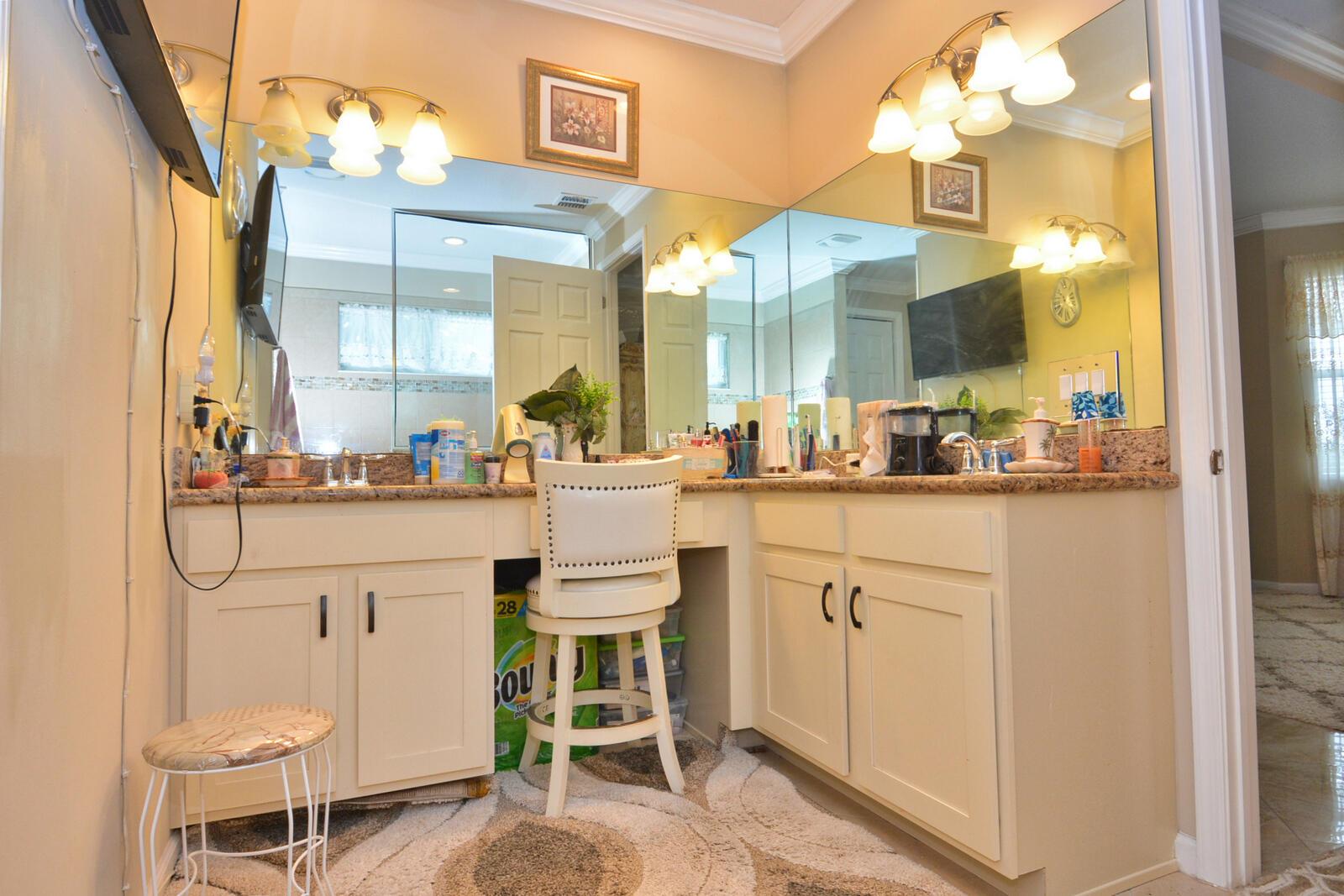 This gated community has a club house 2 pools and other activities.This has a split floor plan with 2 bedrooms and a den is decorated as a 3rd bedroom off the 1/2 bath. Many upgrades include crown molding throughout, screened lanai plus an extended paver area overlooking the lake. The updated kitchen has subway style backsplash, wall oven, island kitchen with granite counters, ceiling fans in all rooms and on the lanai, whole home water conditioner system, garage door opener and storage shelves in the garage. To complete this home it also has an instant hot water heater. The home is beautifully decorated with a formal dining room as well as a kitchen nook, formal living room and family room. Enjoy all the Tradition events and shopping. Tradition has the outdoor market on Sundays.