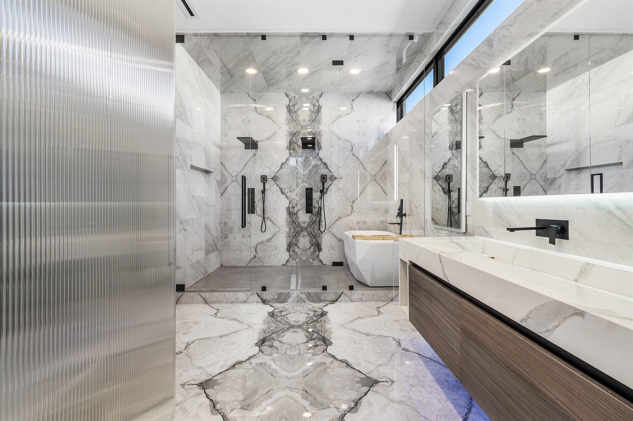 Built in 2023 by Primo Construction, this striking three-story modern estate in Boca Villas offers 6 bedrooms, office, 6.1 baths, and 4,916 sq. ft. of exceptional design and craftsmanship. Constructed entirely of concrete on every level with no wood, the home features porcelain flooring, 24-foot ceilings, and floor-to-ceiling glass walls.The chef's kitchen showcases white lacquered cabinetry, Wolf 60'' range with double ovens, Sub-Zero refrigerator and freezer, a commercial exhaust system, and massive walk-in pantry. A glass elevator, custom 600-piece hand-blown glass installation, and glass railings elevate the interiors. Full house generator, Smart-home technology includes Leviton & Home Assistant integration, Ubiquity Wi-Fi, and five Mitsubishi ultra-quiet commercial A/C zone