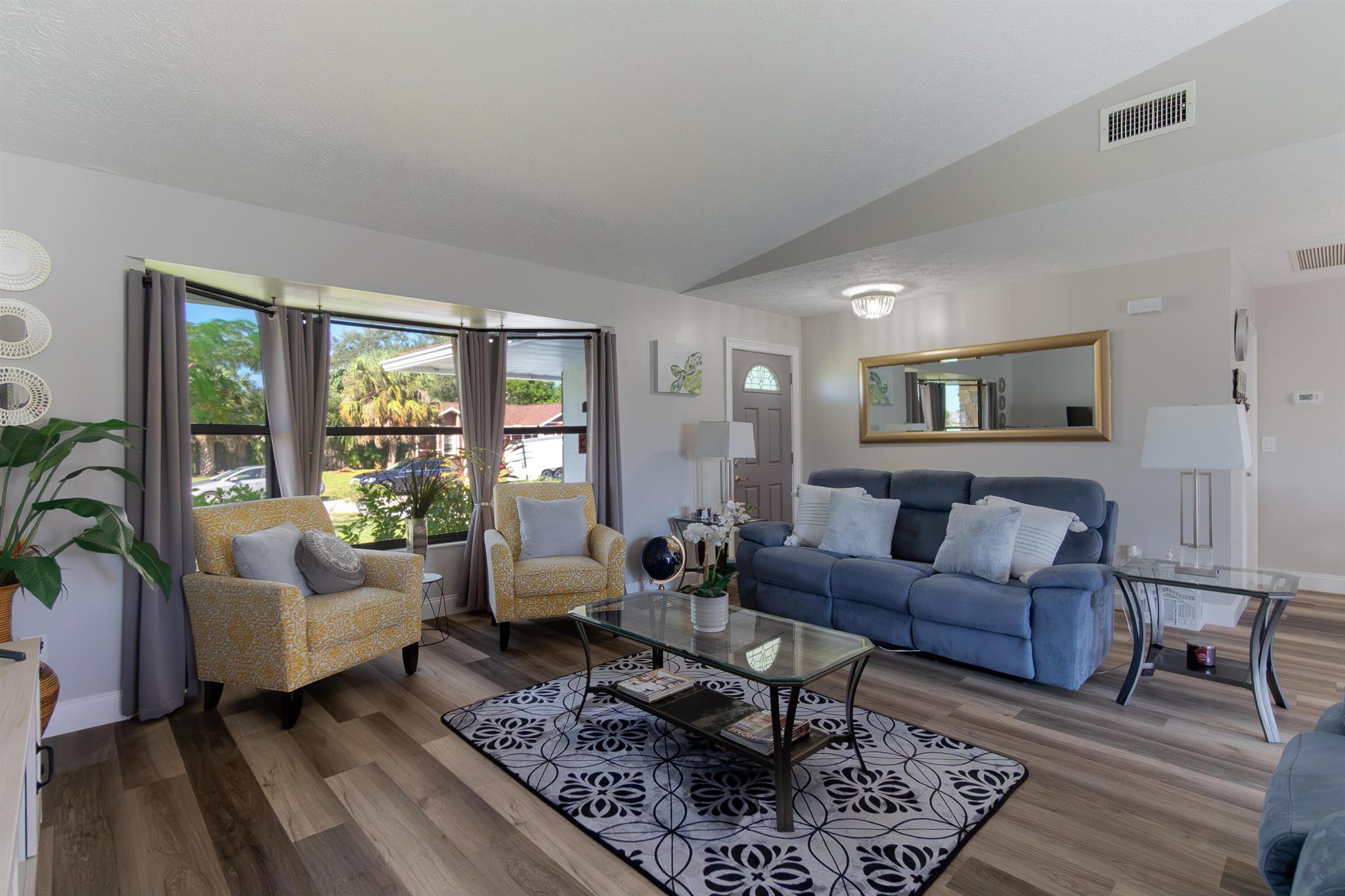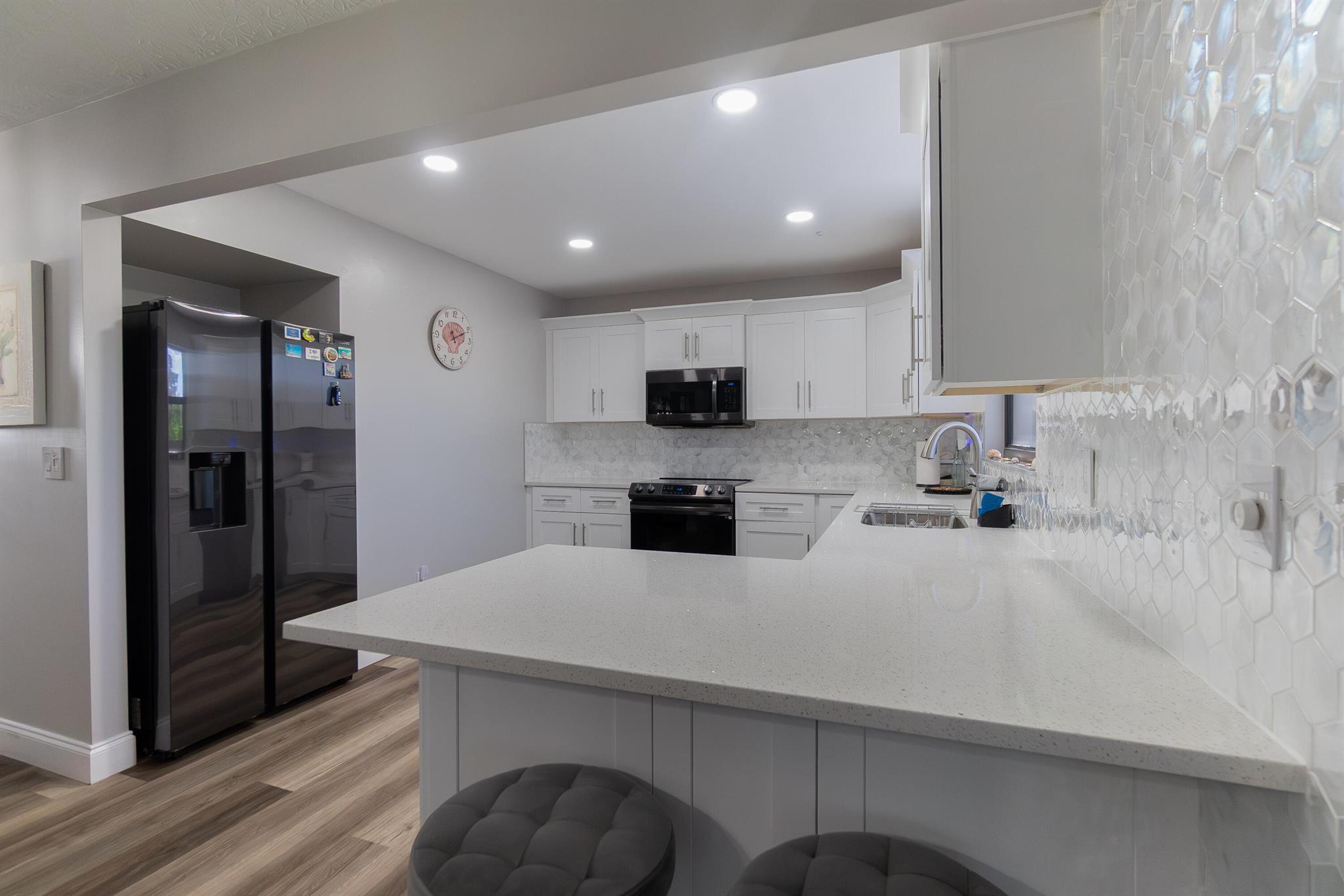 Turnkey and tastefully renovated from top to bottom! This stunning home was fully updated in 2022 (not a flip) and features modern finishes throughout, including quartz countertops, soft-close cabinets, a sparkling mother-of-pearl backsplash, and sleek black stainless Samsung appliances. Enjoy laminate wood flooring throughout, new interior doors, and a spa-style master bathroom with a zero-entry shower. The AC was installed in 2022, and the roof was replaced in 2017. Large fenced yard with room for a pool. Stylish, spacious, and move-in ready--this home offers the perfect blend of luxury and lifestyle in the heart of Port St. Lucie