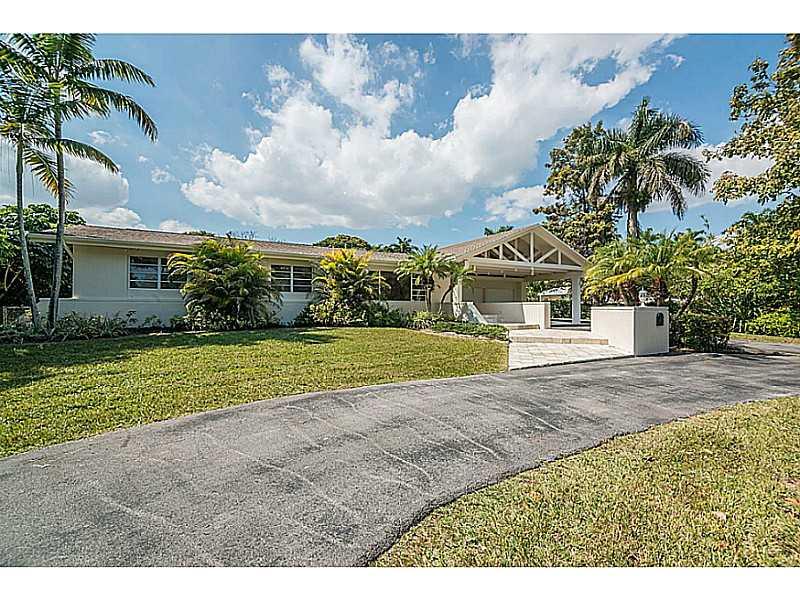Prime N. Pinecrest, deep acre. Wonderful mid-century home remodeled & expanded in '92 with a terrific floor plan & unlimited potential. Large open rooms, formal dining room, big family rm. with high ceilings and wood burning fireplace. French doors & plantation shutters open from FR to a screened pool/patio, overlooking gardens and lush backyard. Split master bedroom, hardwood & ceramic tile floors, circular driveway, roof 2007. Bring the family today!