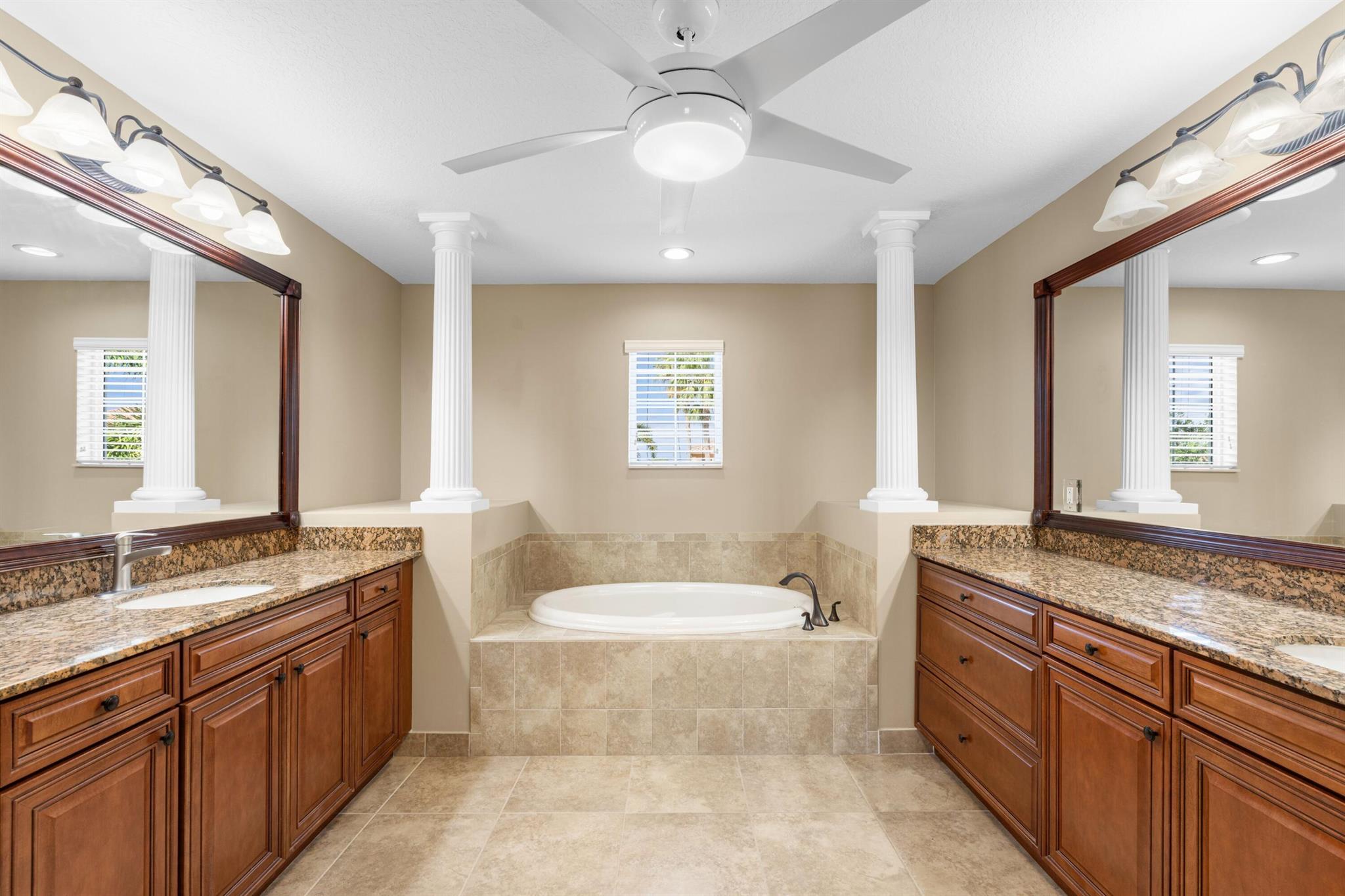 This impeccably maintained lake front pool home truly has it all. Highly upgraded, this 5/4/3 Pearl II Model is located on an over sized 1/3 acre lot. The resort style backyard w heated salt water pool, spa, extended deck & screened patio has a expansive view of the water.A gourmet kitchen features leathered granite counter tops, quartzite island w prep sink, extended cabinets, marble back splash, curved range hood, newer appliances & apron sink. Elegant wrought iron railings lead to 4 upstairs bedrooms with a custom designed closet system in the Master ensuite. Laundry conveniently located on the second floor.One bedroom w cabana bath on main floor. Close to everything Equestrian , dining, shopping and A rated schools.