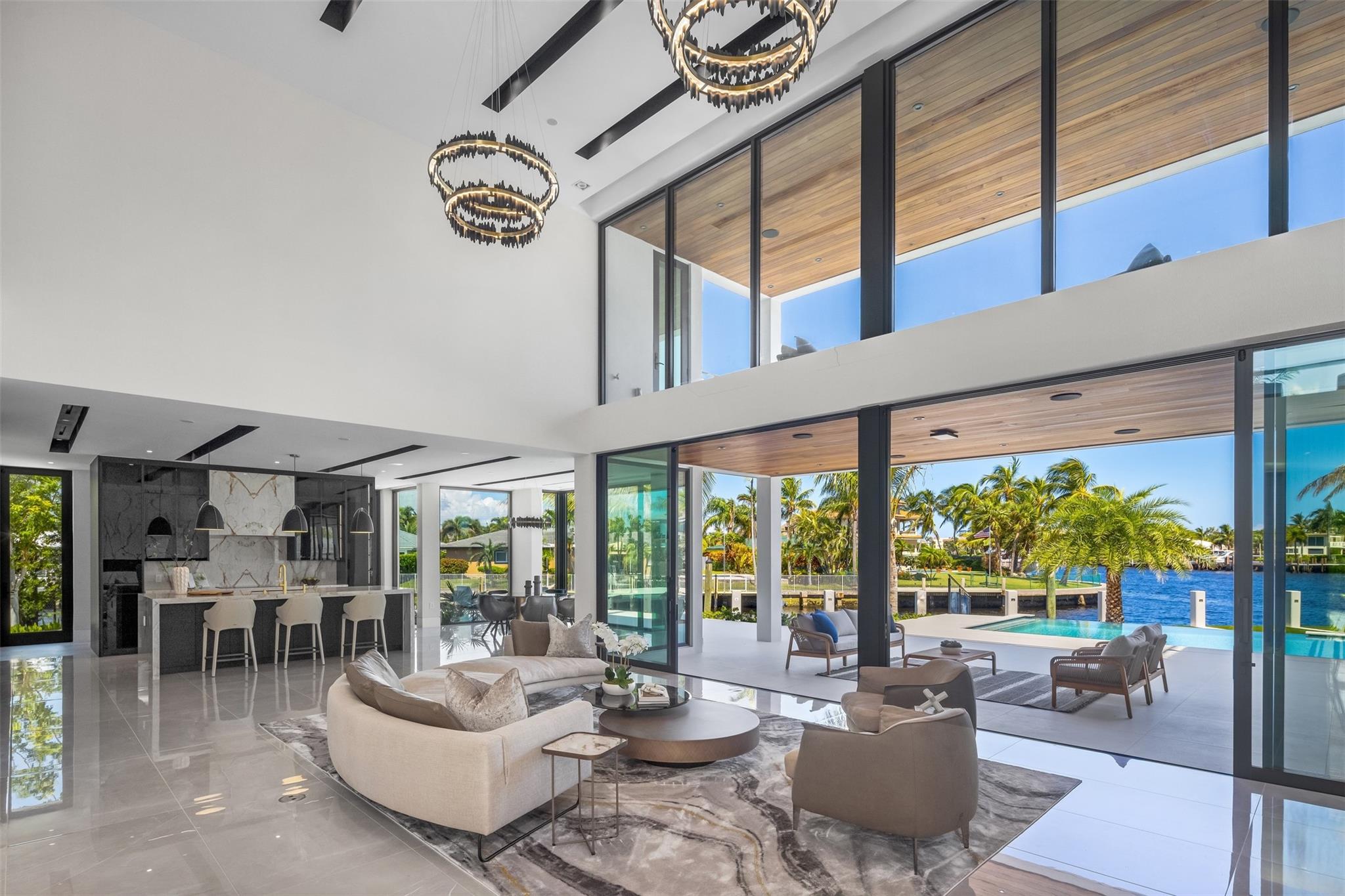 This 3 story custom masterpiece has it all. Passing through the oversized pivot door, you are greeted with double high ceilings & oversized glass sliders offering a picturesque long-water view. The homes design makes the most of the lot, providing breathtaking views from almost every space across all 3 floors. An elevator provides easy access & your garage has ceiling height to allow for a lift (up to 6 cars). A Control 4 system manages your full spectrum Color-Beam lights & concert quality sound. Your concrete dock offers 3 Power Pedestals & 140'+ straight to accommodate your yacht(s). A summer kitchen complete with smoker, ice maker, & fridge right outside your kitchen. A full-home Generac Solar system w/ 3 power banks provides further peace of mind. Home is wired for Lutron Shades.