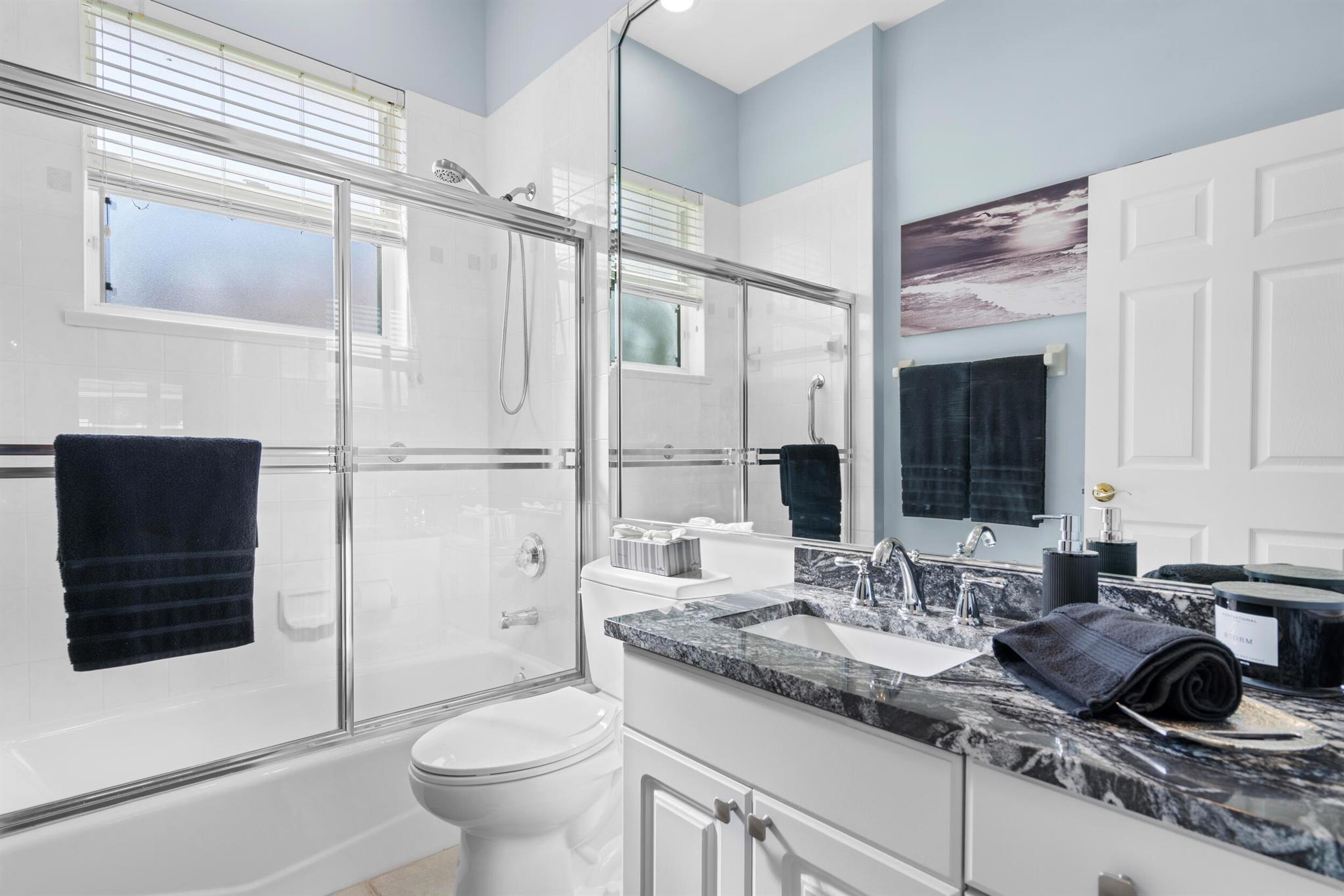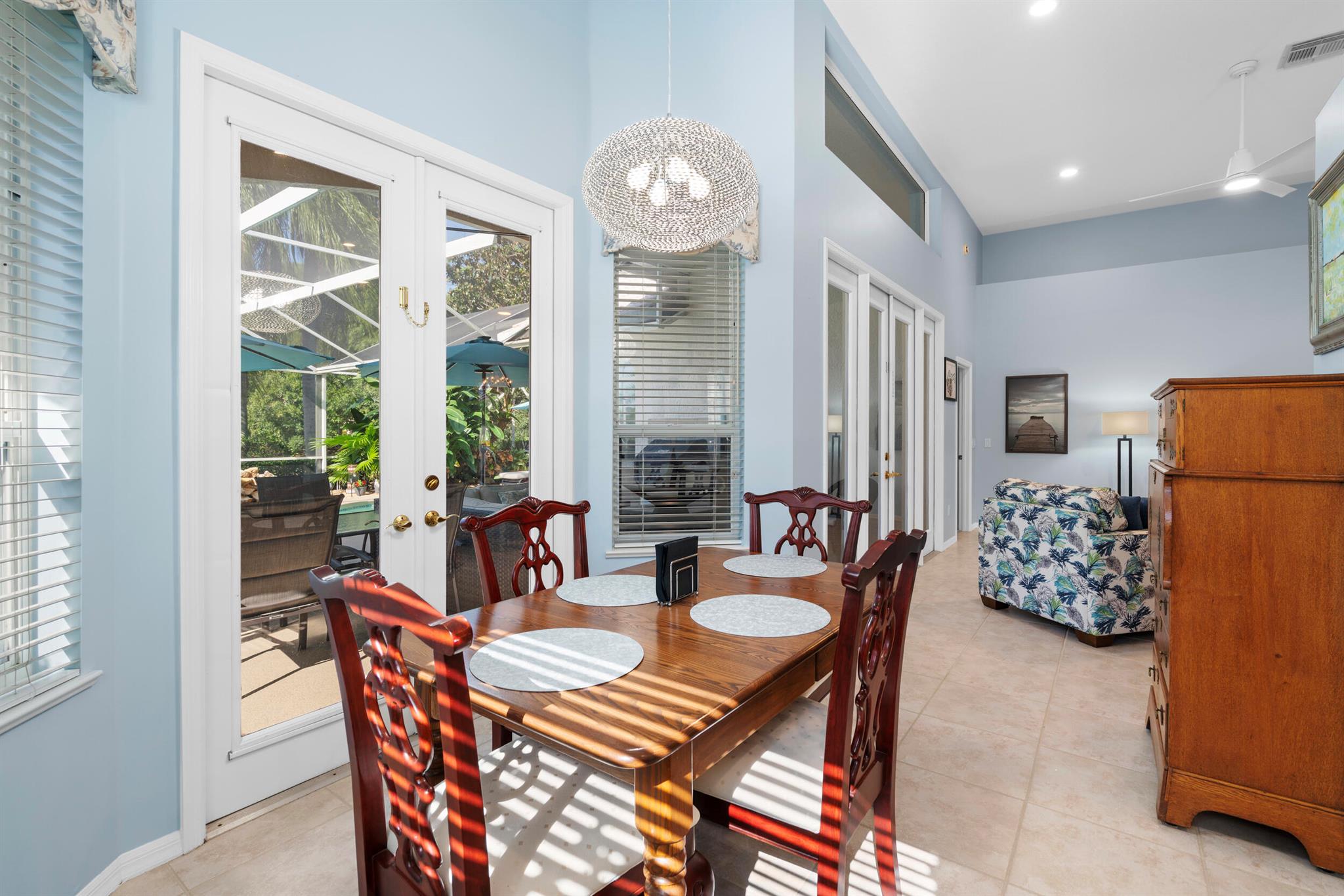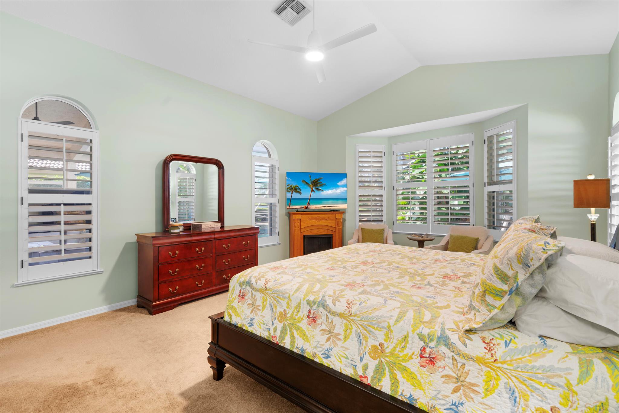 Beautiful Pool home with Lake View in ''Mystic Pines'' at PGA Village. This home offers fabulous Sunsets & tropical landscaping. Features CBS Construction, front gate entrance, tile flooring in main areas, vaulted ceilings, updated lights & fans, Plantation Shutters & IMPACT HURRICANE WINDOWS. Hosts 2 BR's, Large Den, 2 BA's, 2 Car Garage & Golf cart negotiable. Stunning Eat in Updated Kitchen boasts gorgeous quartz counter tops & backsplash, stainless steel appliances, wine cooler, under counter lighting & Island. Split floor plan with spacious Master Suite, sitting area overlooking the lake, walk in closets with built in's, decorative fireplace & Master Bath w/ LG shower & Roman Tub. Screen enclosed heated pool w/ new pump & heater, waterfall pond & summer kitchen. Perfect To entertain!