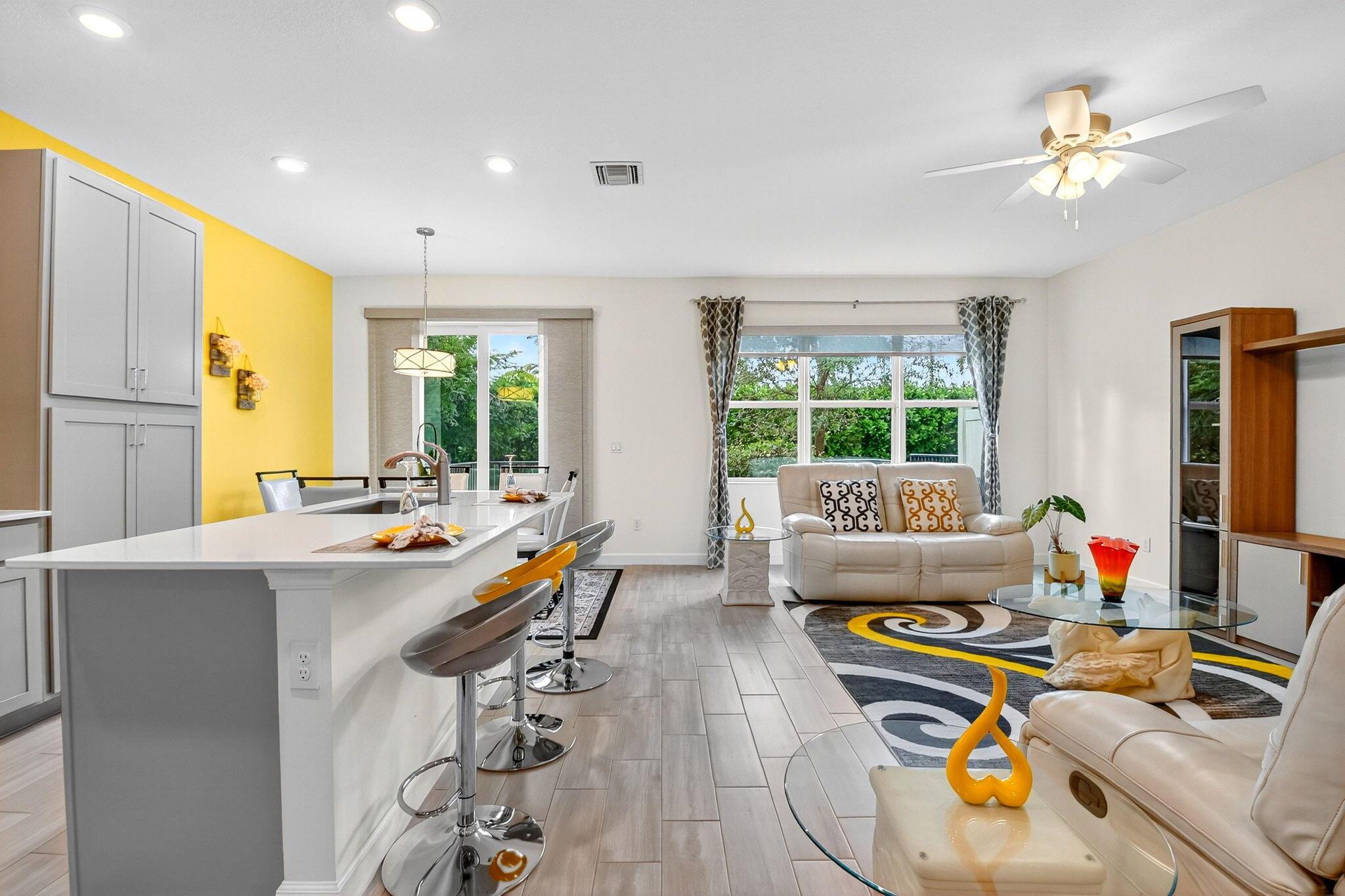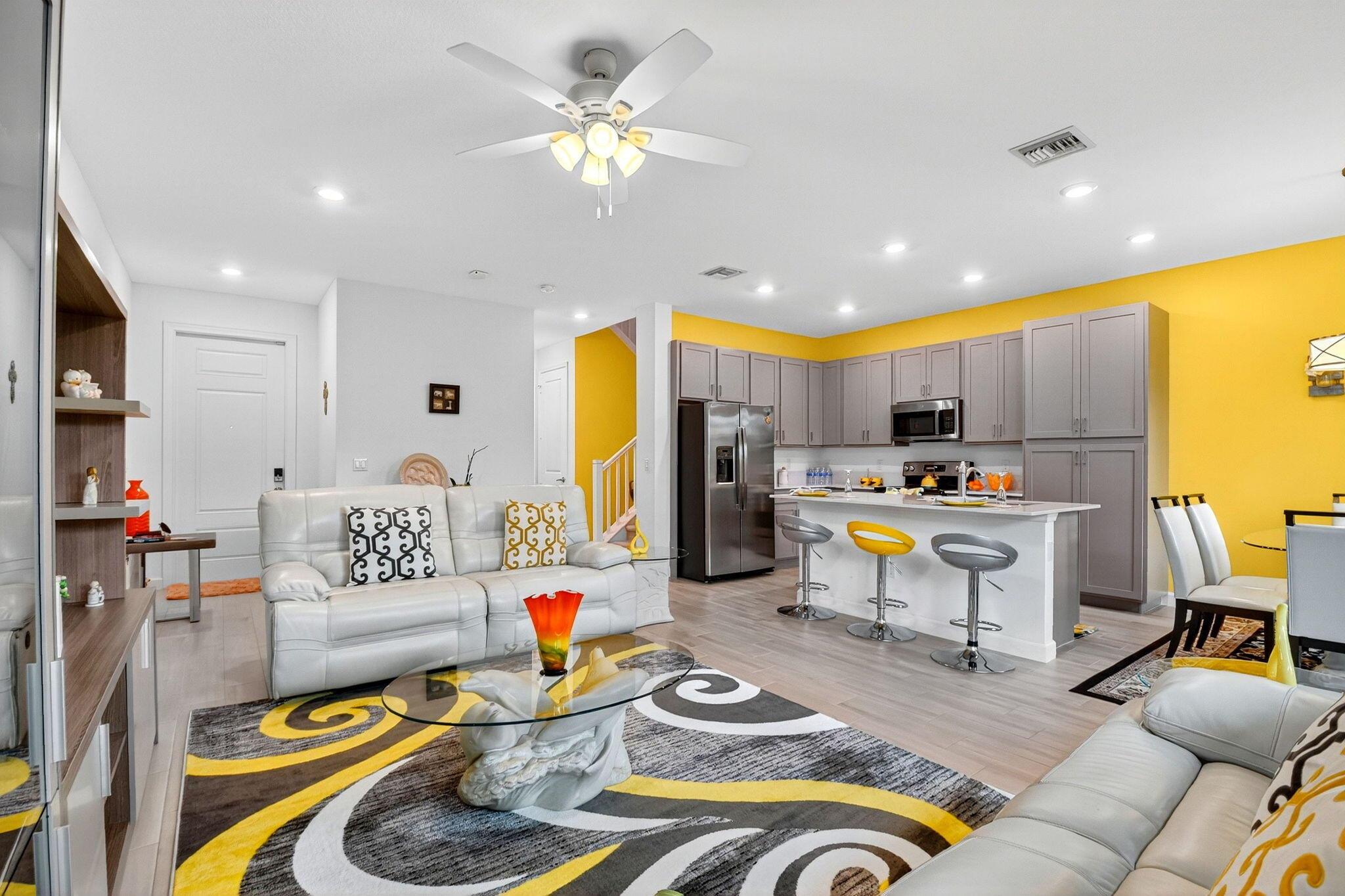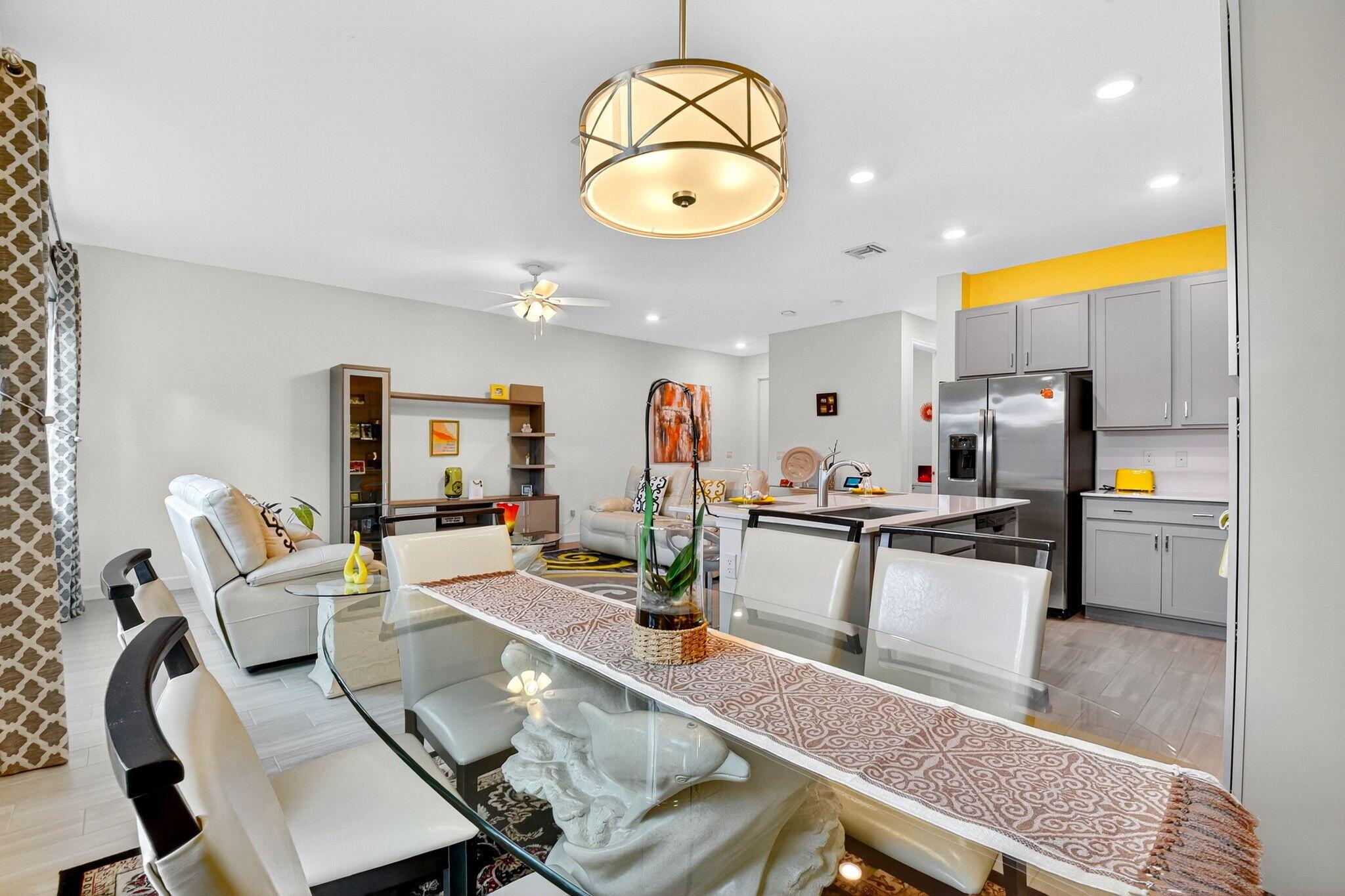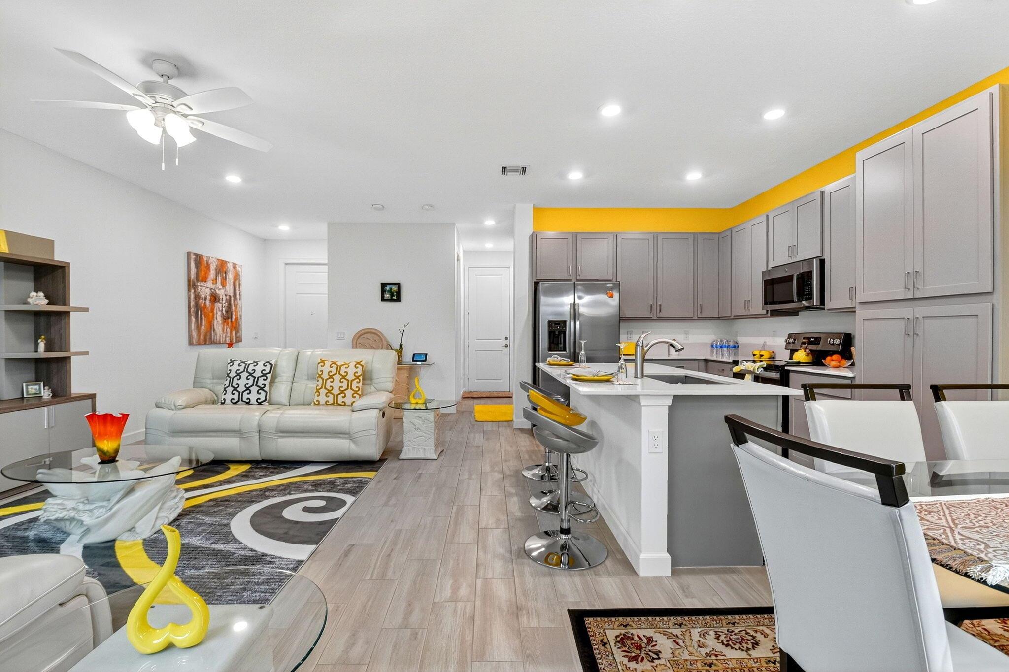 Discover modern comfort in this 2021-built home, where thoughtful design meets everyday ease. Step into spacious living areas warmed by wood plank tile floors, creating a welcoming space for gatherings and relaxation. Impact windows throughout ensure peace of mind during storm season, while the move-in-ready layout invites you to settle in without delay. Nestled in a secure gated community, enjoy amenities like the pool with cabana and a fitness center. Included with the dues is lawn care and sprinkler system. The backyard is fenced in and you don't have neighbors right behind you. The newer construction means lower insurance cost and a newer roof! Imagine unwinding here after a long day. This could be your sanctuary--schedule a showing today and feel the difference.