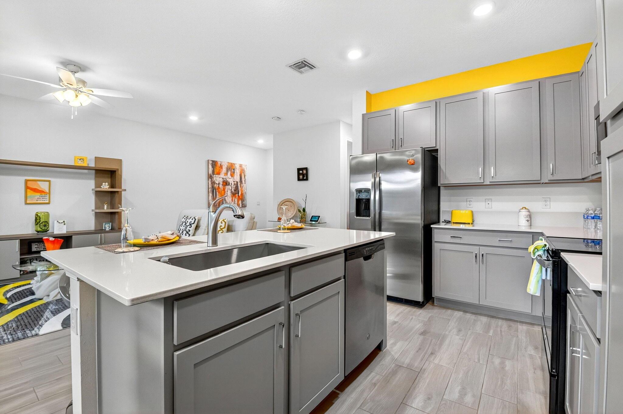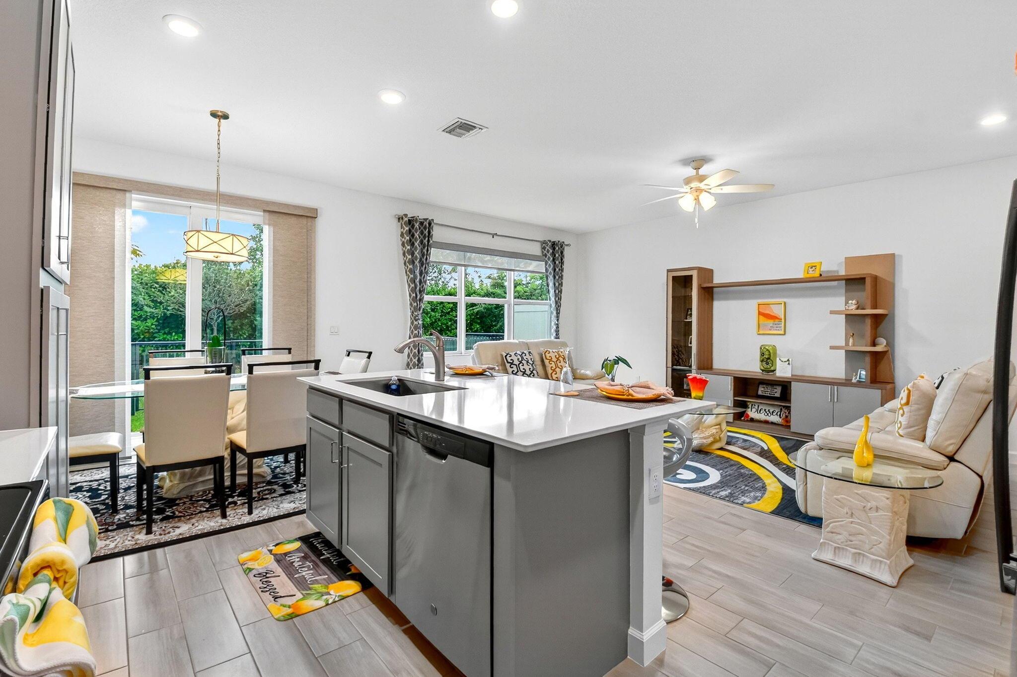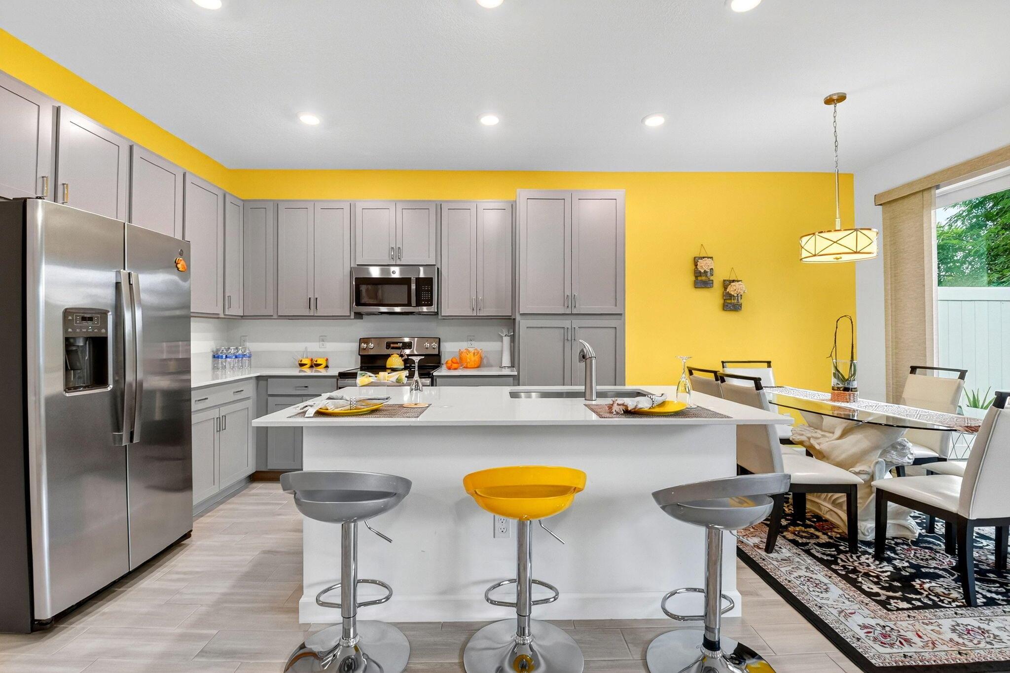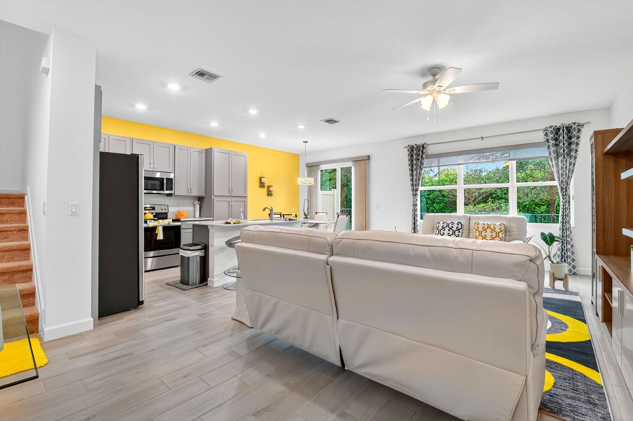 Discover modern comfort in this 2021-built home, where thoughtful design meets everyday ease. Step into spacious living areas warmed by wood plank tile floors, creating a welcoming space for gatherings and relaxation. Impact windows throughout ensure peace of mind during storm season, while the move-in-ready layout invites you to settle in without delay. Nestled in a secure gated community, enjoy amenities like the pool with cabana and a fitness center. Included with the dues is lawn care and sprinkler system. The backyard is fenced in and you don't have neighbors right behind you. The newer construction means lower insurance cost and a newer roof! Imagine unwinding here after a long day. This could be your sanctuary--schedule a showing today and feel the difference.