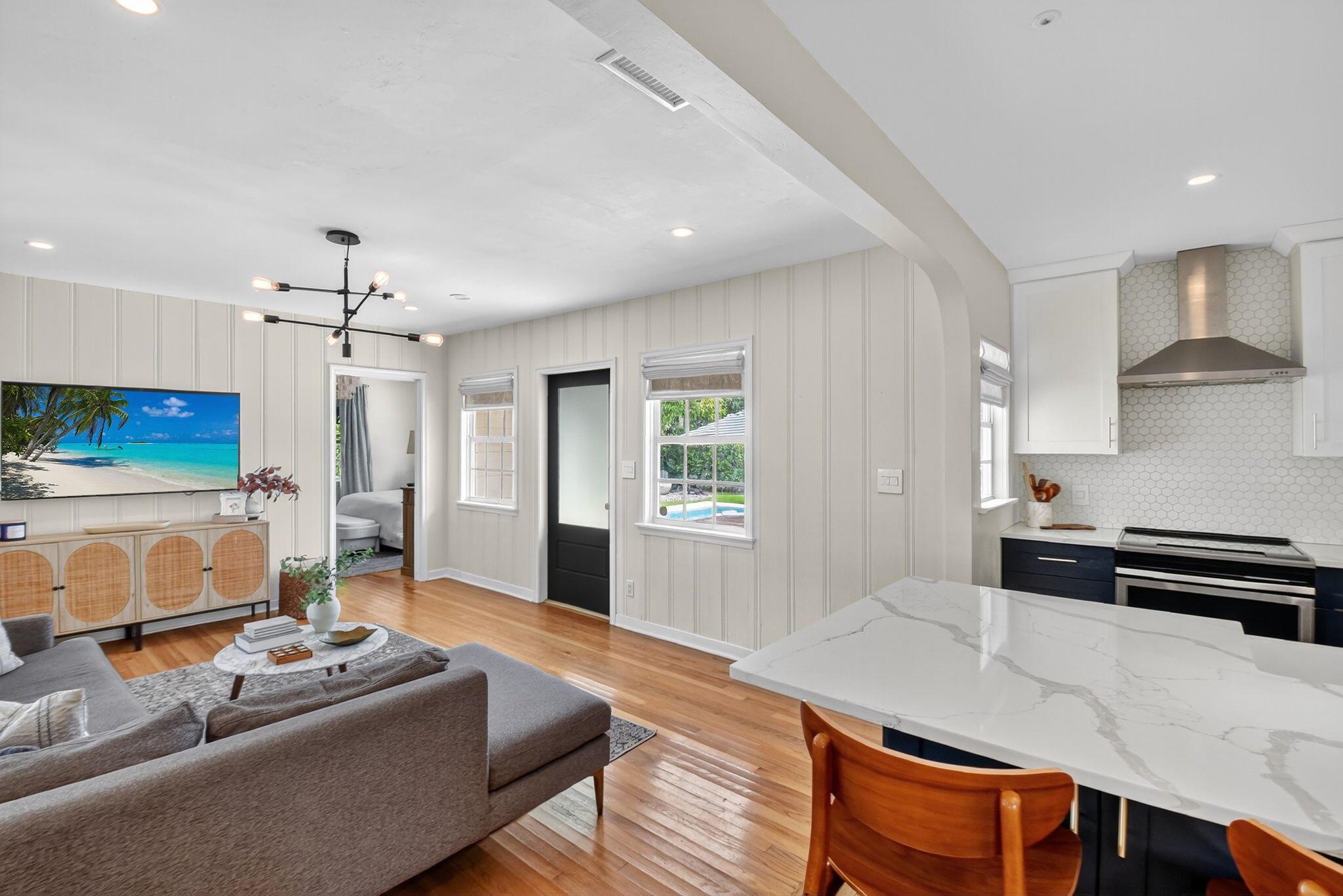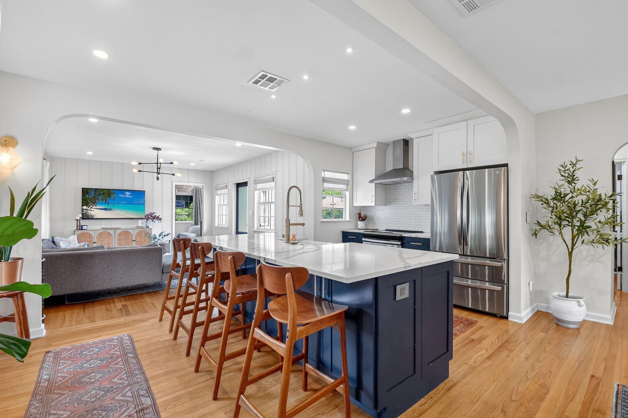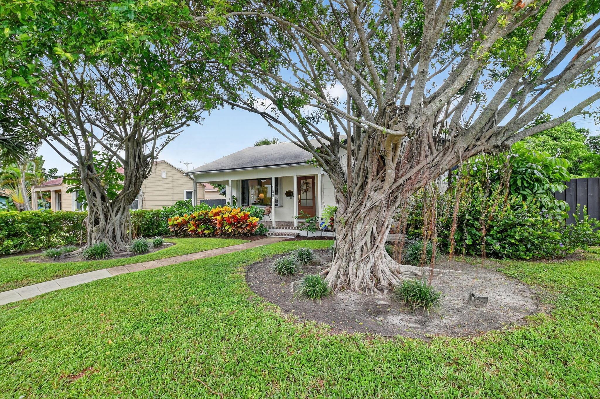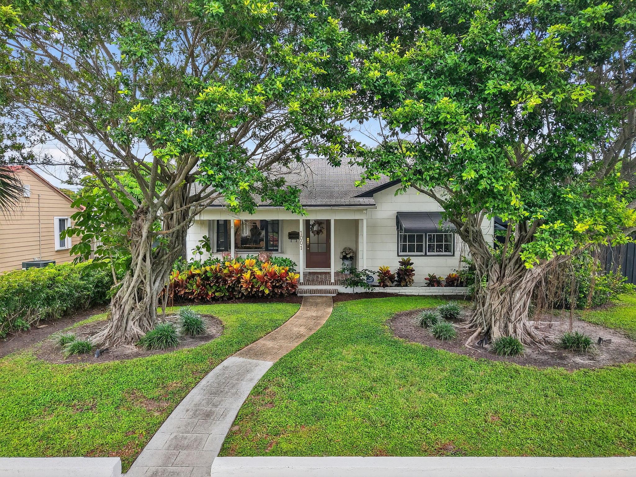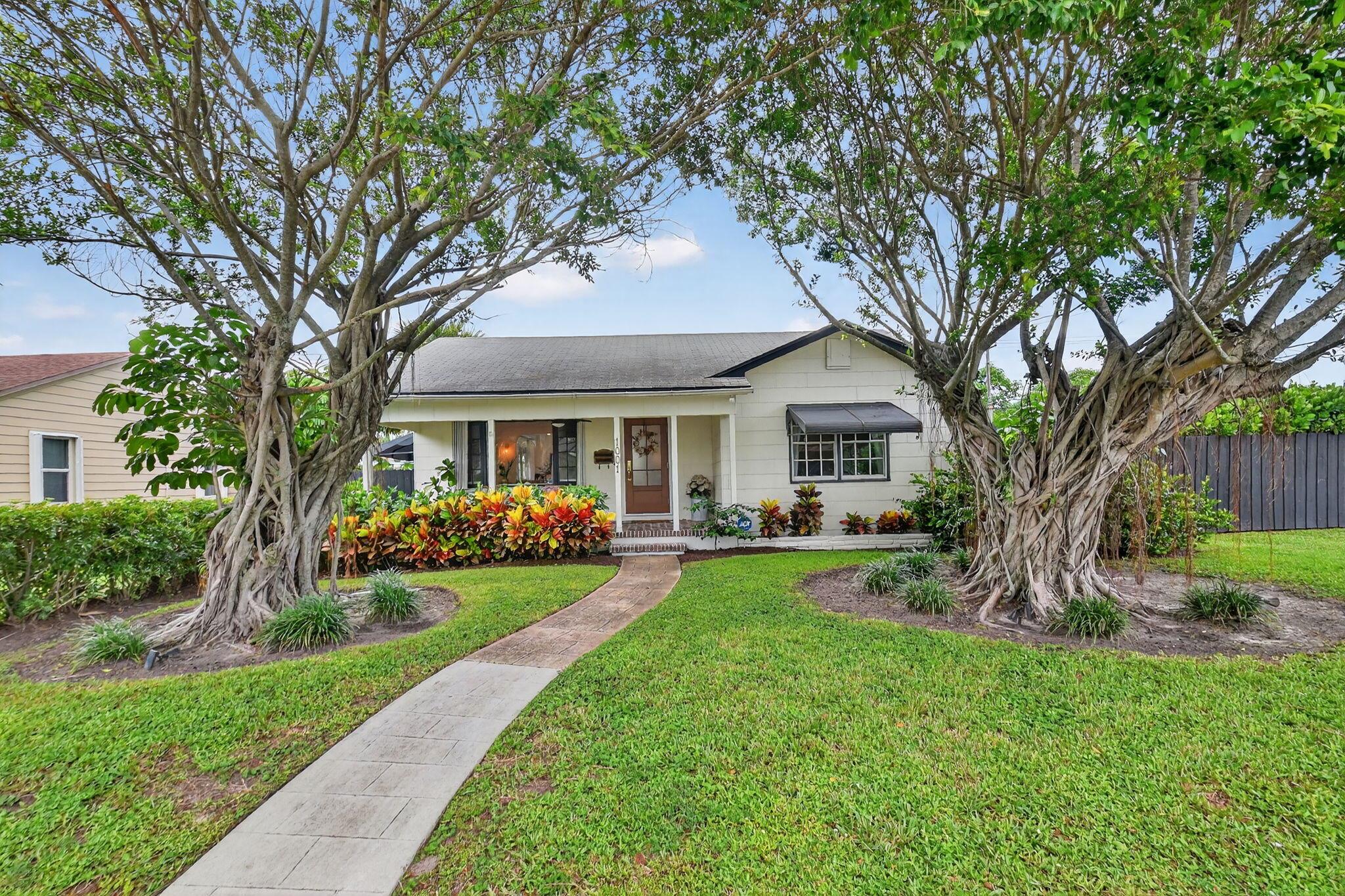 A rare blend of charm, space, and style, this beautifully remodeled historic home is located in one of West Palm Beach's most desirable neighborhoods. Just minutes from downtown but tucked away on a quiet, tree-lined street, the home offers the kind of indoor-outdoor living experience that's nearly impossible to find in the heart of the city. Inside, you'll find a bright and airy floor plan centered around a stunning, fully renovated kitchen. The oversized island, sleek quartz counters, custom cabinetry & high-end finishes make it both functional & visually striking, perfect for everyday living or entertaining. Both bathrooms have been tastefully updated with a clean, modern aesthetic that complements the home's timeless charm. But what truly sets this home apart is the expansive backyard