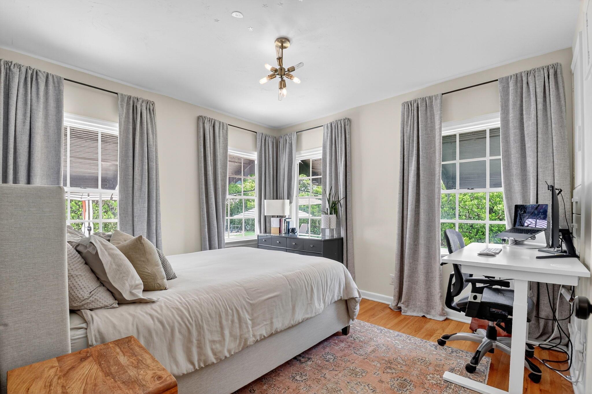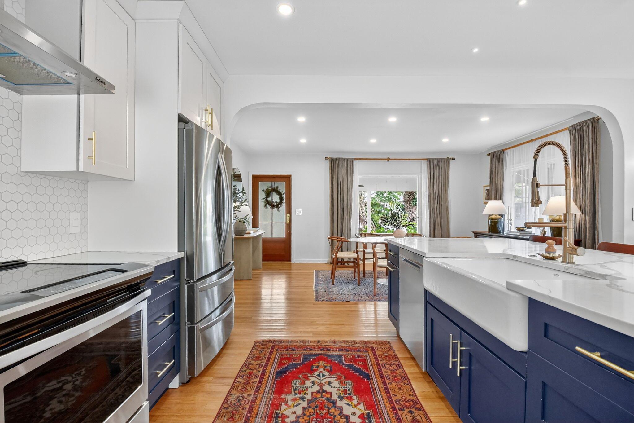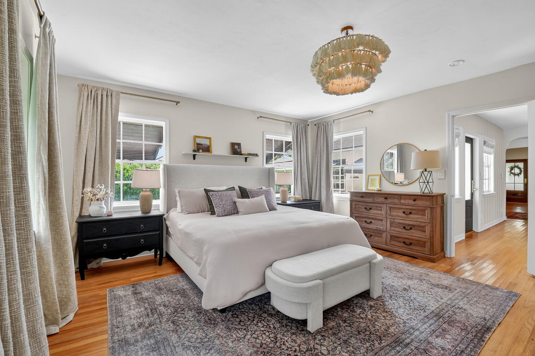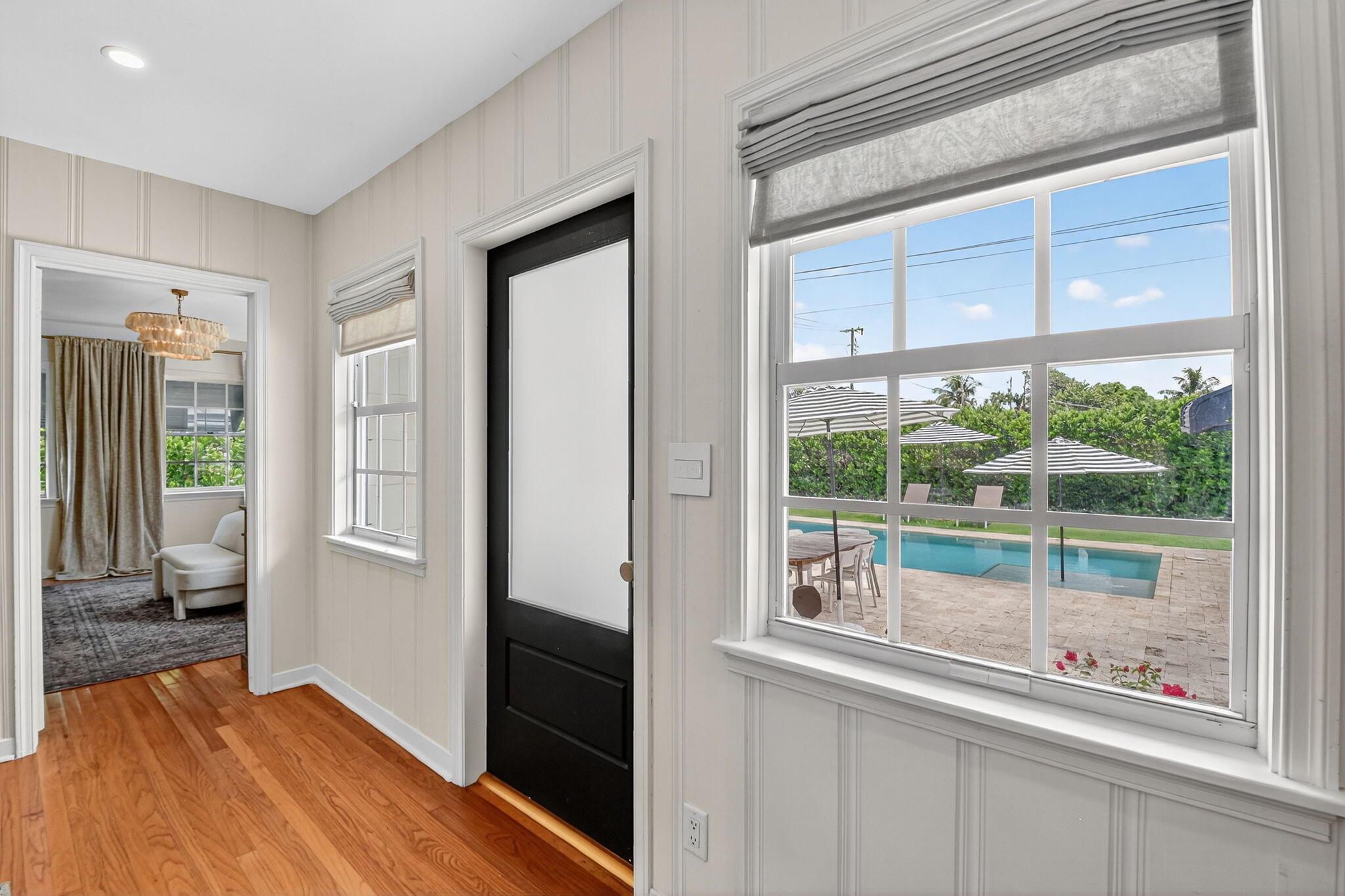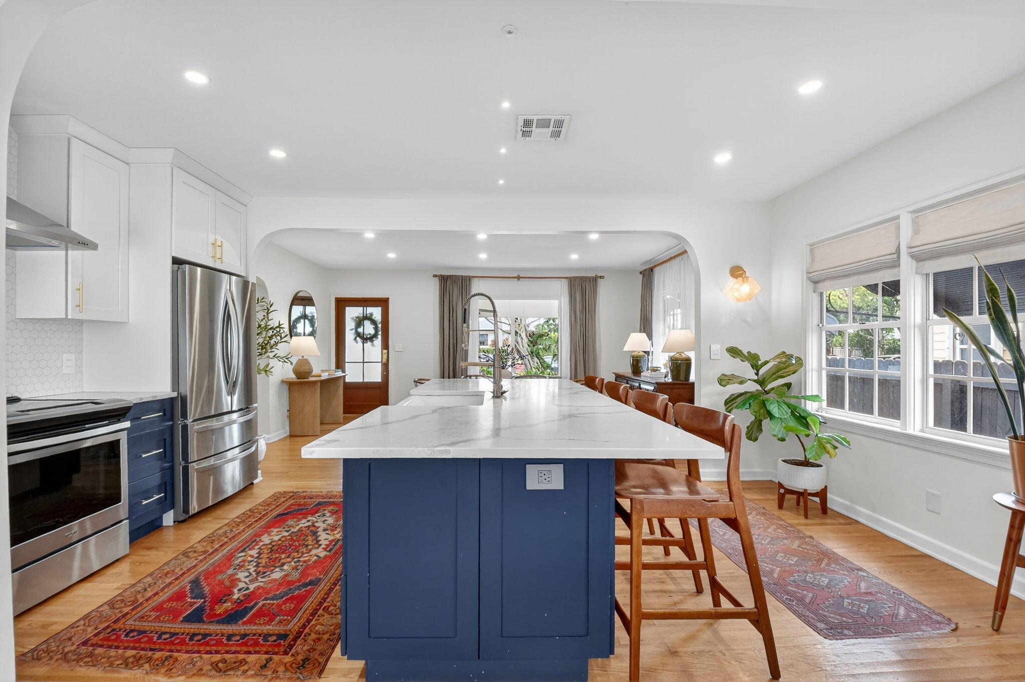 A rare blend of charm, space, and style, this beautifully remodeled historic home is located in one of West Palm Beach's most desirable neighborhoods. Just minutes from downtown but tucked away on a quiet, tree-lined street, the home offers the kind of indoor-outdoor living experience that's nearly impossible to find in the heart of the city. Inside, you'll find a bright and airy floor plan centered around a stunning, fully renovated kitchen. The oversized island, sleek quartz counters, custom cabinetry & high-end finishes make it both functional & visually striking, perfect for everyday living or entertaining. Both bathrooms have been tastefully updated with a clean, modern aesthetic that complements the home's timeless charm. But what truly sets this home apart is the expansive backyard