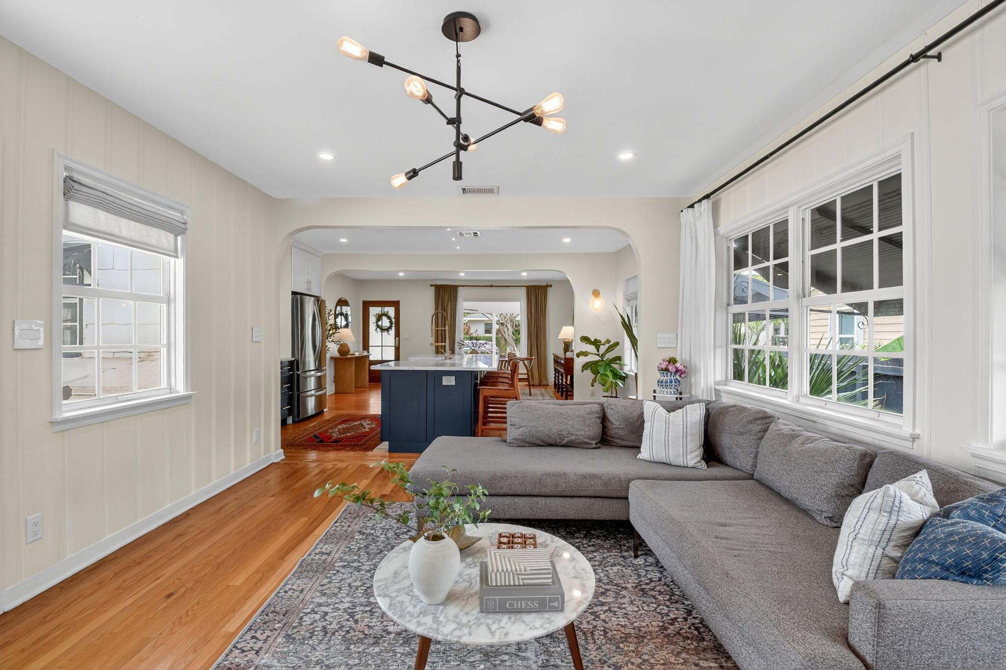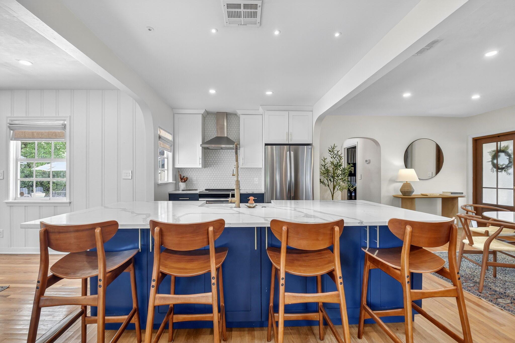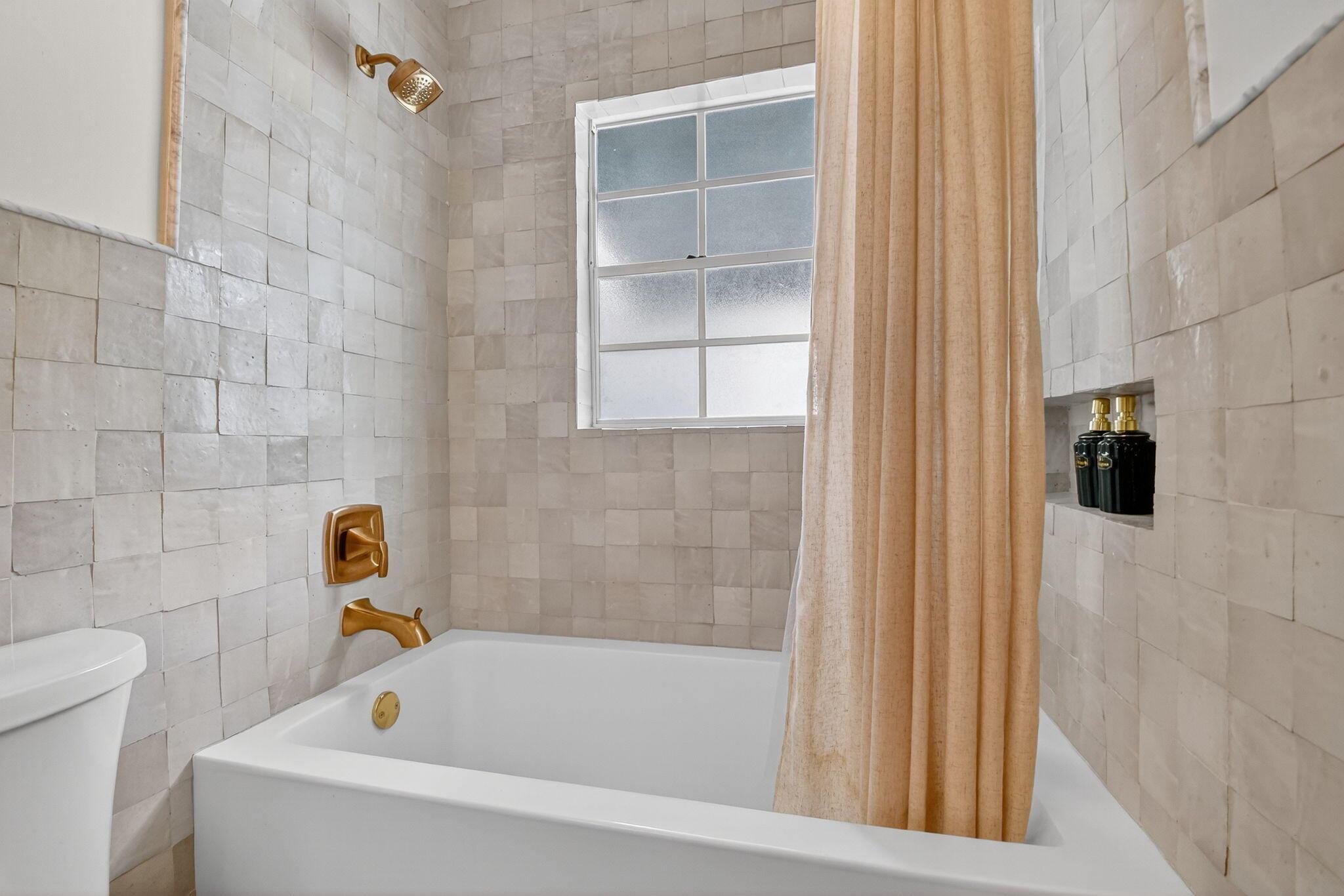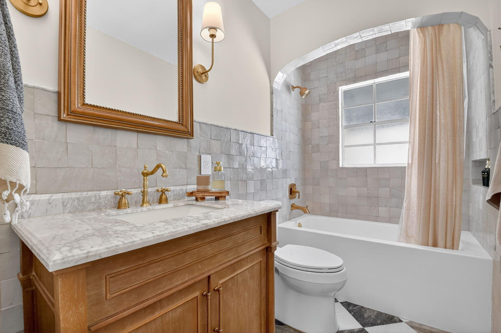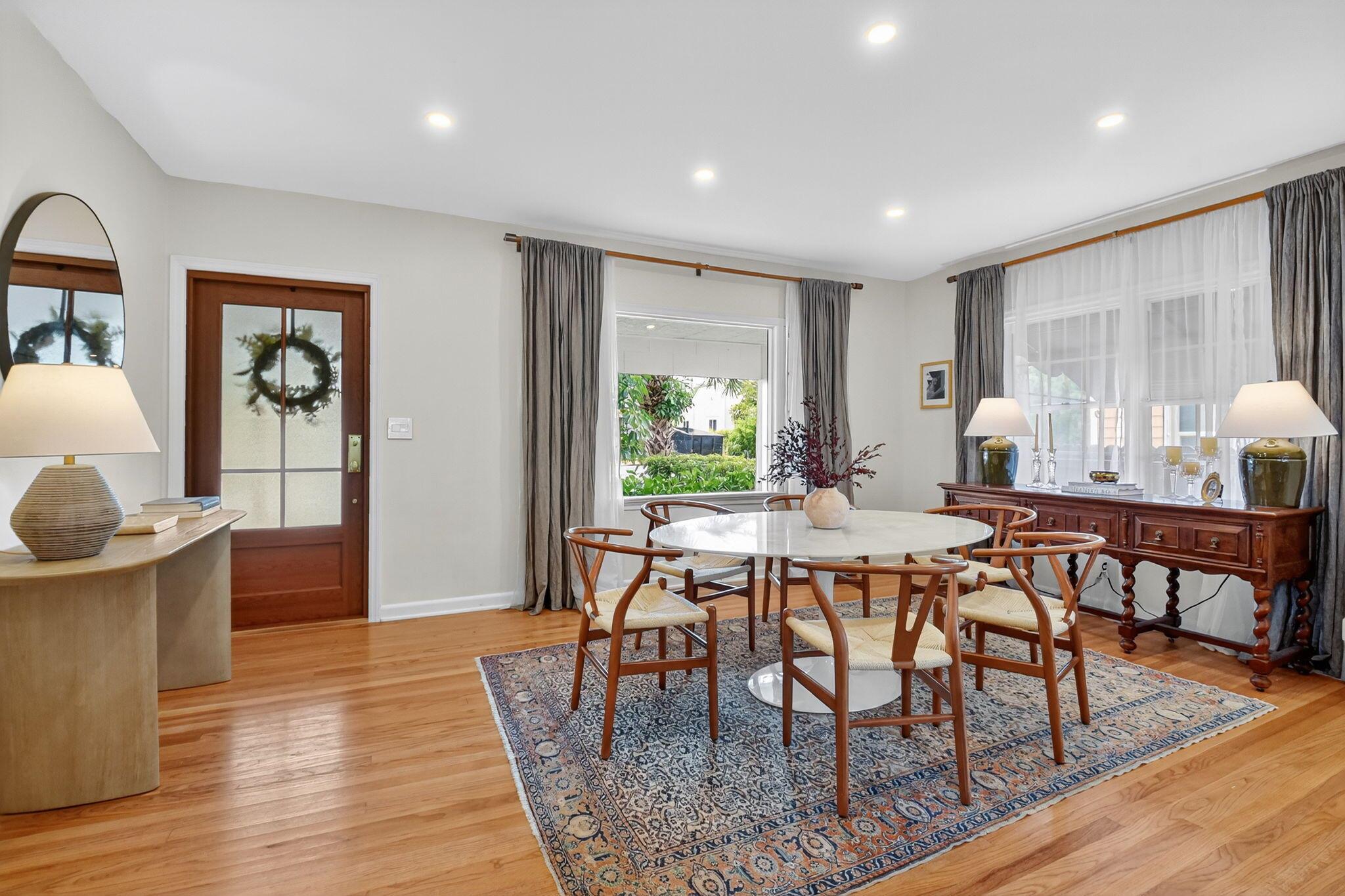 A rare blend of charm, space, and style, this beautifully remodeled historic home is located in one of West Palm Beach's most desirable neighborhoods. Just minutes from downtown but tucked away on a quiet, tree-lined street, the home offers the kind of indoor-outdoor living experience that's nearly impossible to find in the heart of the city. Inside, you'll find a bright and airy floor plan centered around a stunning, fully renovated kitchen. The oversized island, sleek quartz counters, custom cabinetry & high-end finishes make it both functional & visually striking, perfect for everyday living or entertaining. Both bathrooms have been tastefully updated with a clean, modern aesthetic that complements the home's timeless charm. But what truly sets this home apart is the expansive backyard