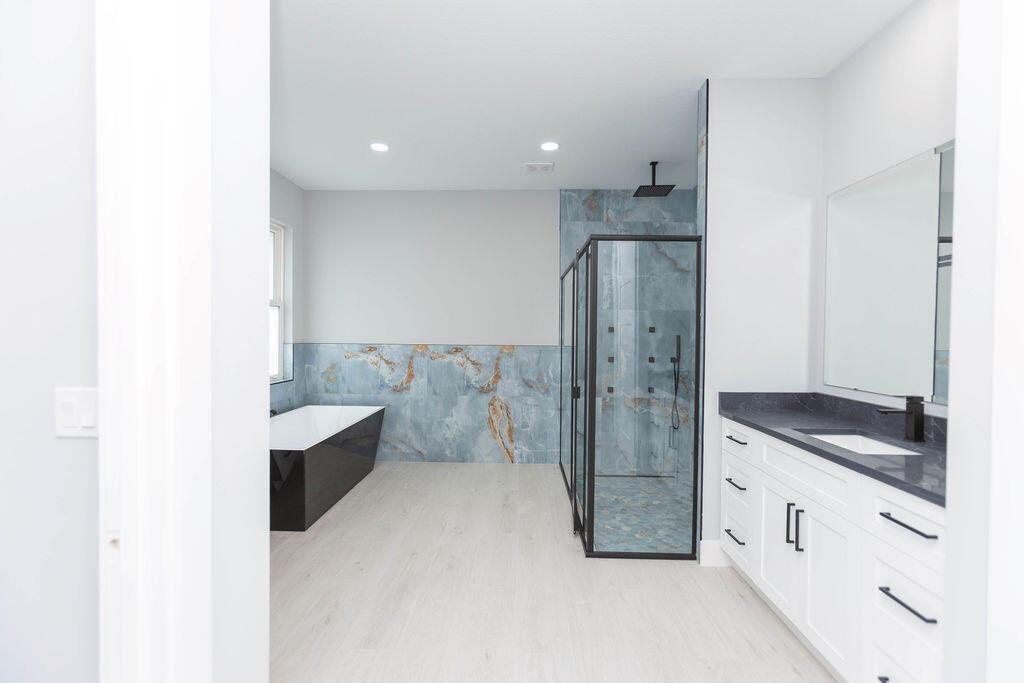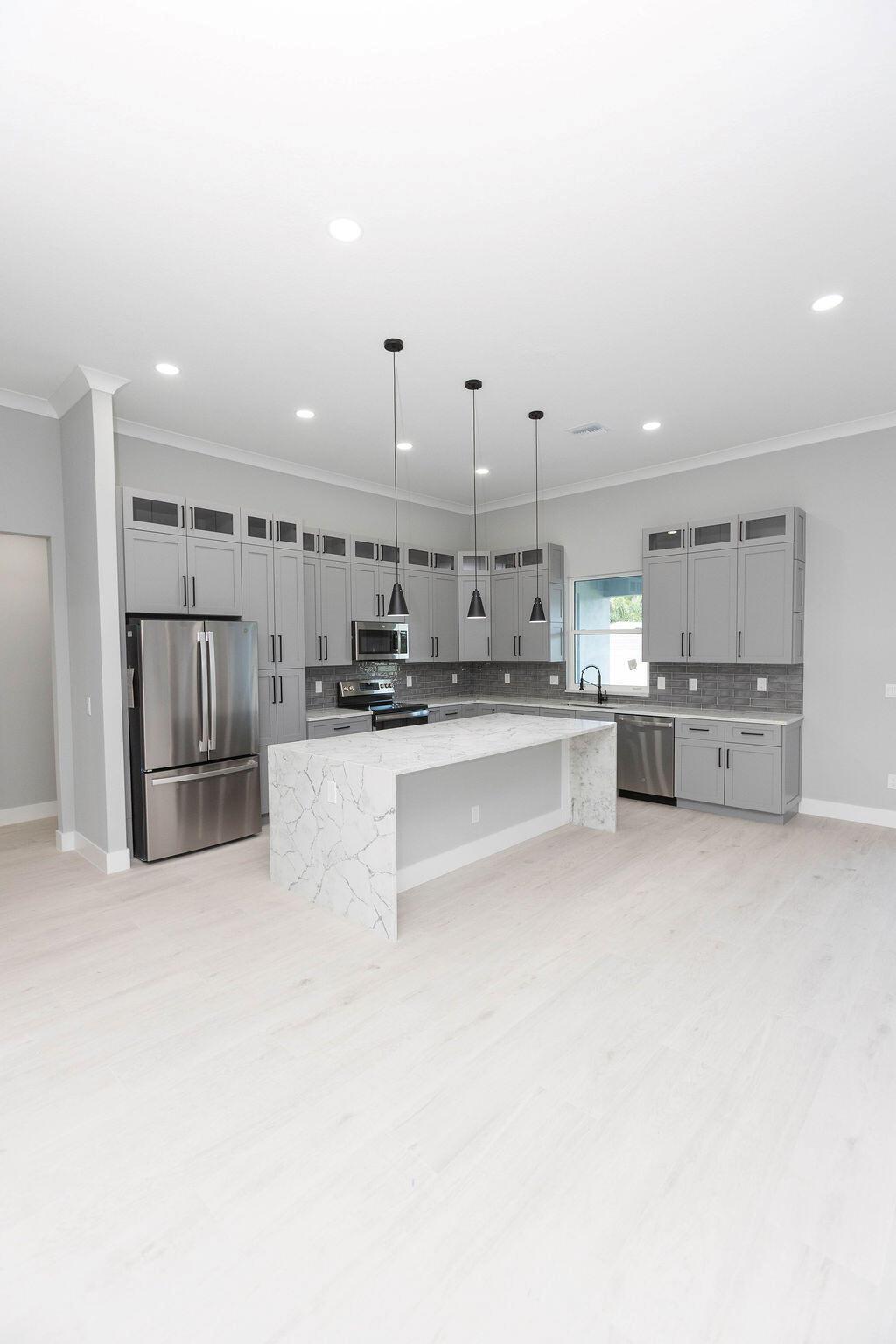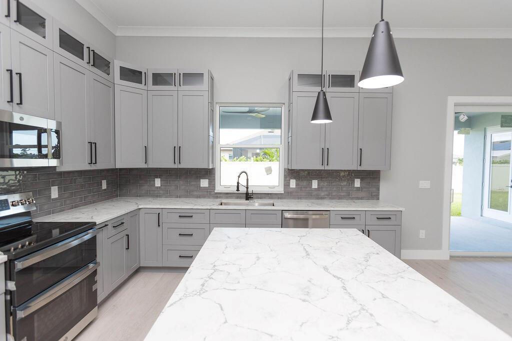 Step inside and fall in love! This brand-new corner lot home features not only 4 bedrooms and 3 bathrooms but also come equipped with a separate ''flex room.'' the open layout flows effortlessly, with quartz countertops throughout, sleek stainless steel appliances, and plenty of cabinet space in the kitchen. The owner's suite is your personal retreat with two walk-in closets and a spa-styled bath featuring a stand-alone soaking tub, waterfall shower complete with side jets. Step out into the spacious covered porch, perfect for morning coffee or evening gatherings. The hurricane impact windows offer peace of mind all year round. This is truly a home that blends elegance, warmth, and thoughtful craftsmanship-inside and out!