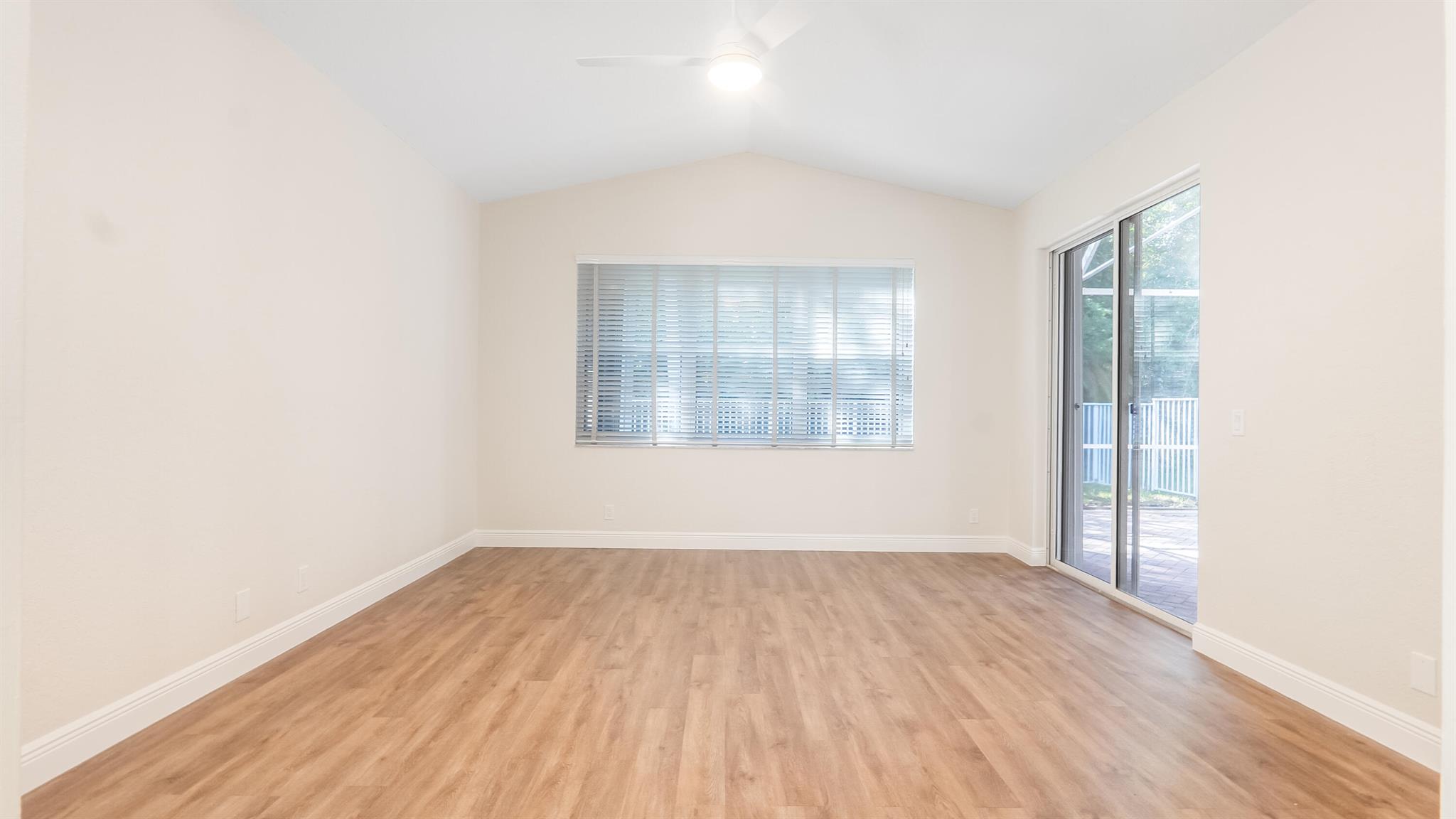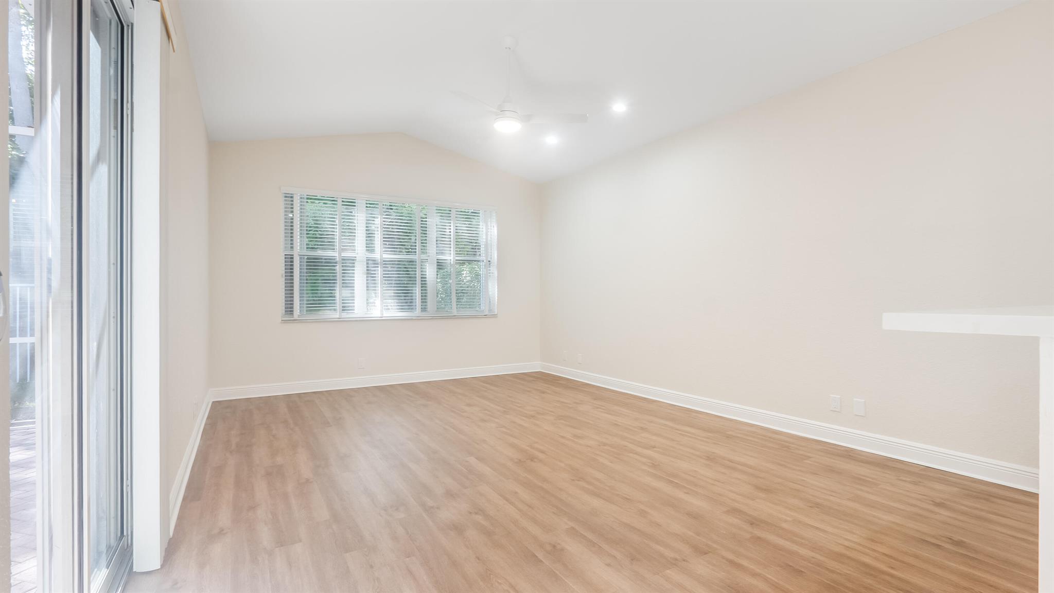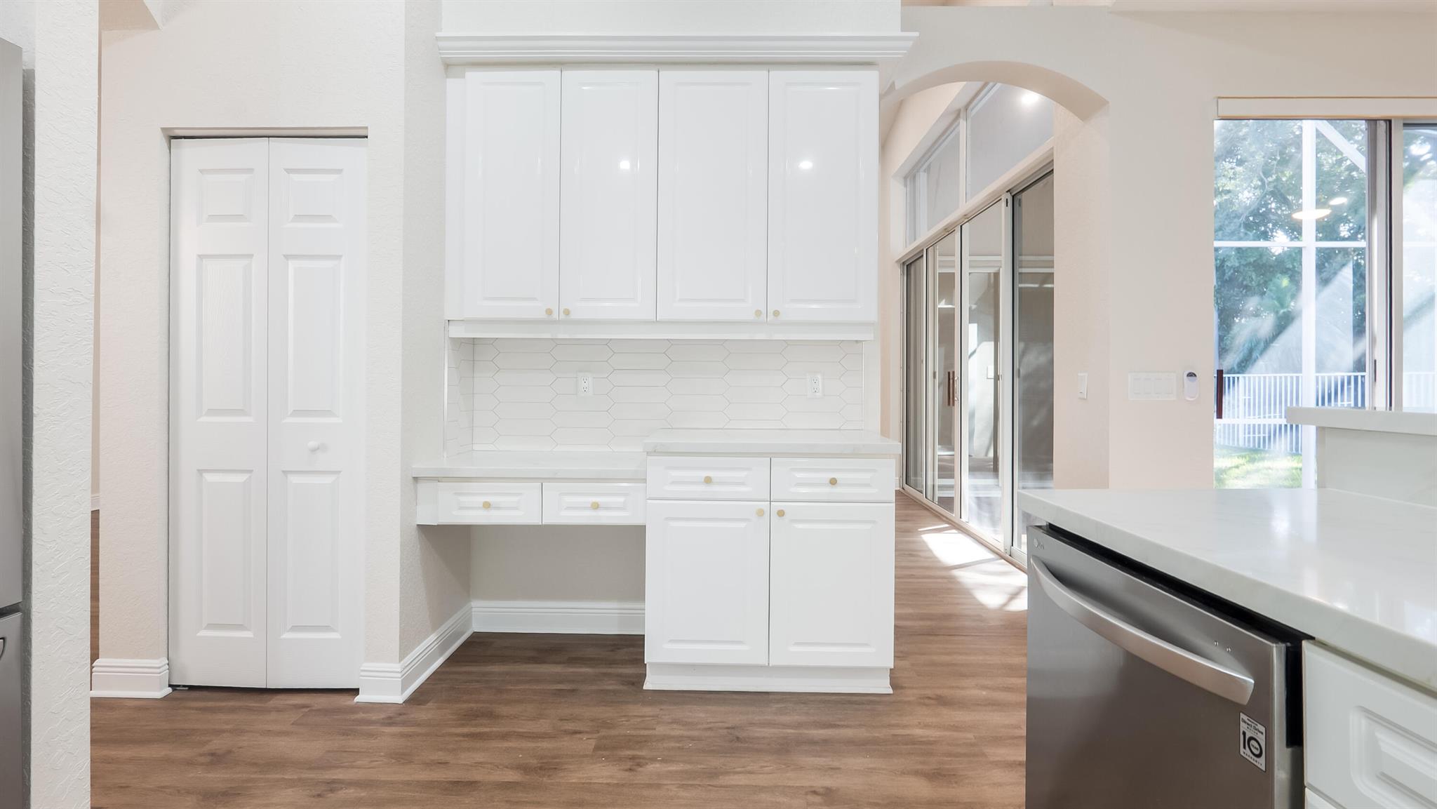 The perfect turnkey opportunity in the gated community of The Shores at Boca Raton. This newly remodeled 4-bedroom, 2.5-bath home with a 2-car garage has it all. Updates include a new roof (2023), newer A/C (2022), updated bathroom vanities, white kitchen with stainless steel appliances and more. The modern kitchen features, quartz countertops with a large newer sink and appliances, The home features all new luxury vinyl flooring throughout. High ceilings and an open layout create a bright, spacious feel. Enjoy the private, fenced backyard with a large screened-in patio and ample space to entertain, play, or build a private pool. Accordion shutters on all windows, southern exposure, and no rear neighbors. Located within The Shores, a 150-acre gated community built by Kenco