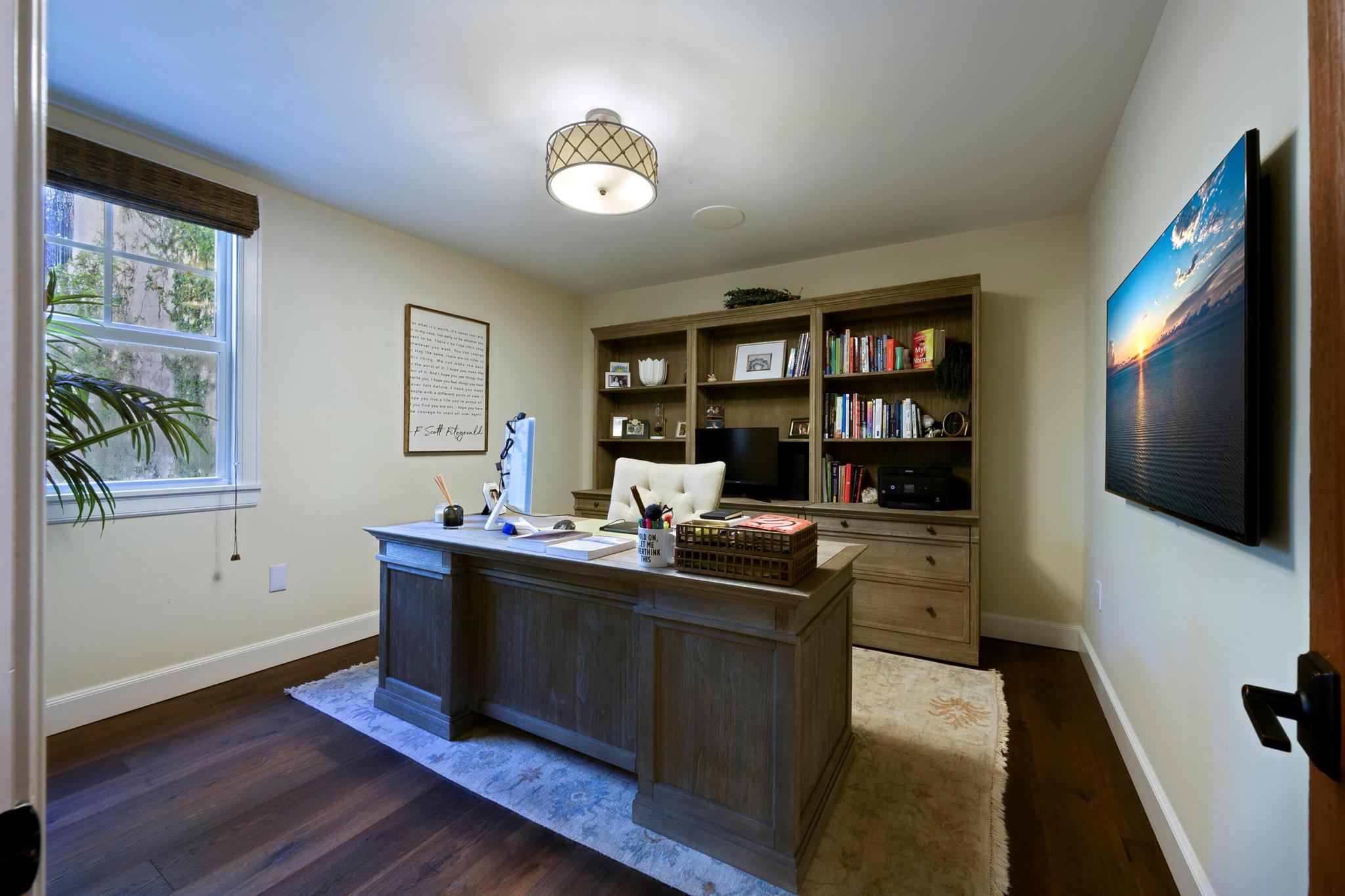 Set on one of the most prestigious streets South of Southern (SoSo), 245 Murray Road is a Spanish Mediterranean estate that has been completely reimagined by the renowned architectural firm Spina O'Rourke. Behind its custom pecky cypress front door, the residence unveils a grand living room with soaring 13-foot vaulted ceilings, dramatic pecky cypress beams, a marble fireplace, tongue-and-groove detailing, and wrought-iron accents that carry through the home. The formal dining room is equally captivating with its pecky cypress ceiling, chandelier, and oak hardwood flooring. Designed for entertaining, the main level offers a theater room, billiards lounge with a custom bar, and a warm family room that flows seamlessly into the chef's kitchen,