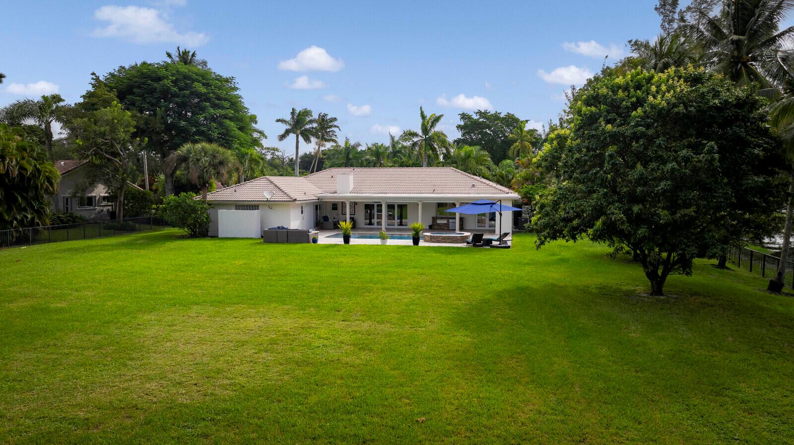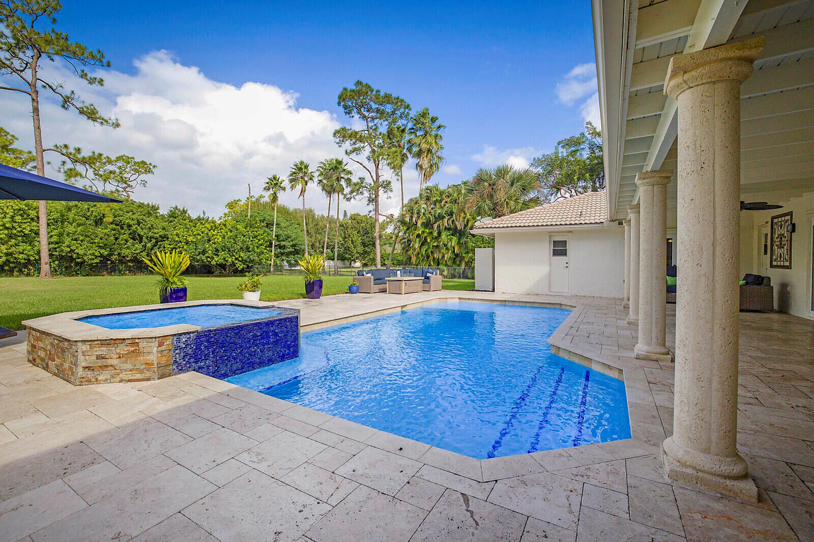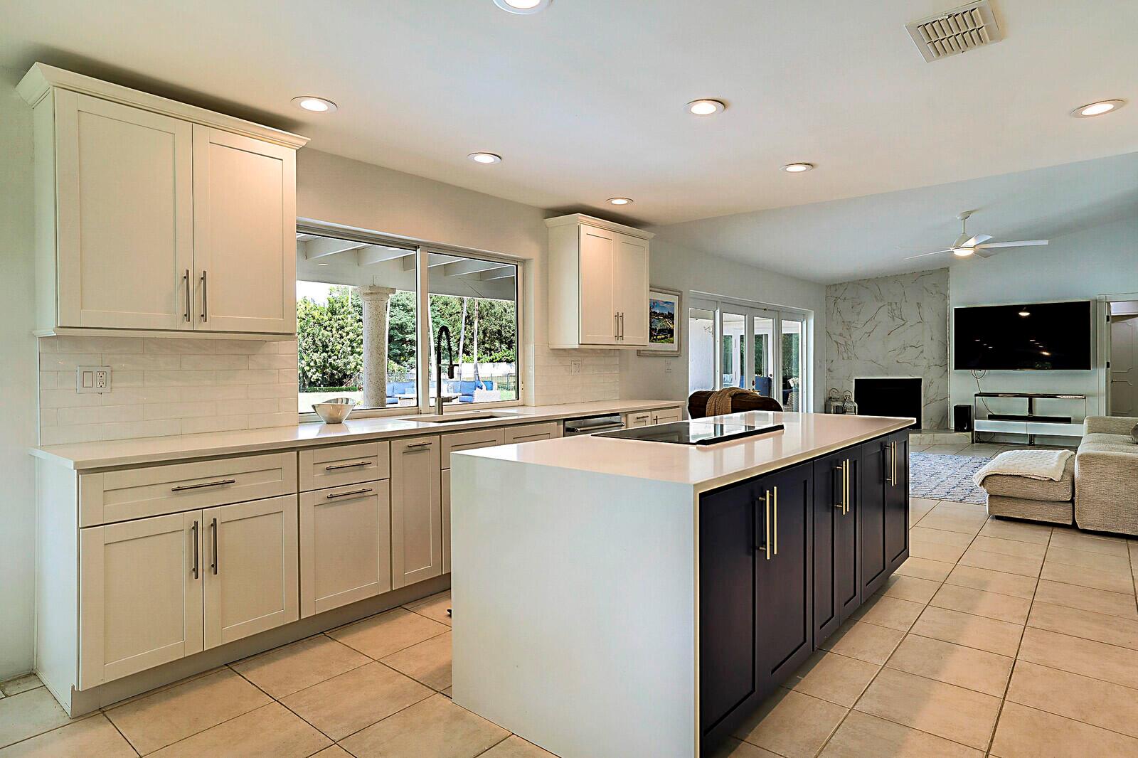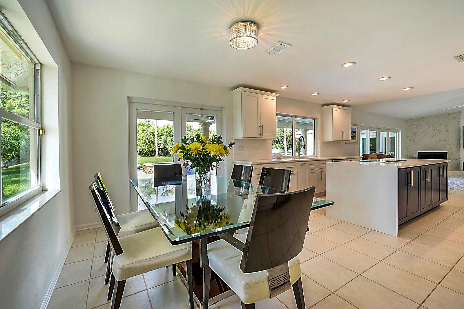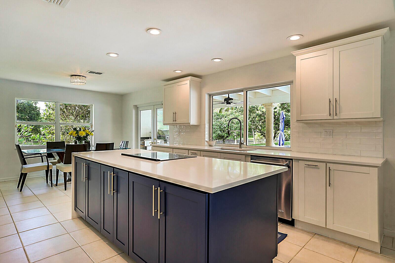 Welcome to Paradise - If you treasure privacy & tranquility, appreciate nature, enjoy entertaining, love cooking, like relaxing in the heated, resort-style pool & spa AND want to be away from the traffic yet close to all the conveniences, THIS IS FOR YOU! The fenced, acre estate with oversized circular drive is sided by rippling water & surrounded by beautiful trees. Enter through custom Mahogany double doors into the foyer adjacent to the formal living & dining rooms. Beyond is the family room w/a fireplace, French Doors & high ceilings. The dream kitchen features white Shaker cabinets, quartz counters, stainless steel appliances, + a center island w/cooktop & contrasting dark blue cabinets. There's also a large pantry, a coffee bar & wine cooler.