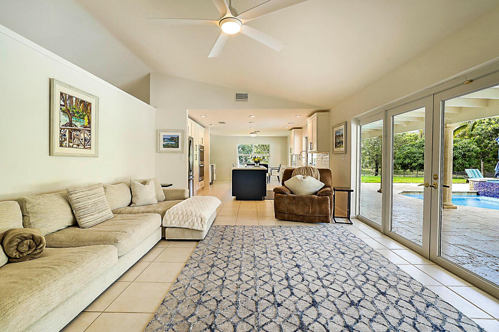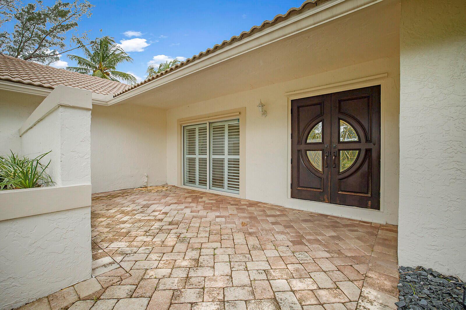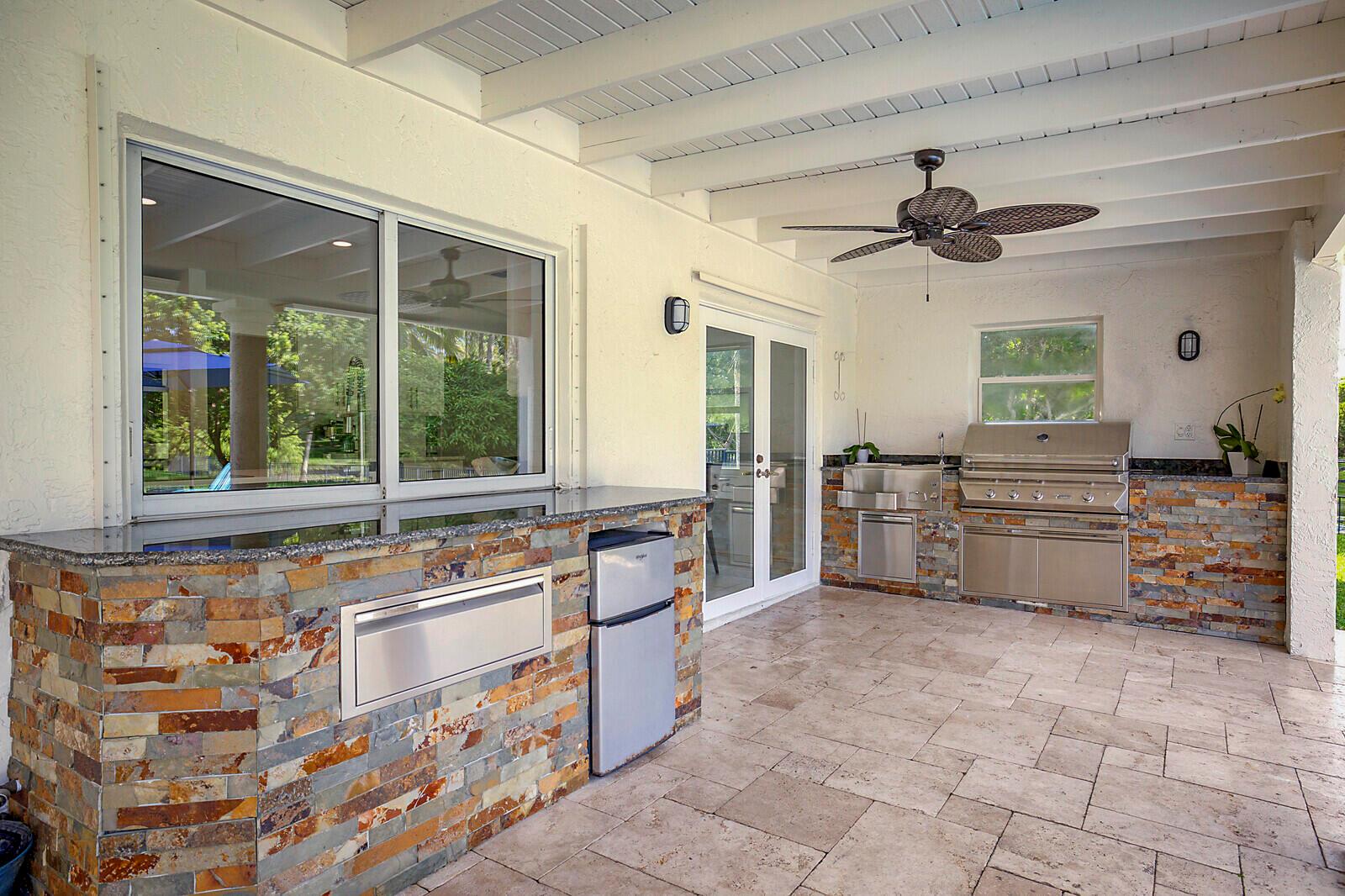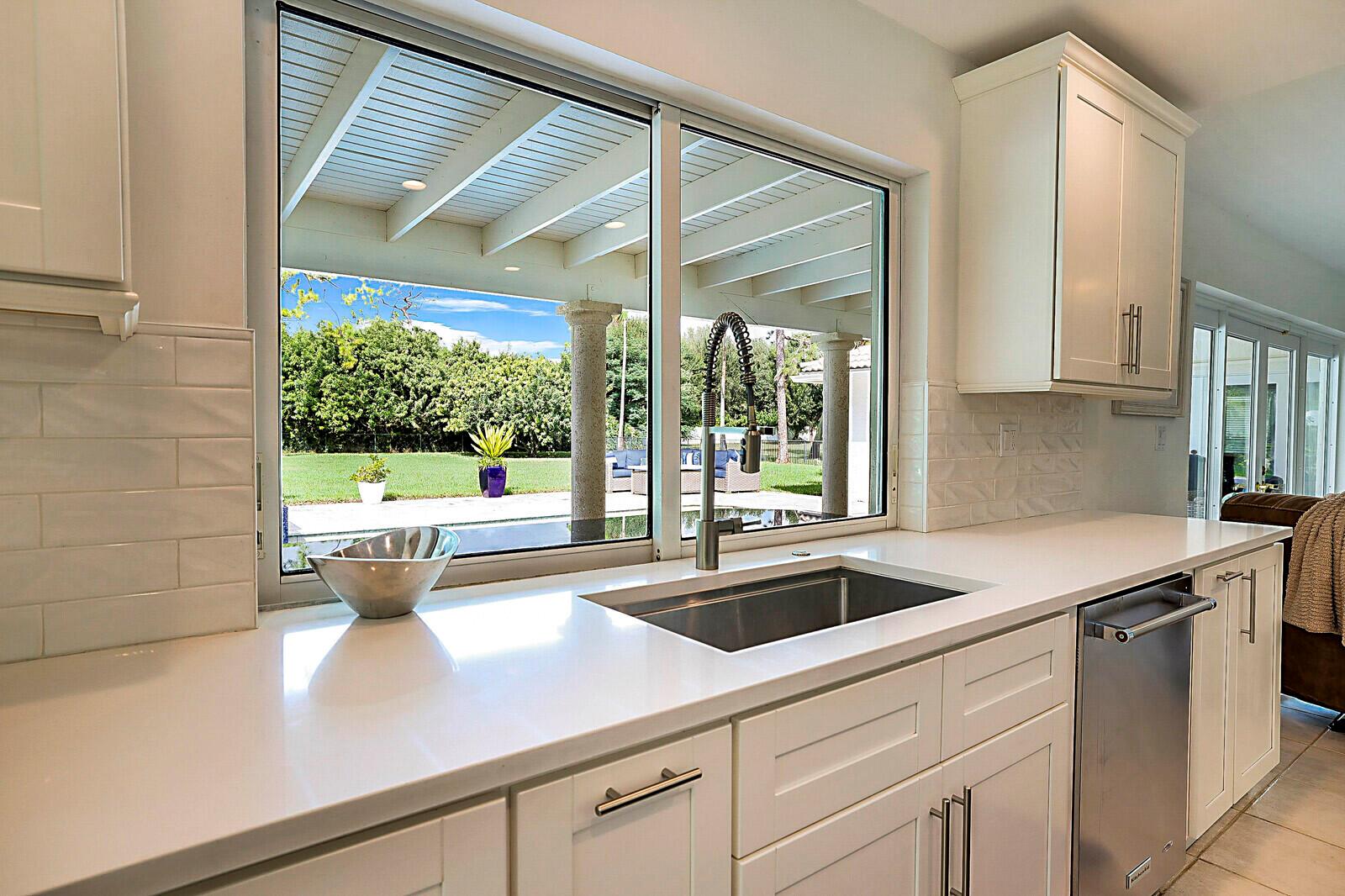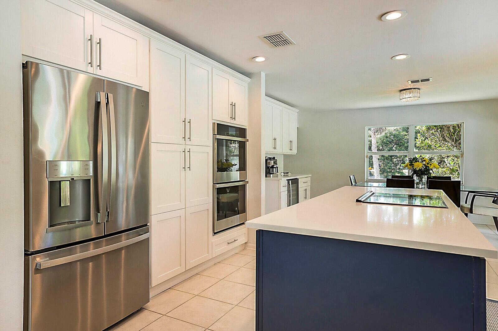 Welcome to Paradise - If you treasure privacy & tranquility, appreciate nature, enjoy entertaining, love cooking, like relaxing in the heated, resort-style pool & spa AND want to be away from the traffic yet close to all the conveniences, THIS IS FOR YOU! The fenced, acre estate with oversized circular drive is sided by rippling water & surrounded by beautiful trees. Enter through custom Mahogany double doors into the foyer adjacent to the formal living & dining rooms. Beyond is the family room w/a fireplace, French Doors & high ceilings. The dream kitchen features white Shaker cabinets, quartz counters, stainless steel appliances, + a center island w/cooktop & contrasting dark blue cabinets. There's also a large pantry, a coffee bar & wine cooler.