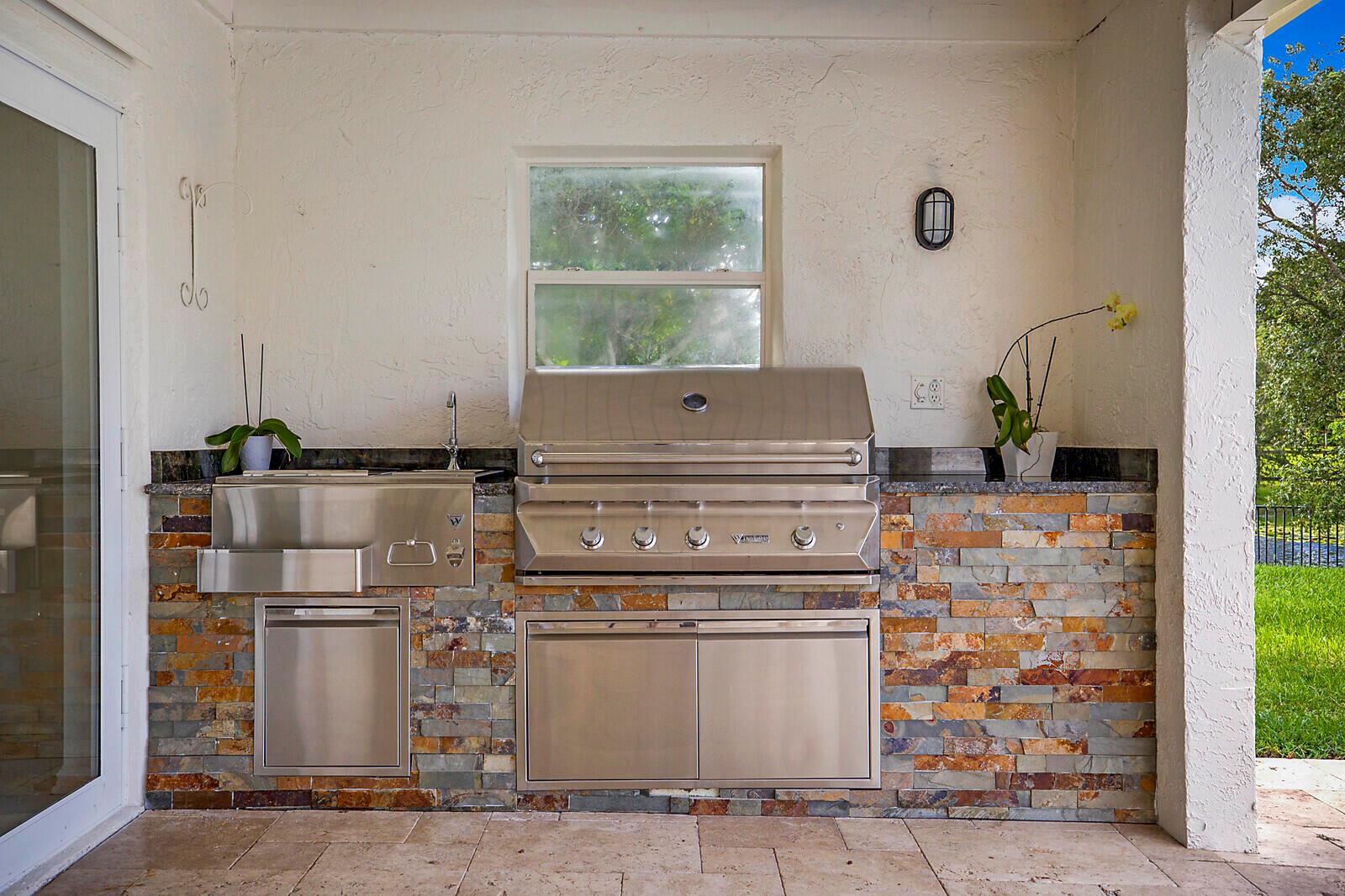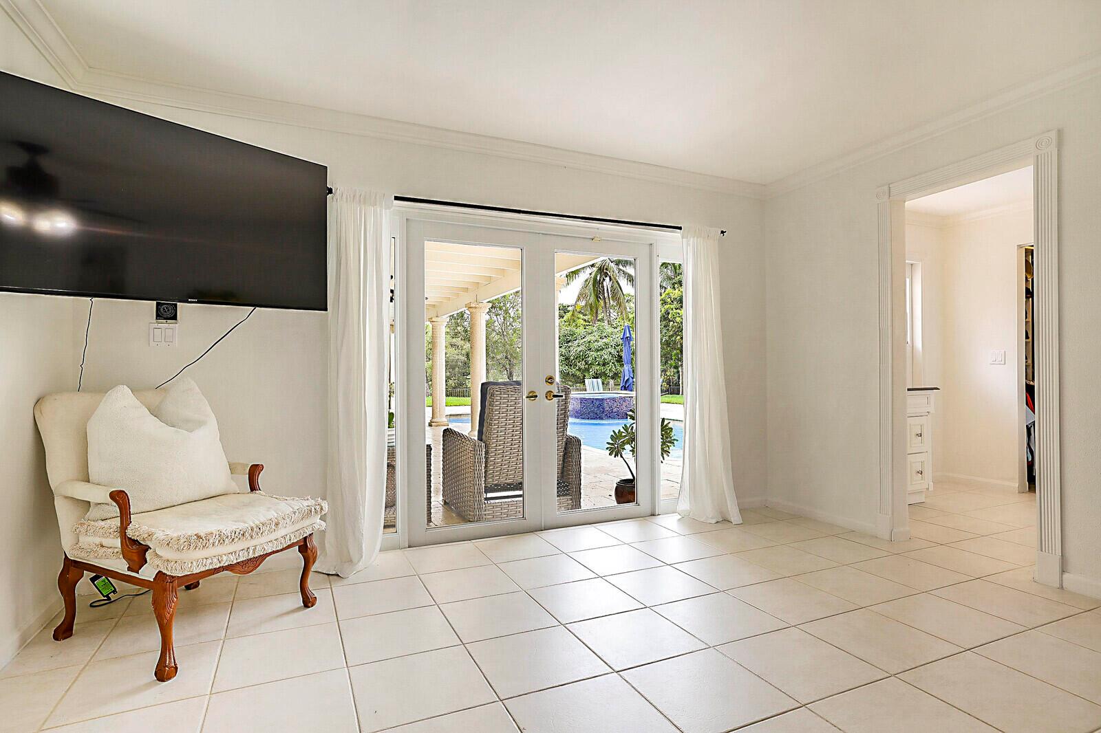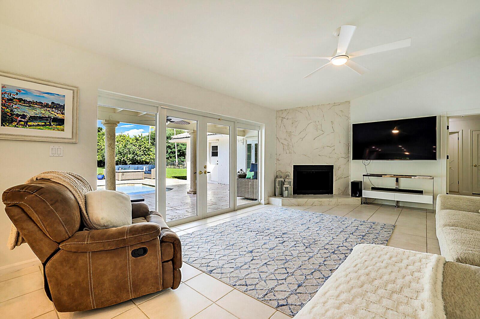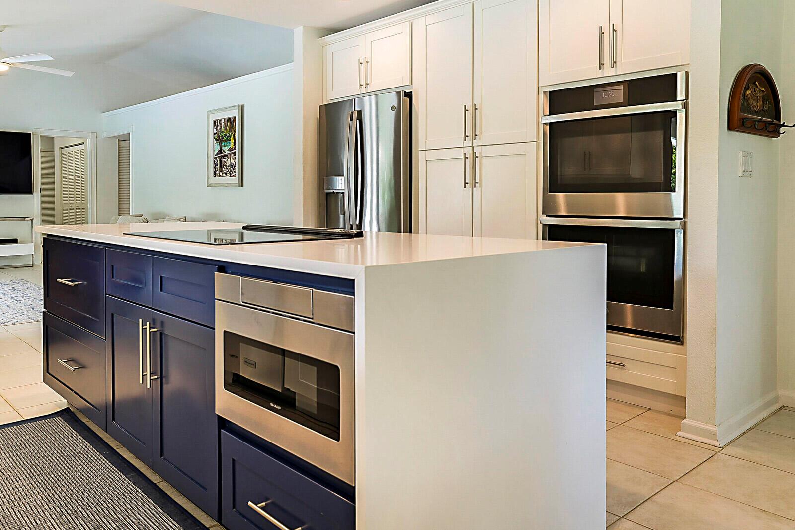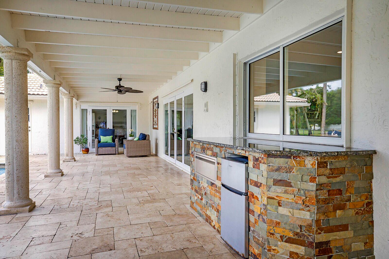 Welcome to Paradise - If you treasure privacy & tranquility, appreciate nature, enjoy entertaining, love cooking, like relaxing in the heated, resort-style pool & spa AND want to be away from the traffic yet close to all the conveniences, THIS IS FOR YOU! The fenced, acre estate with oversized circular drive is sided by rippling water & surrounded by beautiful trees. Enter through custom Mahogany double doors into the foyer adjacent to the formal living & dining rooms. Beyond is the family room w/a fireplace, French Doors & high ceilings. The dream kitchen features white Shaker cabinets, quartz counters, stainless steel appliances, + a center island w/cooktop & contrasting dark blue cabinets. There's also a large pantry, a coffee bar & wine cooler.
