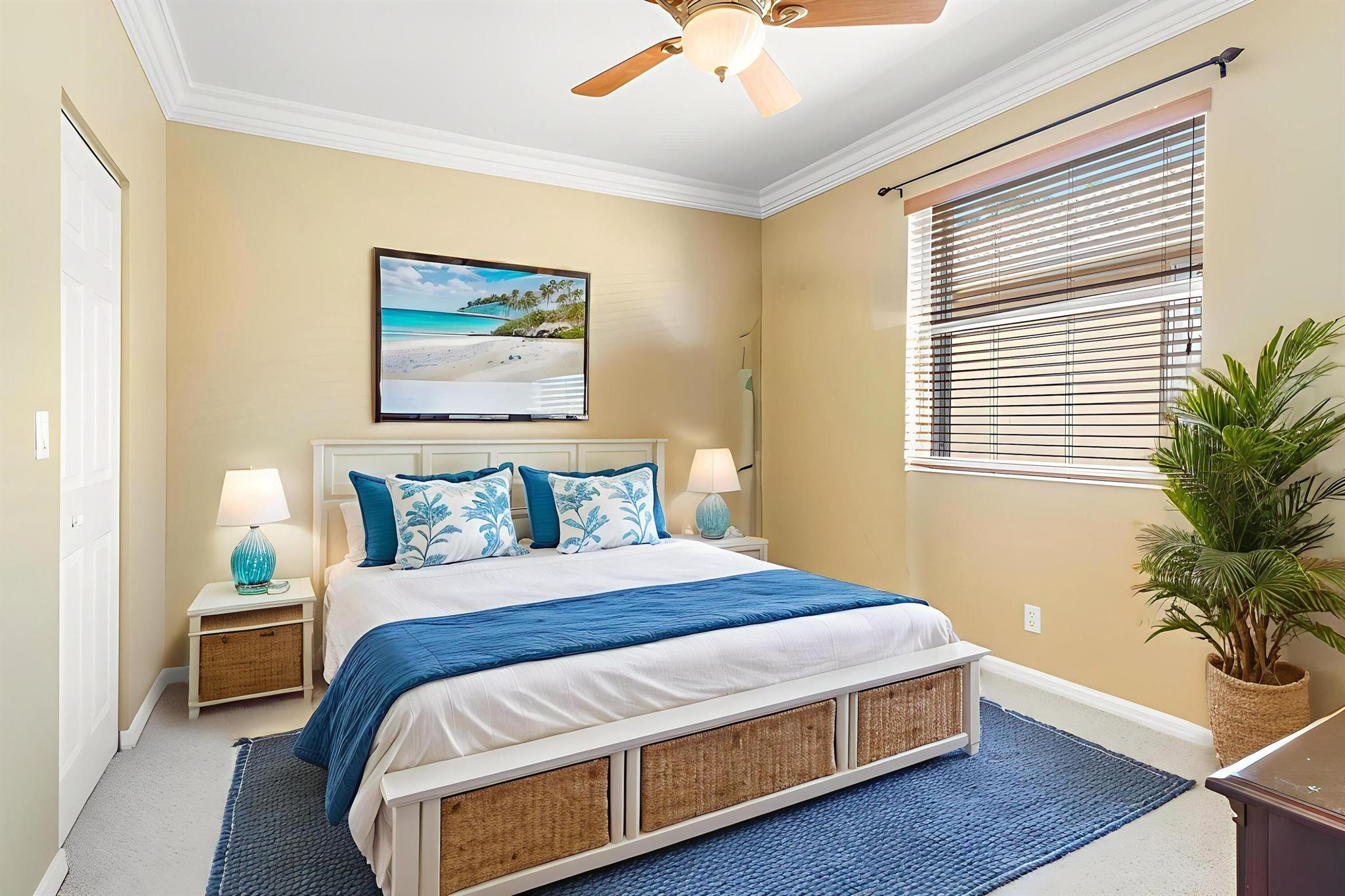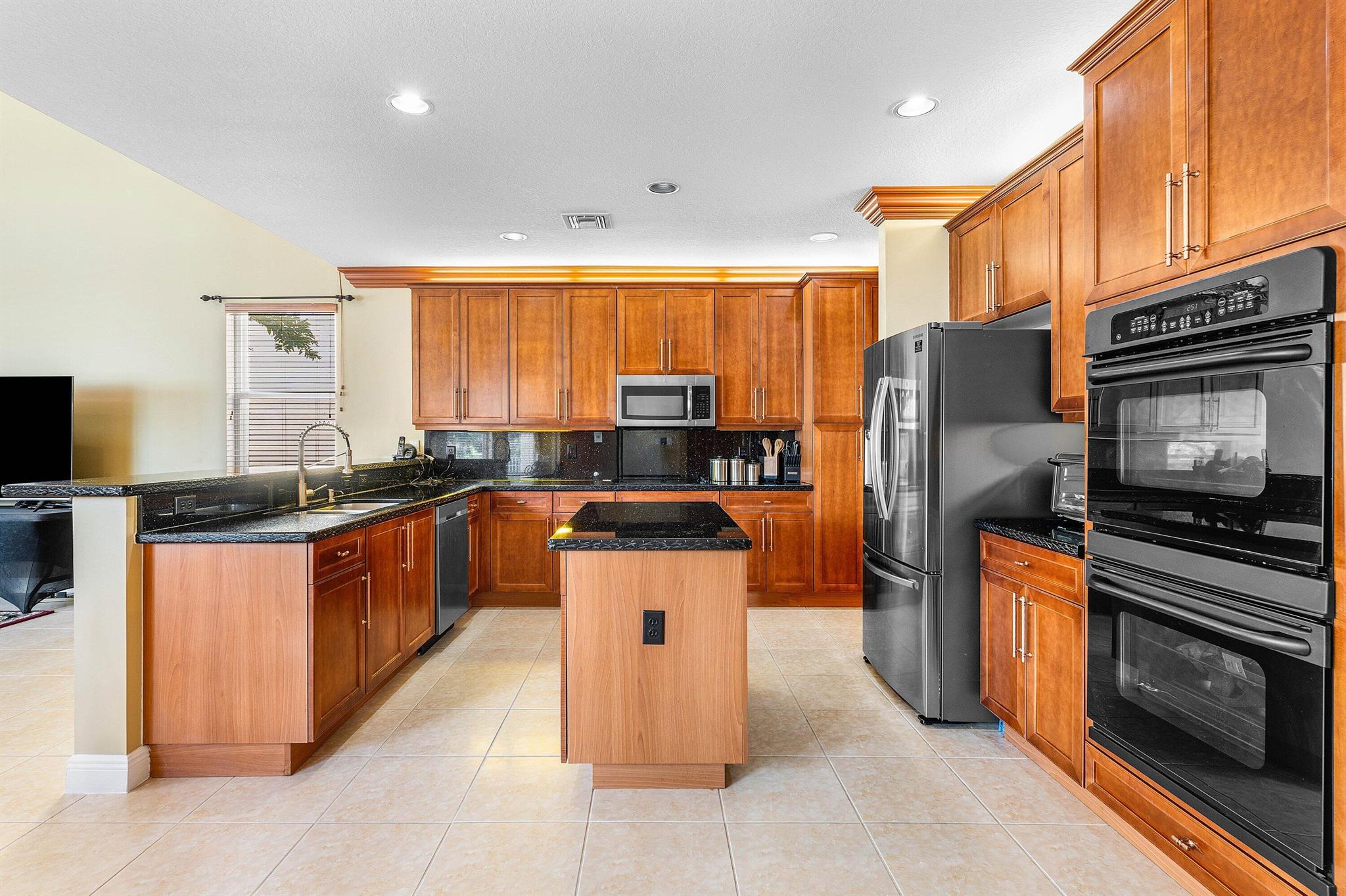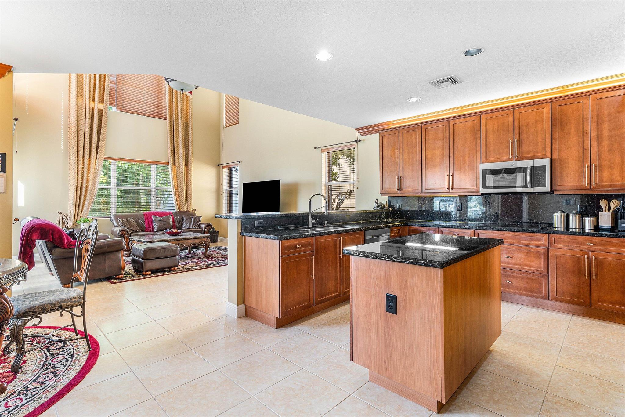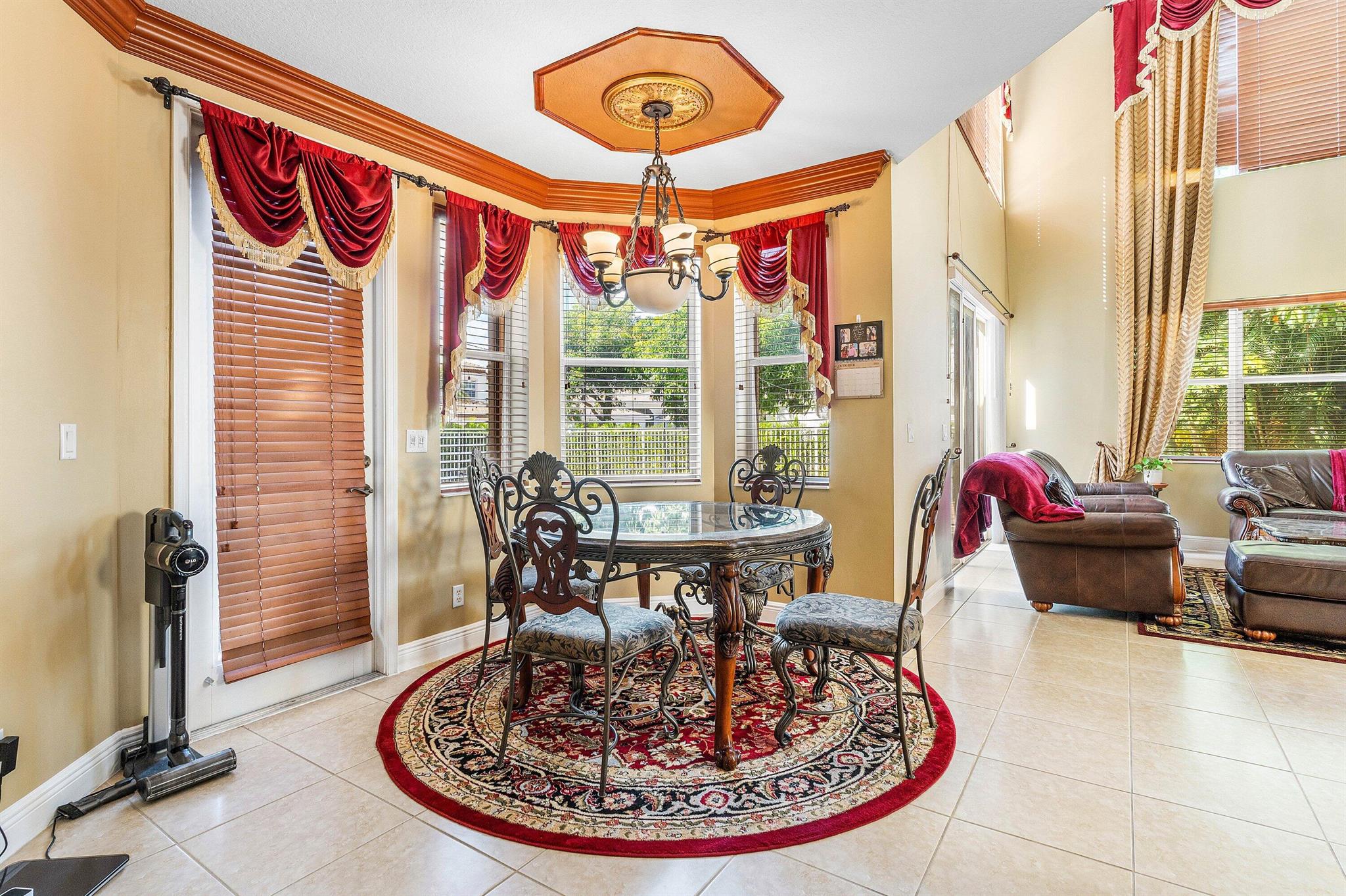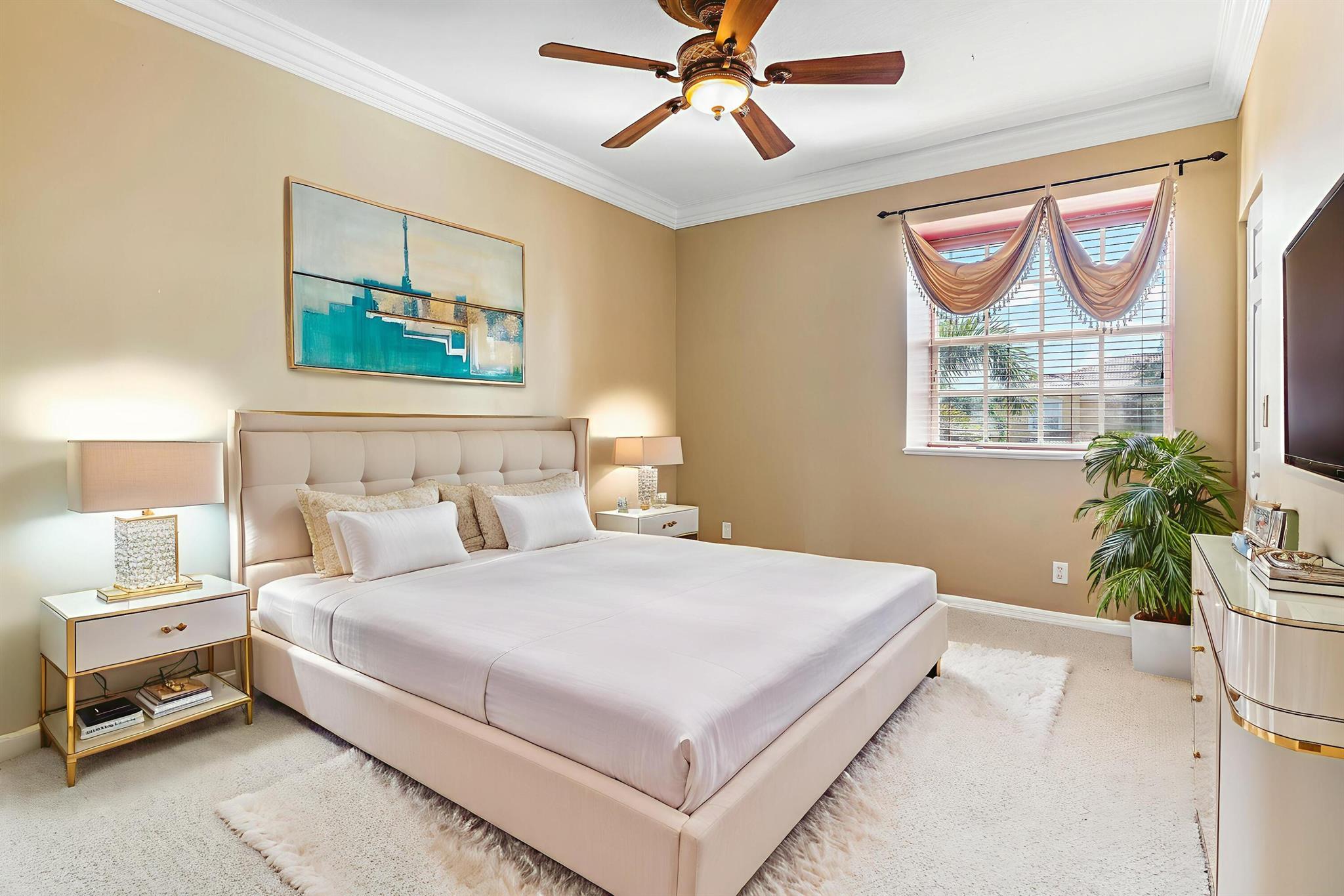 Welcome Home! This immaculately maintained 5-bedroom, 4-bathroom pool home with a 3-car garage is what you've been looking for. Enjoy soaring high ceilings, upgraded crown molding, partial water views, and a spacious 3-way split floor plan. The primary suite, located on the first floor, features a cozy sitting area, his-and-hers walk-in closets, and a luxurious en-suite with dual vanities, a soaking tub, and a separate walk-in shower. An additional full bedroom and bathroom are also conveniently located on the main level as well as a den that could be a 6th bedroom. Upstairs, you'll find a loft, plus 3 additional bedrooms and 2 additional full bathrooms. The kitchen offers newer stainless appliances and beautiful dark granite countertops.