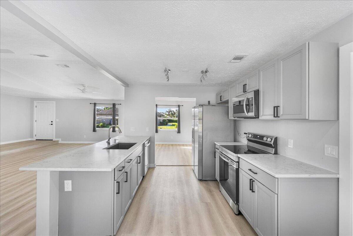 Charming Pool Home on Canal in the Heart of Port Saint Lucie! This move-in ready gem offers the perfect blend of comfort, style, and location. Nestled on a peaceful canal, enjoy your morning coffee while watching playful otters glide by. NEW ROOF to be installed by seller! AC (2021) and Water Heater (2020) - all major systems updated. Sparkling private pool with serene canal views. New vinyl flooring and fresh interior/exterior paint.Modern kitchen with new cabinets, fixtures and appliances. This home is light bright and move in ready!Easy access to I-95 and the Turnpike makes commuting a breeze. This home checks all the boxes--don't miss your chance to own a slice of Florida paradise!
