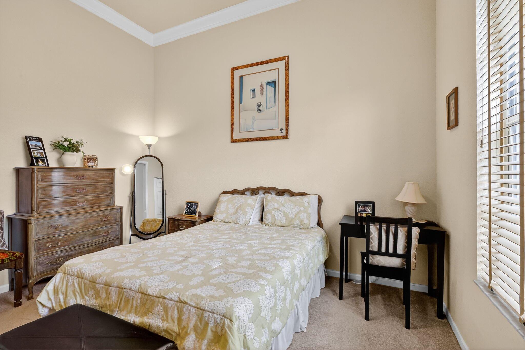 This immaculately kept and unique home is just waiting for you! Brand new roof! Very rare courtyard style residence with custom built and expanded guest house. You enter through a double door entry into a private and tropical courtyard area with free-form pool. The main house features 3 bedrooms , 3 baths with a spacious and open floorplan, formal living, dining and family rooms, indoor utility with extra cabinetry and a laundry tub and a 3 car garage. 12' ceilings throughout, updated appliances, split bedrooms, unique master with private entry and giant 12 x 10 walk in closet and nicely appointed bath with dual vanities, roman tub and separate shower. The guest house has a private entrance living room and kitchen w all appliances, 2 spacious brs, bath & washer/dryer. Gated community w