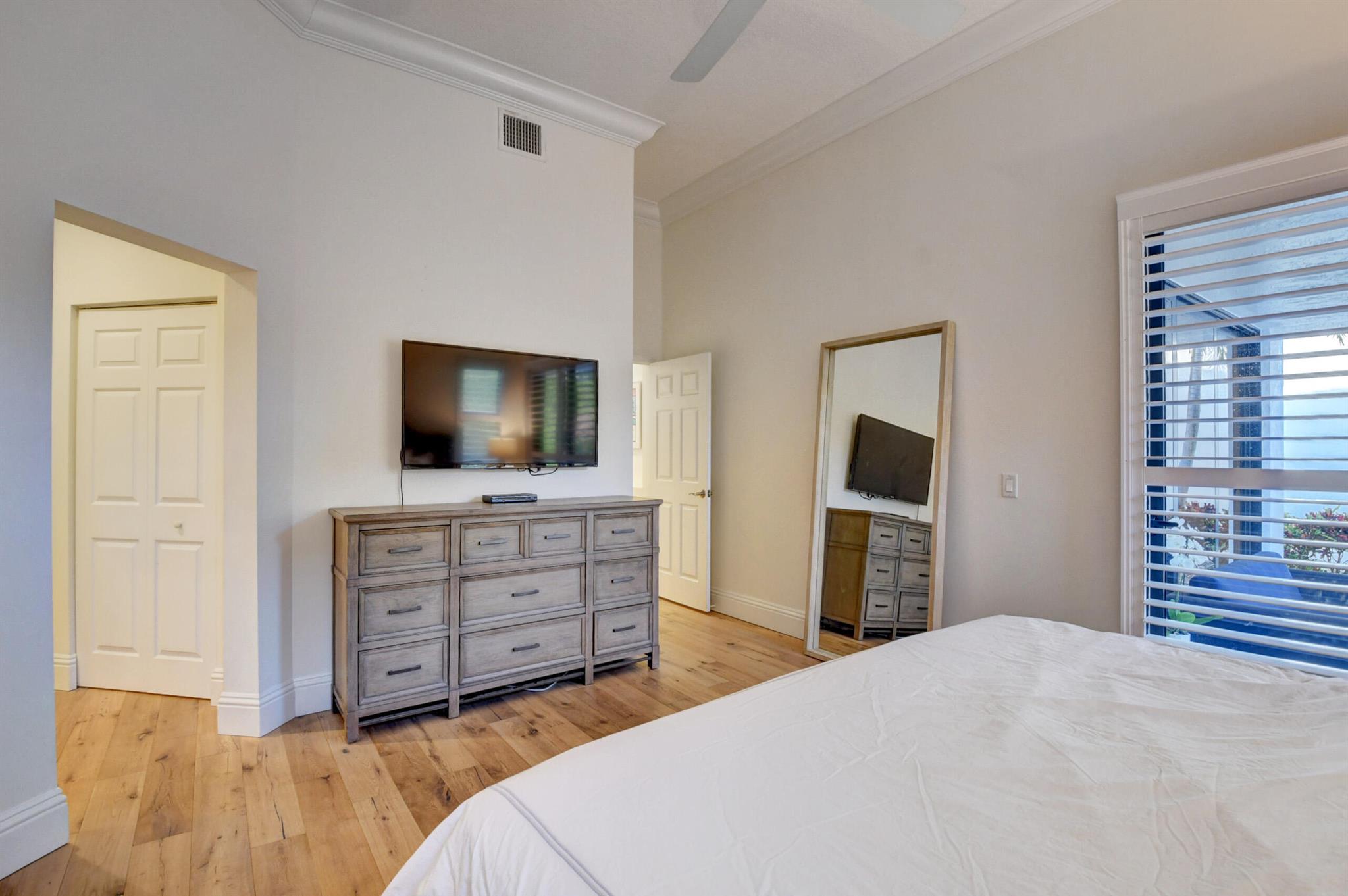Experience elegant one-story living in this beautifully renovated 3-bedroom, 2.5-bathroom home located in the sought-after village of Oak Run in the prestigious Broken Sound Country Club. This light-filled residence features volume ceilings, a desirable split bedroom floor plan, and rich wood floors throughout. The spacious living room flows into the dining room seamlessly for entertaining, while the updated kitchen and baths showcase timeless finishes, including frameless shower doors, crown molding, and plantation shutters. The luxurious primary suite offers a spa-like bathroom with a free-standing soaking tub, custom built in closet and modern design details. Step outside to your private oasis with an enclosed backyard, a heated pool perfect for year-round enjoyment, and a charming