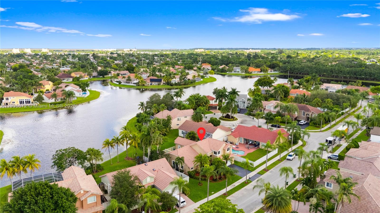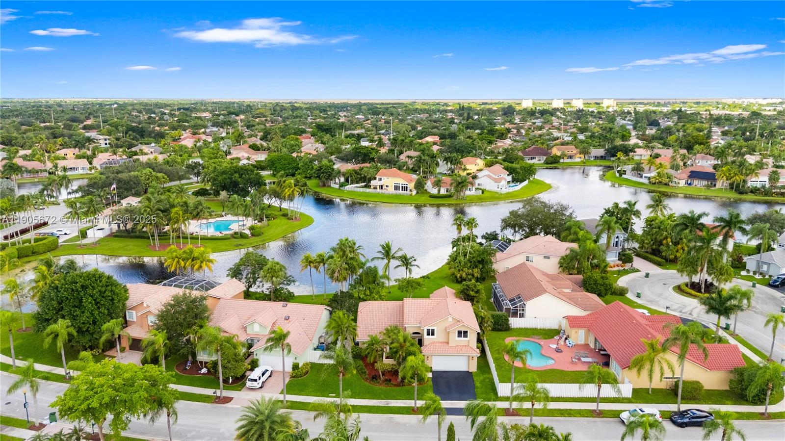 Breathtaking lakefront views anchor this renovated Estancia model on an oversized 10,000+ sq. ft. lot. The 4BR + den, 3BA layout features vaulted ceilings and extensive storm protection: impact windows and doors, and accordion shutters. (Note: two small master-bedroom windows are non-impact and protected by accordion shutters.) The two-car garage includes an EV charger, and fiber-optic internet keeps everything fast. Interior upgrades include brand-new appliances dishwasher, microwave, refrigerator, washer & dryer with gas range installation included. Outside. Enjoy the renewed saltwater pool and spa with updated equipment overlooking the tranquil lake. Top-rated schools nearby and an easy walk to the town center complete the lifestyle package.