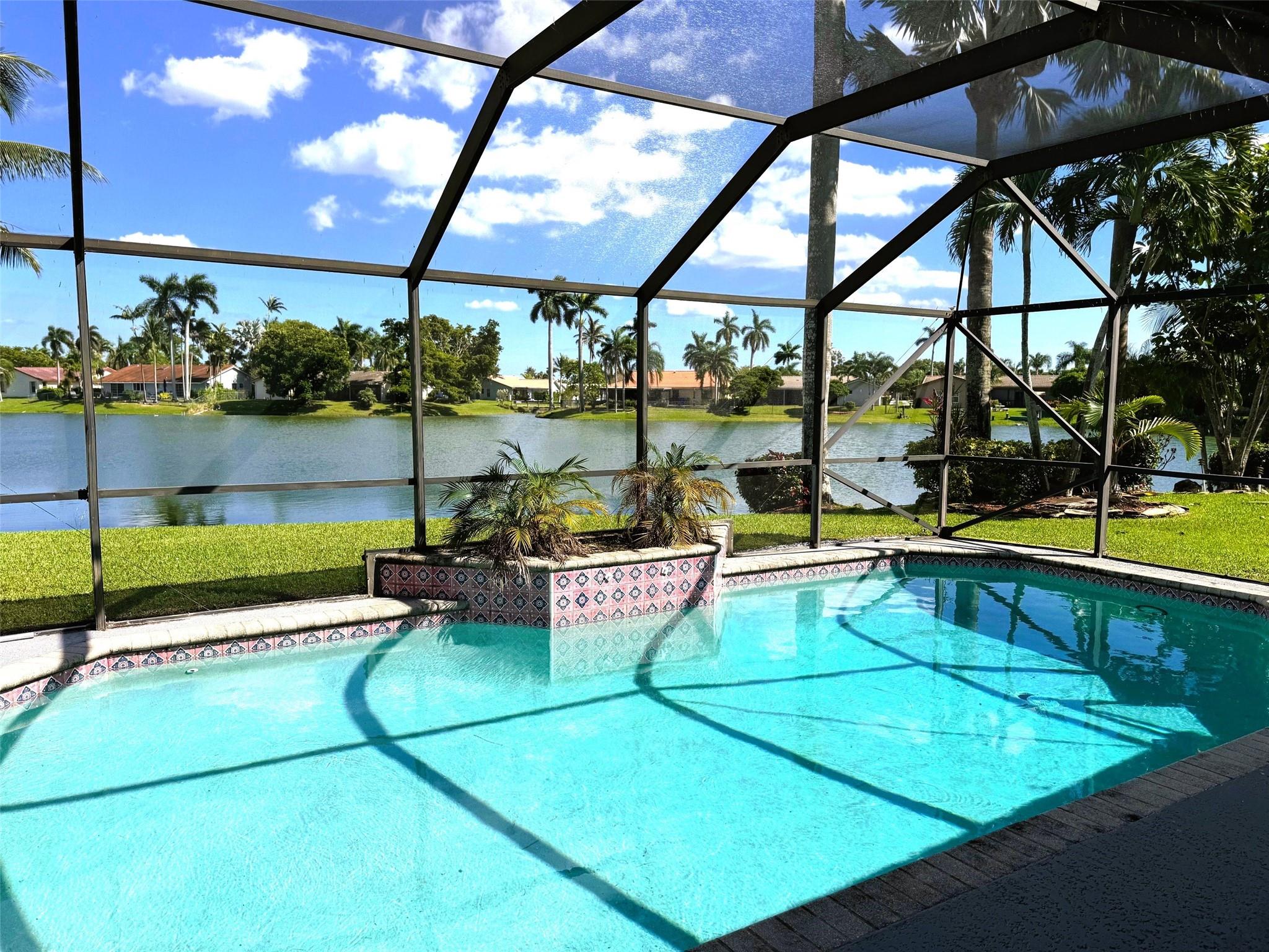 This fully updated 3 bedroom/2 bath lakefront pool home w/a 2 garage will make you think you're in a resort. It features a bright open floor plan with gorgeous water views, a beautiful screened-in pool and updates throughout. For a bonus, there's a flex space or family room just off the living room that could be used as a home office without sacrificing one your bedrooms. This fine home has it all but does need cosmetic work which is reflected in the price. Sunflower is a well-kept community with its own park and a low HOA fee of $175.00 per year.
