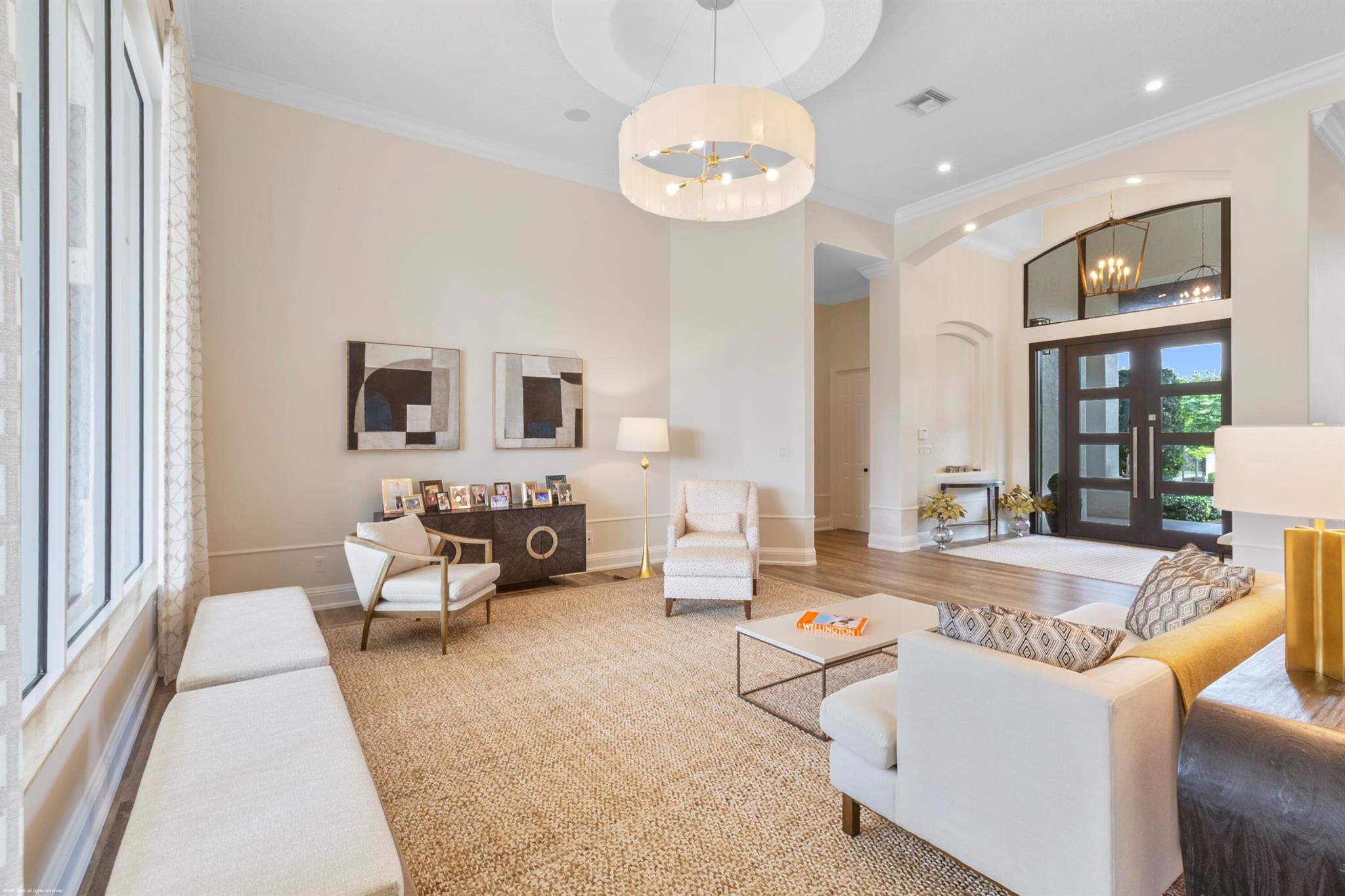Meticulously maintained equestrian property on an oversized 2.33-acre lot in Paddock Park 2, backing to the bridle path & canal. Boasting a freshly updated 5-stall center-aisle barn w/new pavers & tack room, 225' x 130' Wordly Martin riding arena, & 5-grass paddocks, plus a 2,280 sq. ft. detached garage offering flexible options for more housing, storage and parking of trailers or RV's. The residence with an open floor plan has been well maintained with recent updates to the kitchen, guest bathrooms, laundry room, flooring, pool & patio, plus new RO-water system, newer roof and impact windows & doors. The home features a large game room & lock-off studio suite w/separate entrance, perfect for staff. The gated grounds are beautifully landscaped, offering the perfect oasis for your horses.