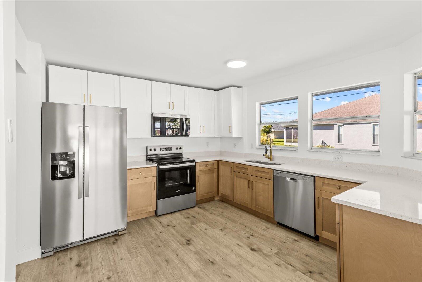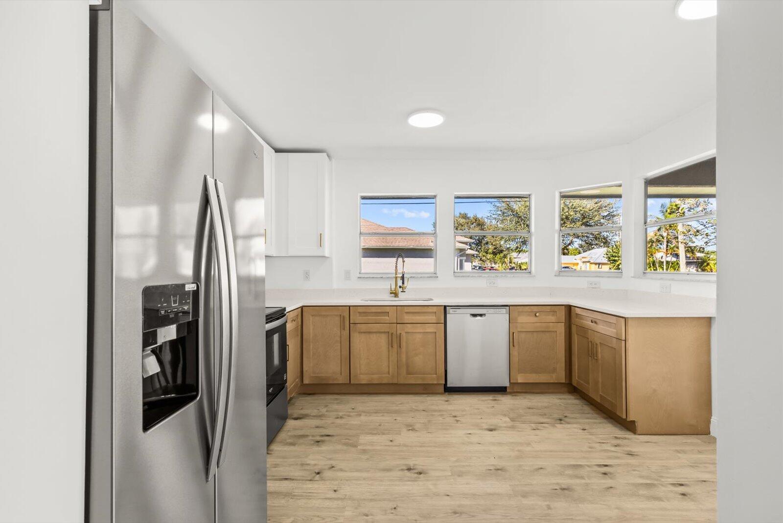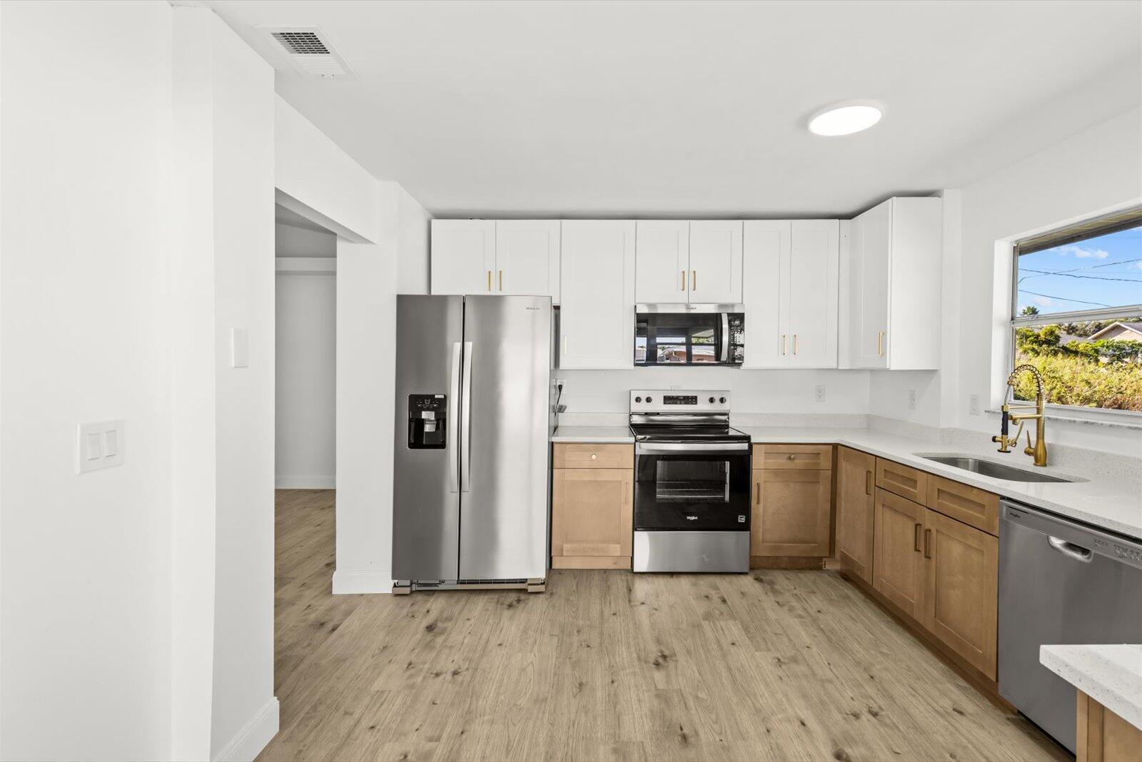 Back on market, dont miss out! Showings: Showingtime. Exquisite CBS 3-bedroom, 2-bathroom residence, fully renovated in 2025. The gourmet kitchen boasts luminous Calacatta quartz countertops, bespoke soft-close shaker cabinetry, and premium high-end finishes, designed to inspire culinary excellence. Luxurious spa-inspired bathrooms feature sophisticated tile work, free standing tub, gorgeous vanities, and contemporary fixtures, elevating daily rituals to a serene escape. Impeccable waterproof laminate flooring, freshly painted interiors and exteriors, and brand-new, top-tier appliances blend style with functionality. Enjoy effortless access to I-95, premier shopping, and dining, with the freedom of no HOA restrictions. 2025 Roof, 2016 AC, 2021 Water heater