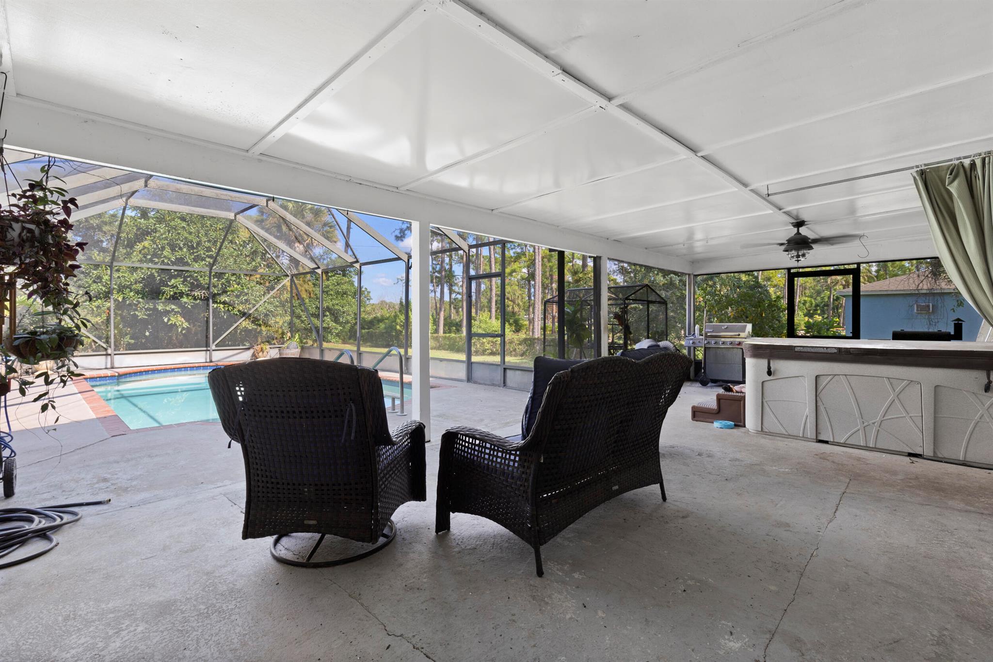 Least-expensive pool-home opportunity in The Acreage! This home will be actively listed for ONLY two weeks. Two open houses scheduled; once completed we will solicit Highest-and-Best offers. Positioned on a fully-fenced, corner lot, this residence features 18″ ceramic tile throughout the entire home. The kitchen boasts granite counters, stainless-steel appliances, and overlooks a large screened pool & patio area -- complete with a pass-through window for effortless entertaining. Bathrooms also showcase granite counters. The expansive screened and covered patio allows you to relax, entertain and cook outdoors -- free from bugs -- while your pool serves as the centerpiece of this inviting indoor-outdoor lifestyle.