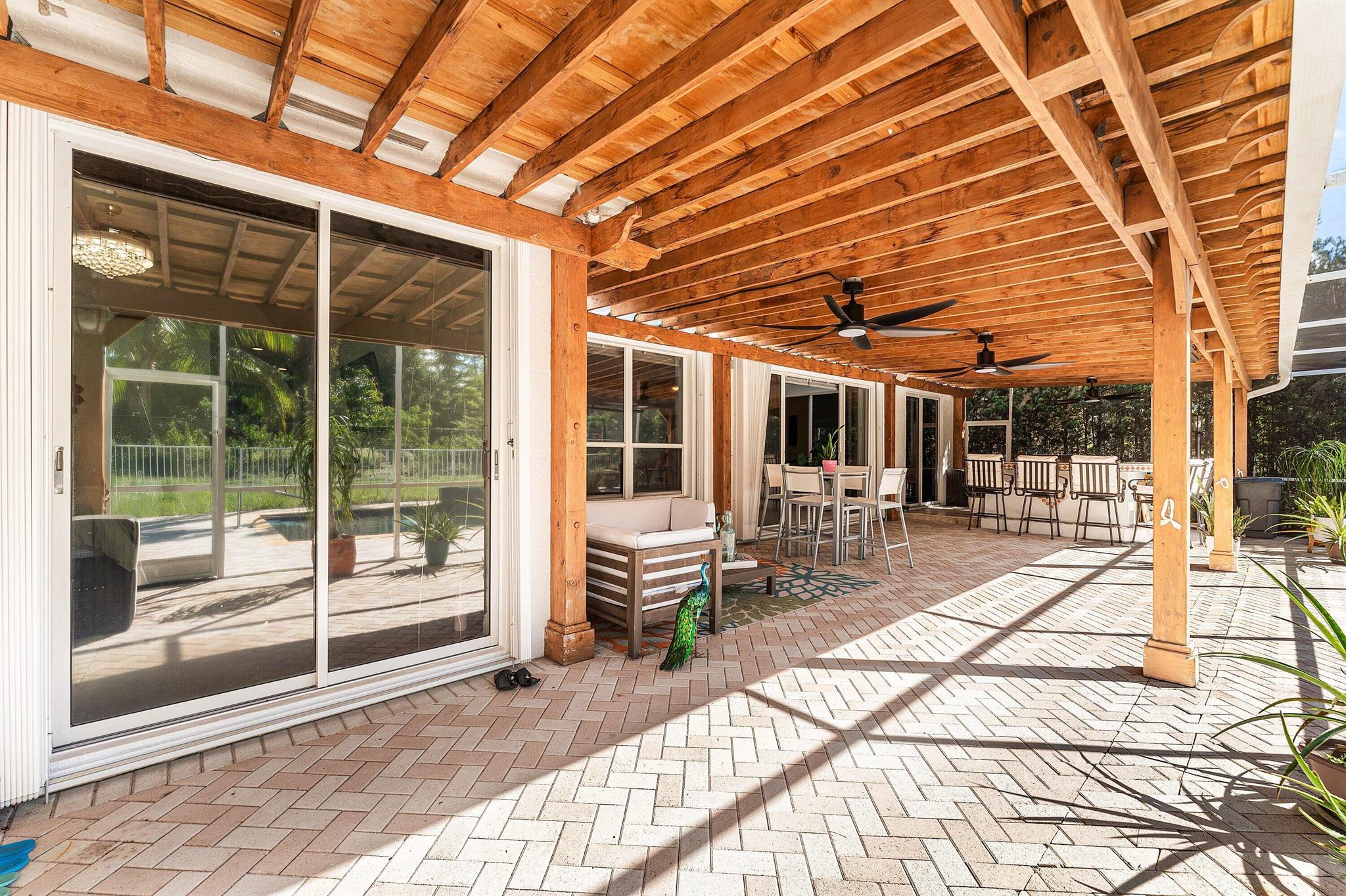 Rare exceptional single-story estate with private pool and yard. Unique entertainers paradise had an add'l 400sf of space added to the floor plan and includes a full cabana bath to the pool area. Total of 4 bedrooms, 4.5 bathrooms, 2 kitchens, 3-car garage! Added space currently used as a gourmet kitchen, can easily be converted to any use such as a large guest room. Enormous pergola covered patio with built-in bar can be turned into full summer kitchen experience. Roof 2022, central vac, water heater 2023, full well-water irrigation system, color changing landscape lighting 2023, saltwater and pool resurface 2020, HVAC 2020, whole-house water filtration system w/reverse osmosis, outdoor sound system, recessed speakers, intercom system. Solar system installed 2022; avg electric bill $30!