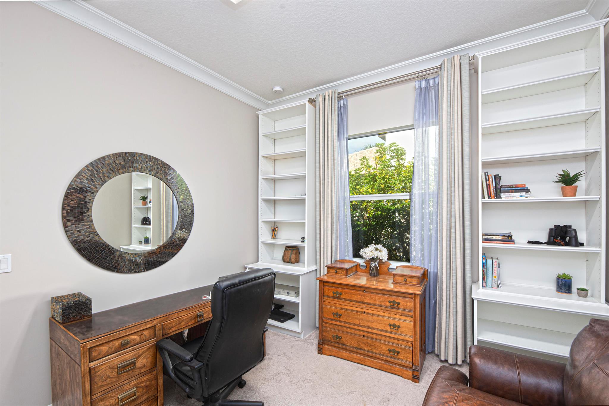 Welcome to this one-story bright 4 bed/3bath CBS built home, located in the beautiful Tradition area of Port St. Lucie! This stunning home with over 2300 sq Ft is well-maintained and move-in ready. Interior and exterior recently painted. Many upgrades, including hurricane proof impact windows and outside doors, crown molding, built-in furniture (including entryway bench with mirror, TV wall, a corner cabinet, breakfast nook, and floor to ceiling bookshelves), and brick-wall flower beds in the front yard. Open floor design flows through the living room, kitchen, breakfast area, and dining room, creating a perfect space for family and friends to gather! Custom outdoor kitchen w/ grill, pizza oven and Green egg convey. Located close to highways, WP airport, local businesses, parks/beaches.