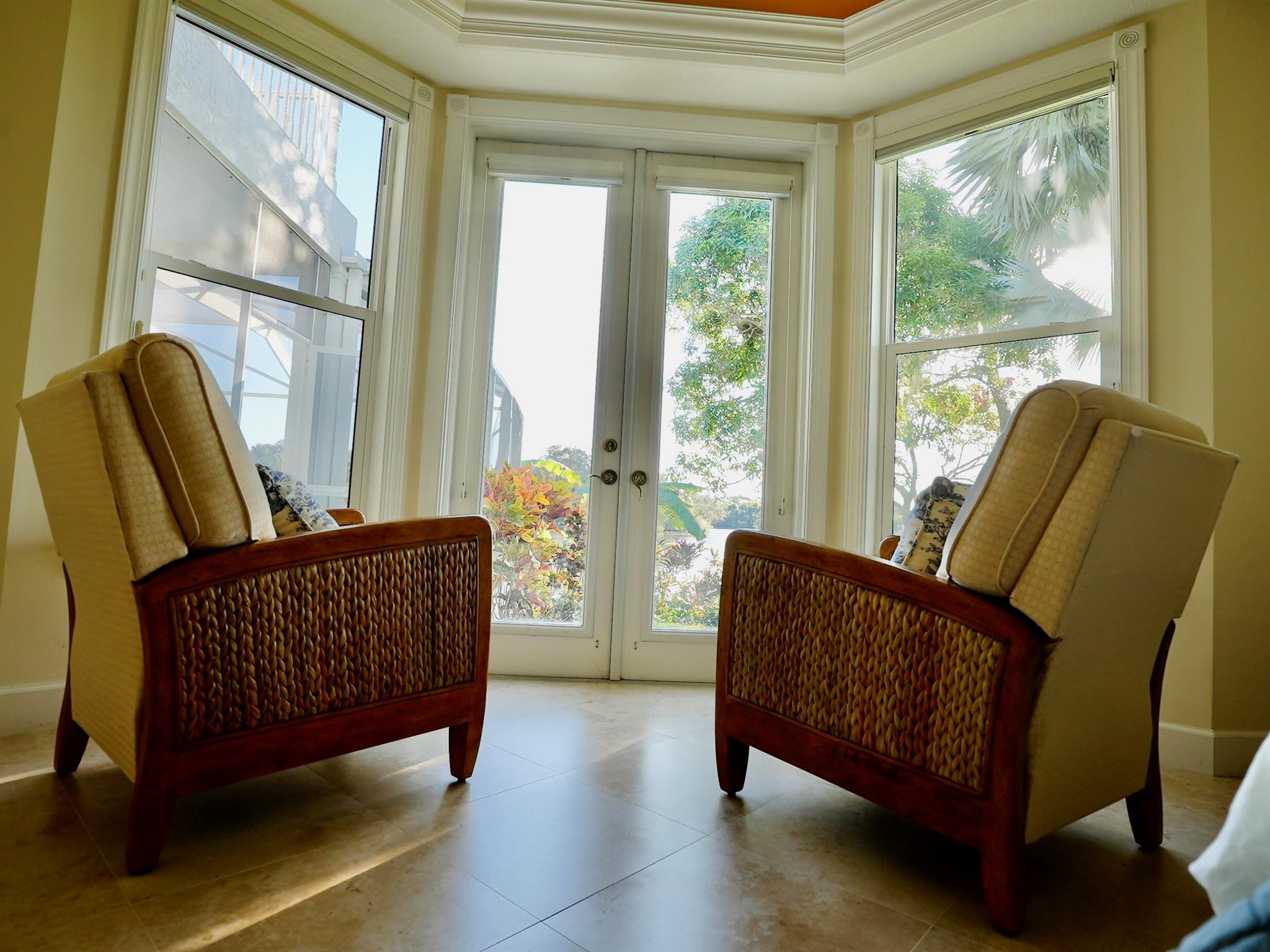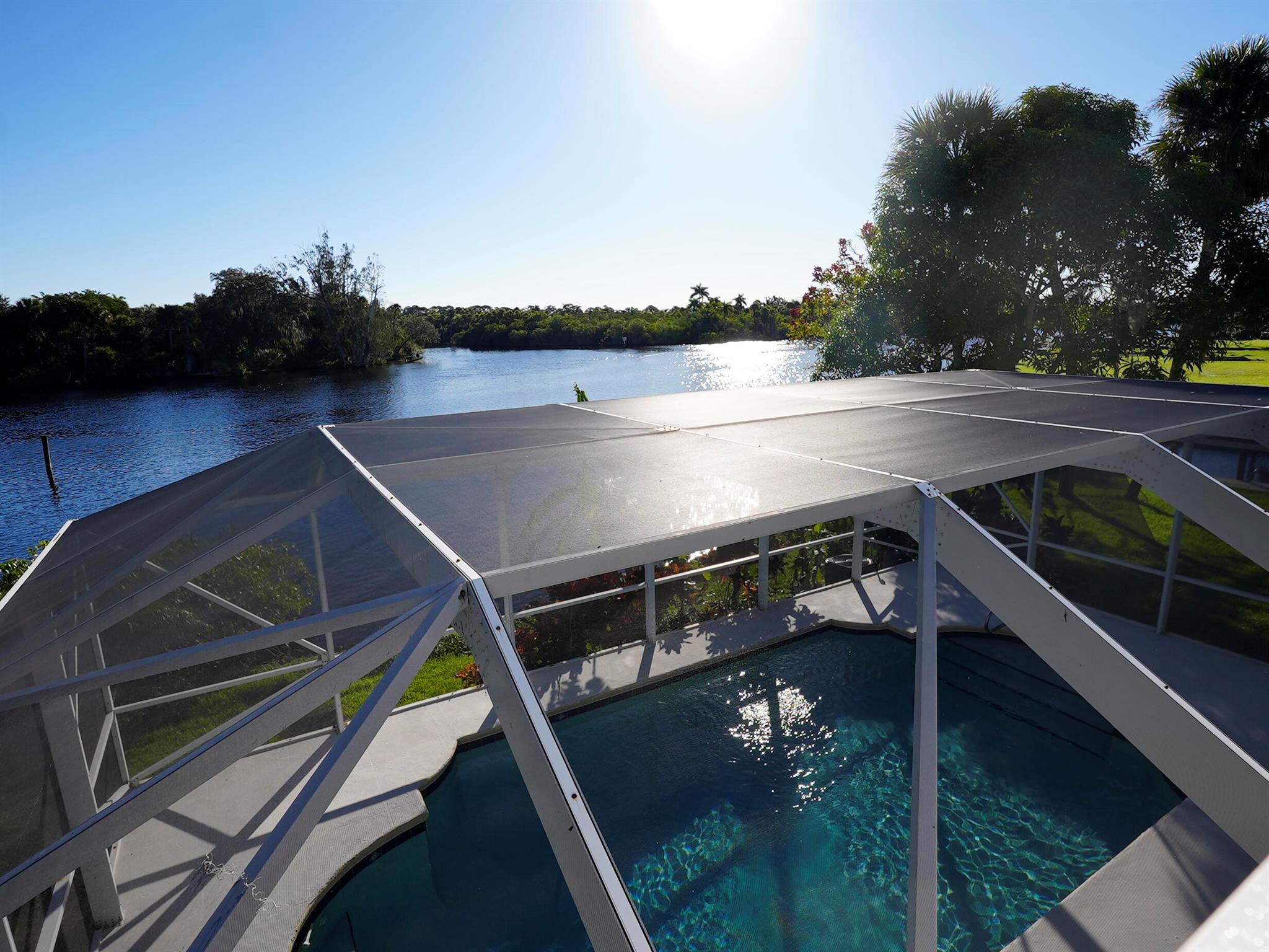 Welcome to Imagination Plantation, a 5-bedroom, 4-bath waterfront estate on 4+ acres in Palm City -- including a 3+ acre vacant buildable lot fronting the main residence. Built in 2006 and thoughtfully updated with a 2022 roof, full impact glass, and fresh exterior paint, the home offers nearly 4,000 sqft of open living space, plus an elevator. The interior flows seamlessly to a screened-in pool and covered patio, while a circular drive and 3-car garage enhance convenience.