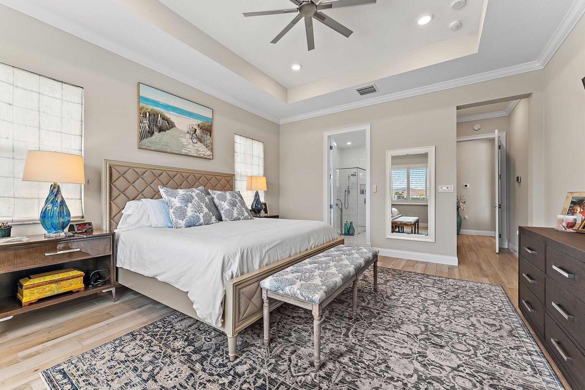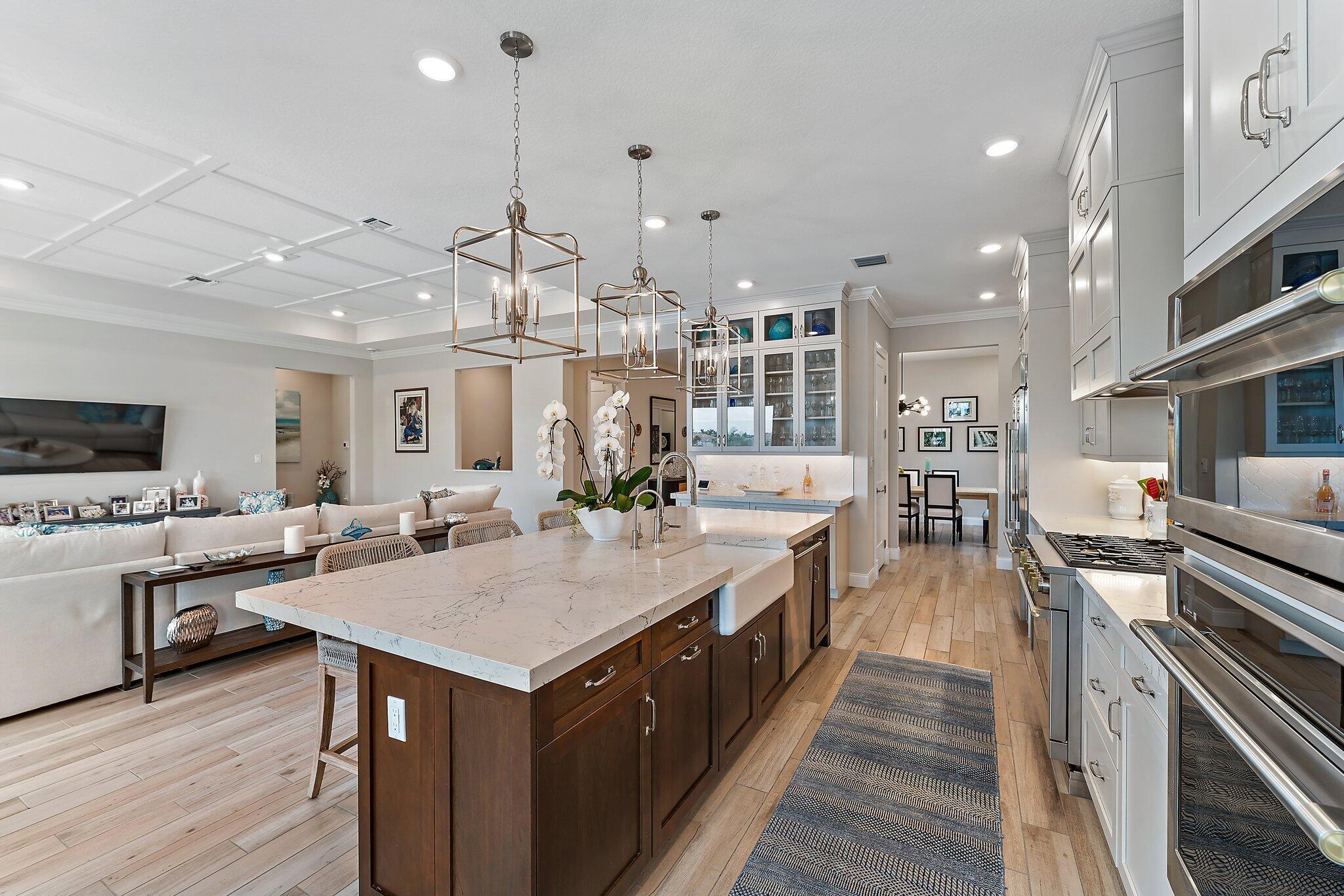 Enjoy stunning wide lake views from the back yard of this professionally decorated home built by K. Hovnanian Homes in 2023. Avenir is conveniently located near Sand Hill Crane Golf Club, an 18-hole championship course, PBIA, shopping and fine dining. Community amenities include resort-style pools, spa, pickleball, tennis, two fitness rooms, indoor/outdoor lounge, outdoor game area, playground, community club house, and much more.