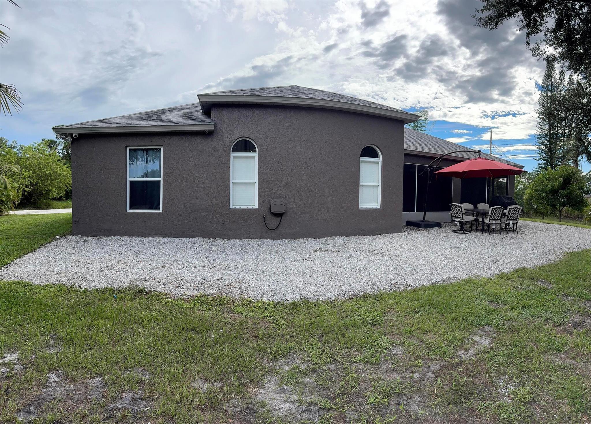 This 3bedroom 2 bath in Vero Lake Estates has no HOA, 2 car attached garage, massive detached 1925sq ft insulated metal building (55'Lx35'Wx25'H ) with two 14' x 16'H Doors, large backyard, covered and screened back porch, over 10 fruit trees on the property, and extra parking. Custom oversized kitchen, granite countertops, breakfast nook, brand new whole home dehumidifier, fresh paint, dual shower in master bath, and newer roof installed Dec 2020. Privacy trees around the property and at the end of a dead end road. Keep all your toys in one place with the detached building and enjoy the freedom of no HOA! Just a short drive to the beach and Sebastian inlet.Room sizes are approximate