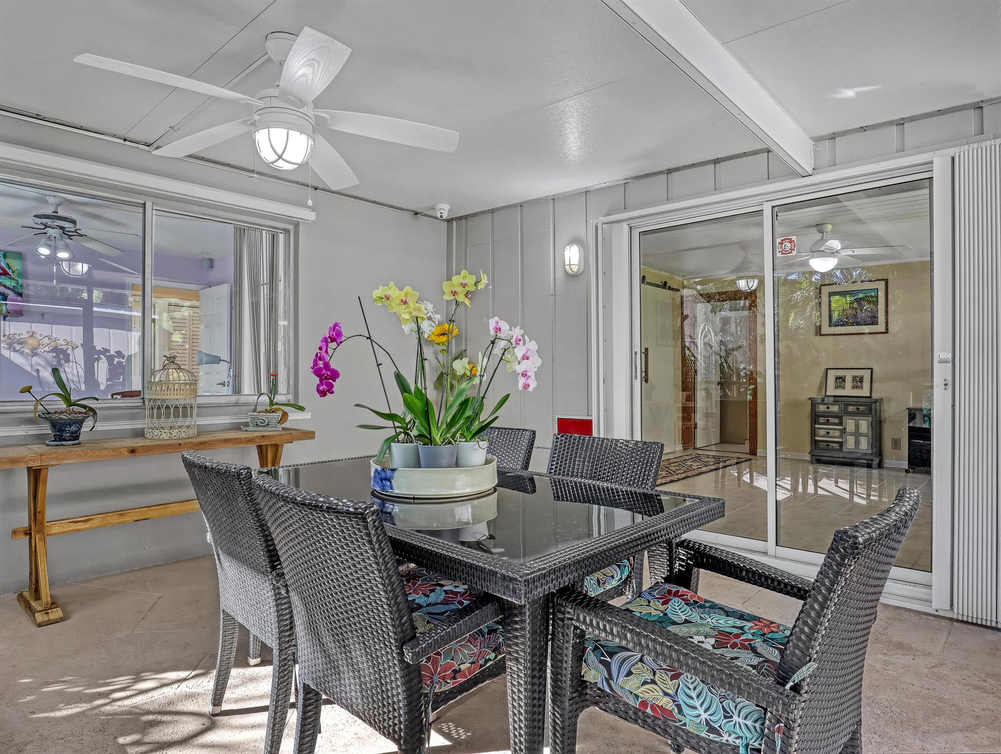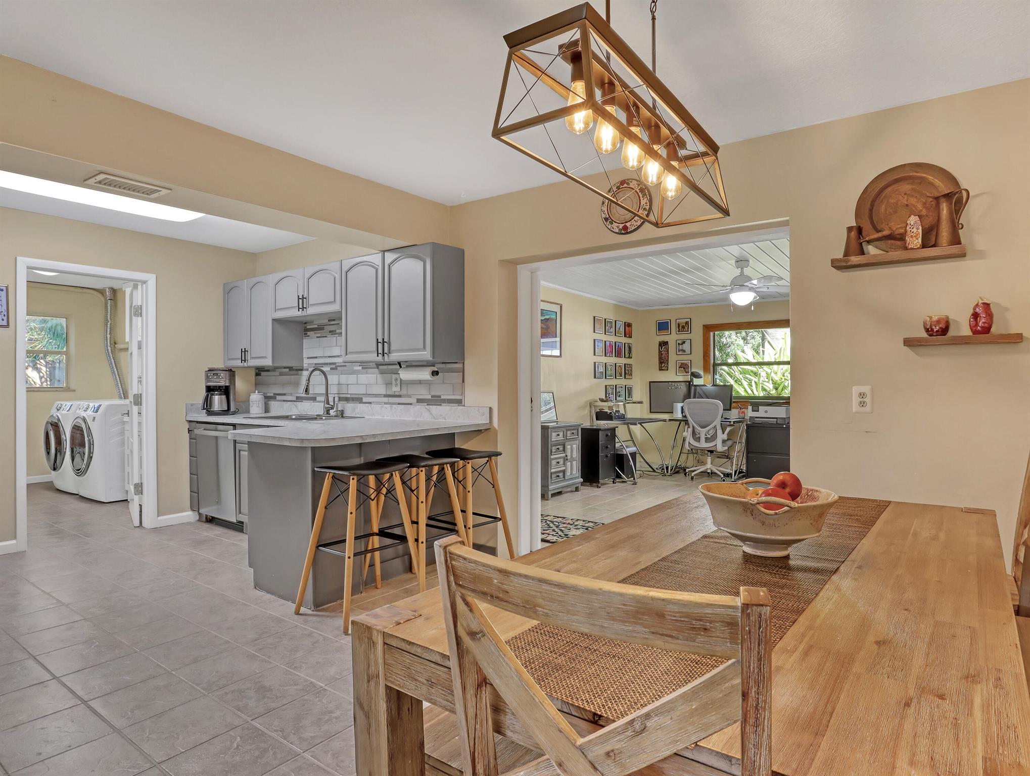 Welcome to Cabana Colony an established neighborhood of SF homes with NO HOA or HOPA. Conveniently located in PB Gardens off Alt A1A close to shopping & beaches.This 3/2 at 1672sq ft living space. New shingle roof ('23) with new low-slope roof over rear addition. New AC handler ('22). Generous LVNG room and family room. Sliders to screened Lanai for outdoor dining to private fenced backyard and seating areas. She-Shed for storage or projects with AC & fans. Attached garage plus covered carport with gate. Tile floors living areas .Ensuite Primary bedroom w full BTR features walk-in closet w/ natural bamboo flooring.Mature landscaping with xeriscape concept. Area for fire pit. Platform overlooking canal. Solar assisted water heater ('22). Supplemental info available
