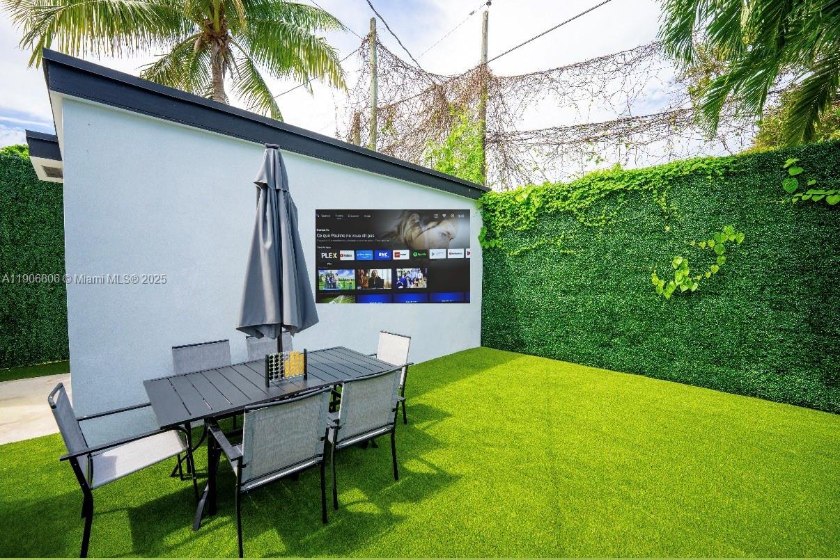 Miami’s prime location. Design District, Midtown, and Wynwood, Edgewater, offers convenient access to Downtown, Miami Beach, and the airport. Modern design, every aspect of this home has been carefully renovated to offer the perfect blend of luxury, comfort, and functionality. At the center of the home is a spacious chef’s kitchen, designed to impress. The master bedroom features a luxurious king-sized bed, while the two guest rooms each include comfortable queen-sized beds. Entertainment is endless with a variety of in-home amenities, including a golf setup. Step outside to enjoy a BBQ grill or relax in the oversized 9-person salt water hot tub, perfect for unwinding after a day in the city. Big front porch.