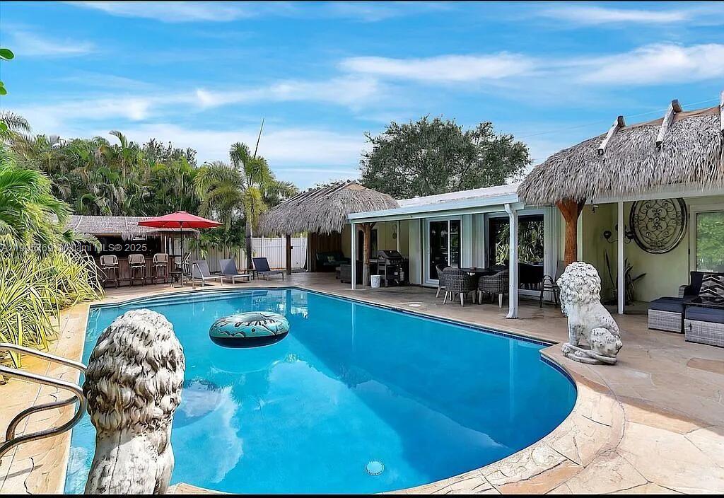 Welcome to 4521 NE 15th Ter in Oakland Park, FL. This charming home features a spacious layout with three bedrooms and two bathrooms. The open-concept living area offers ample natural light and a seamless flow into the updated kitchen, complete with modern appliances and sleek finishes. The backyard provides a private oasis with lush landscaping and a patio area appropriate for entertaining. Large heated pool with 2 Tiki huts.Conveniently located near shopping, dining, and parks, this property is an excellent choice for comfortable living.
