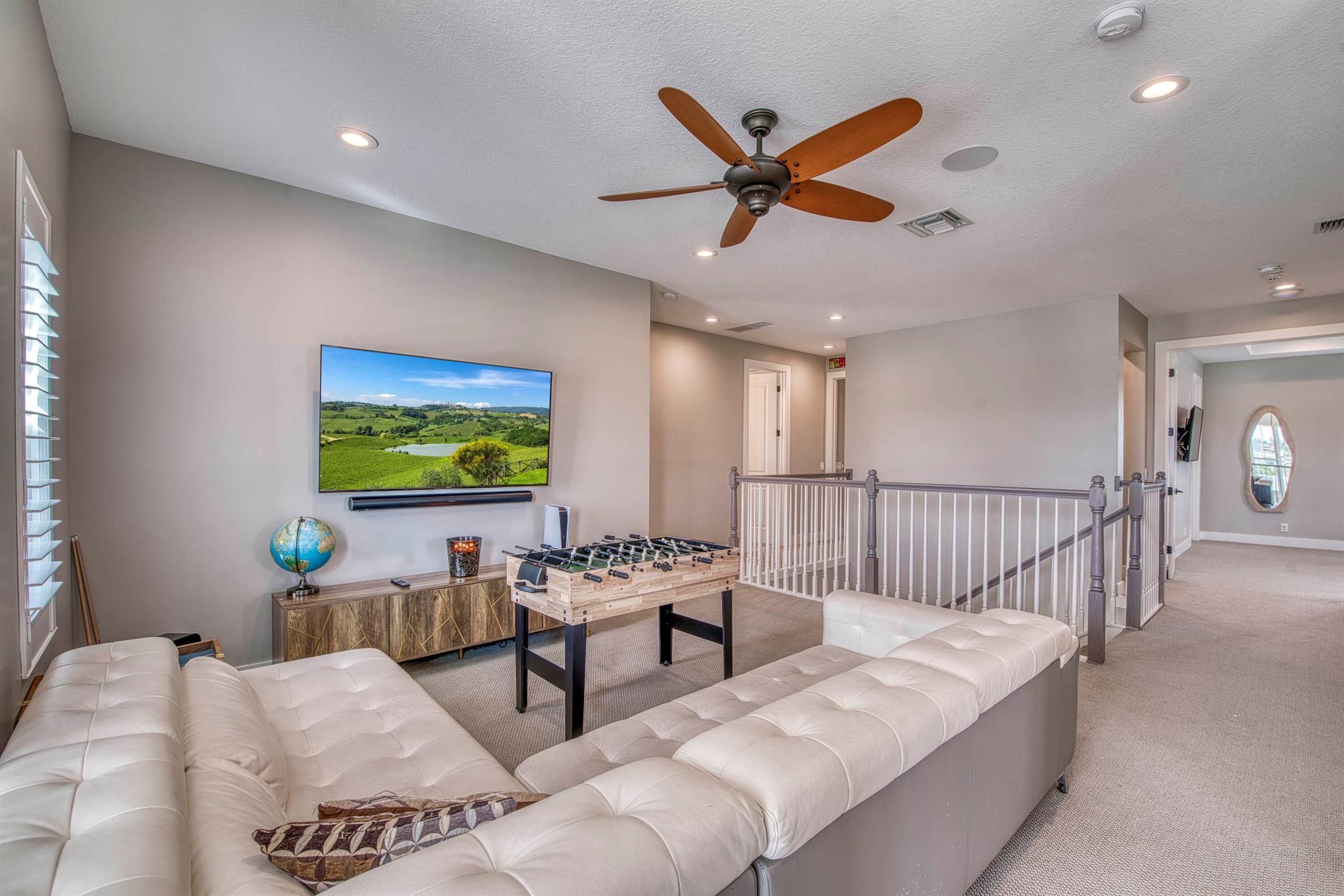 Welcome to this stunning 2021-built Torrance model in Windgate at Avenir, offering 3,222 square feet of thoughtfully designed living space on a 7,000-square-foot lot. This home was customized by Toll Brothers with several architectural modifications at the owner's request, including a mudroom (not typically offered in this community), an expanded primary bathroom with two linen closets, two sets of washer/dryers (upstairs and downstairs), and additional windows to maximize natural light throughout. The open-concept first floor features a sun-filled living room with a wood-clad focal wall and entertainment center, seamlessly connecting to a modern kitchen with a large quartz waterfall island and casual dining area, perfect for everyday living and entertaining. Upstairs, the spacious