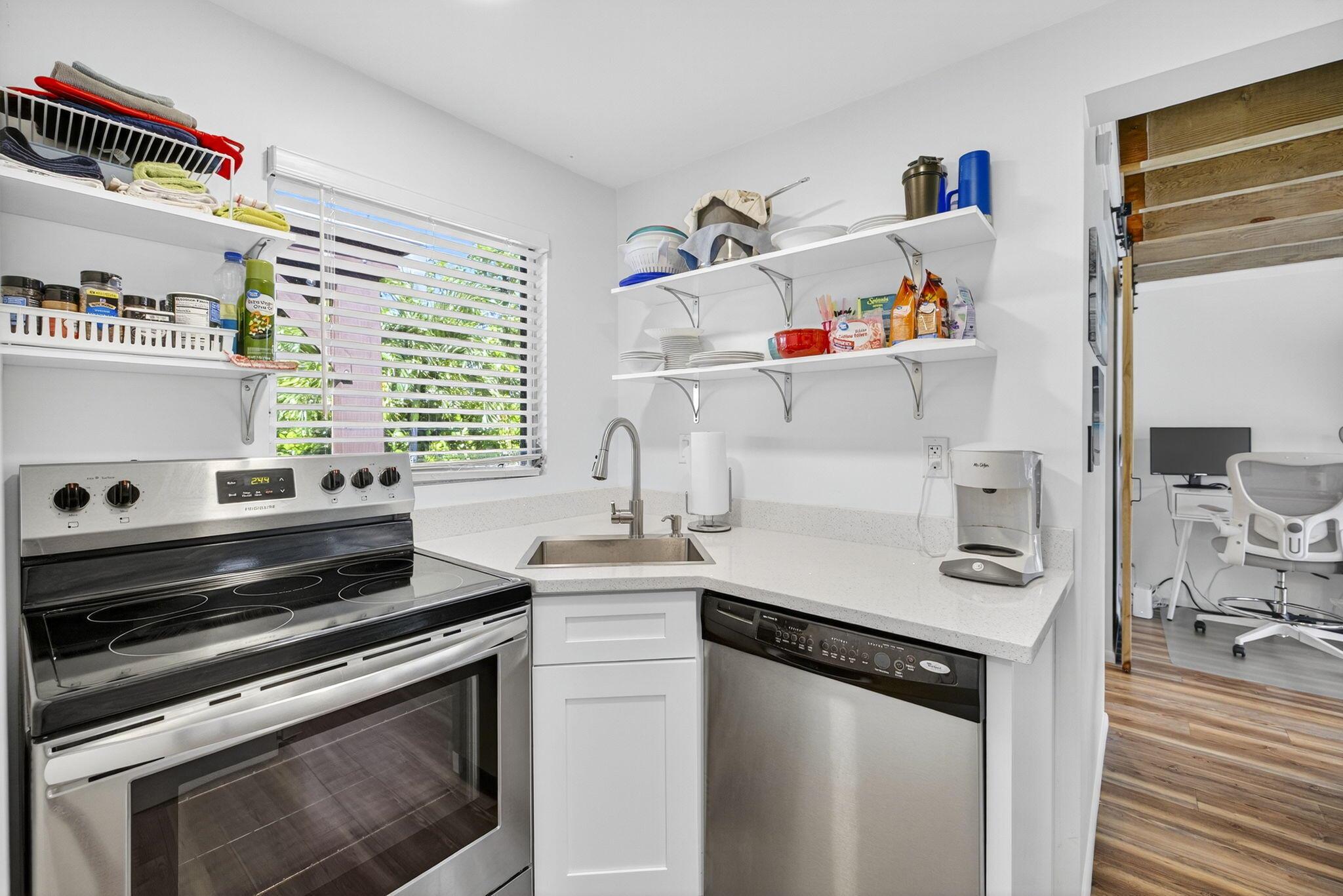 Discover this versatile West Palm Beach gem--zoned for multi-family usage yet also versatile as a single-family home.The main residence is a charming 2-bedroom, 1-bath home offered fully furnished, featuring comfortable interiors and thoughtful design details that make it truly move-in ready. The secondary attached dwelling is a 1-bedroom, 1-bath unit offered unfurnished, flexible for rental income, a home office, or extended family living.Out back, enjoy a spacious, private yard complete with a custom putting green and pergola--a perfect setting for entertaining or relaxing outdoors. The corner lot provides excellent privacy and curb appeal, complemented by a two-car driveway for convenient off-street parking.