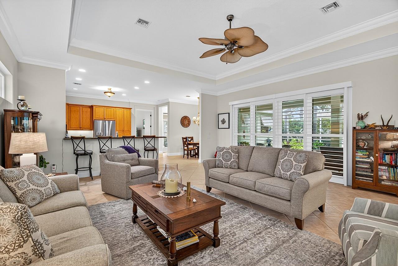 Seasons offers effortless island living. This 3 bedroom, 3.5 bath home includes a private guest cabana and a large den ideal for hosting family and guests. A whole-house generator and natural gas service provide efficient, reliable comfort, complemented by new AC units and tankless water heater. Recent updates include fresh interior and exterior paint, plantation shutters, and new kitchen appliances that elevate the home’s style. Located in a gated community with resort style amenities including tennis and pickleball, this home delivers refined coastal living close to the beach.