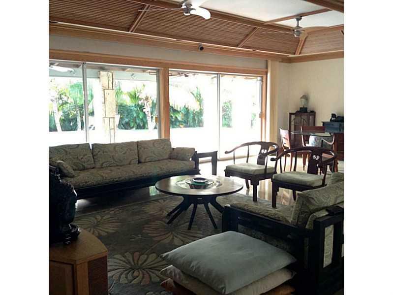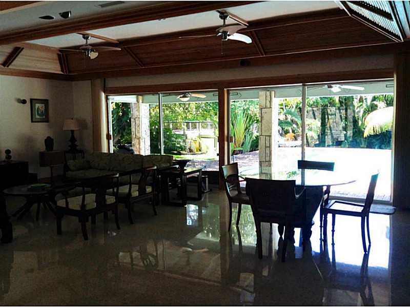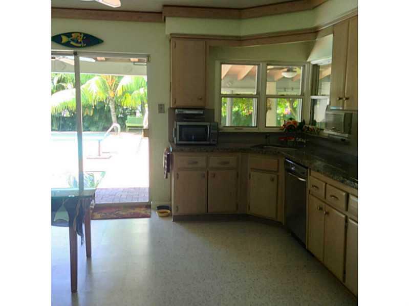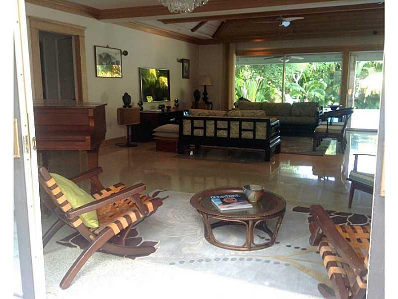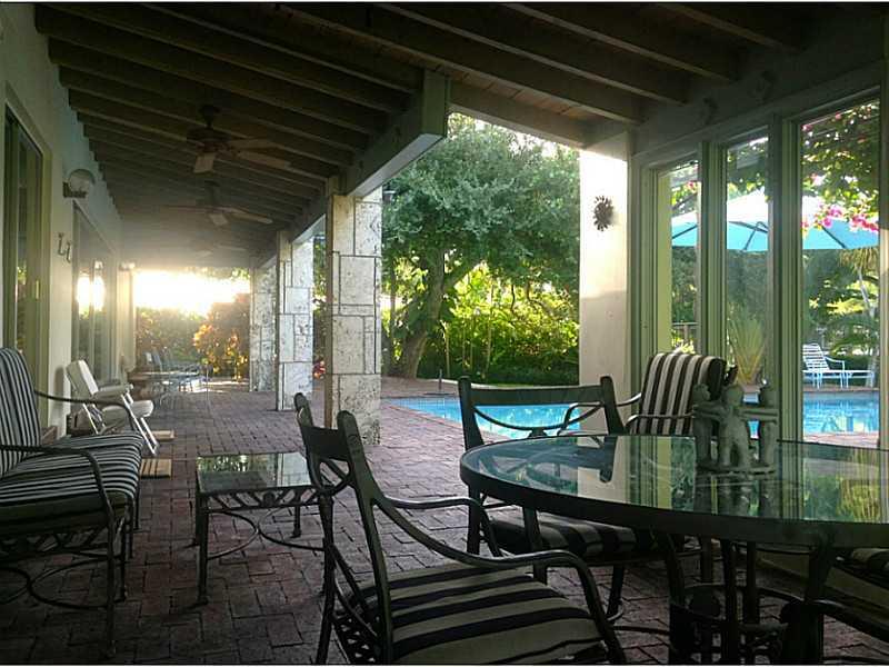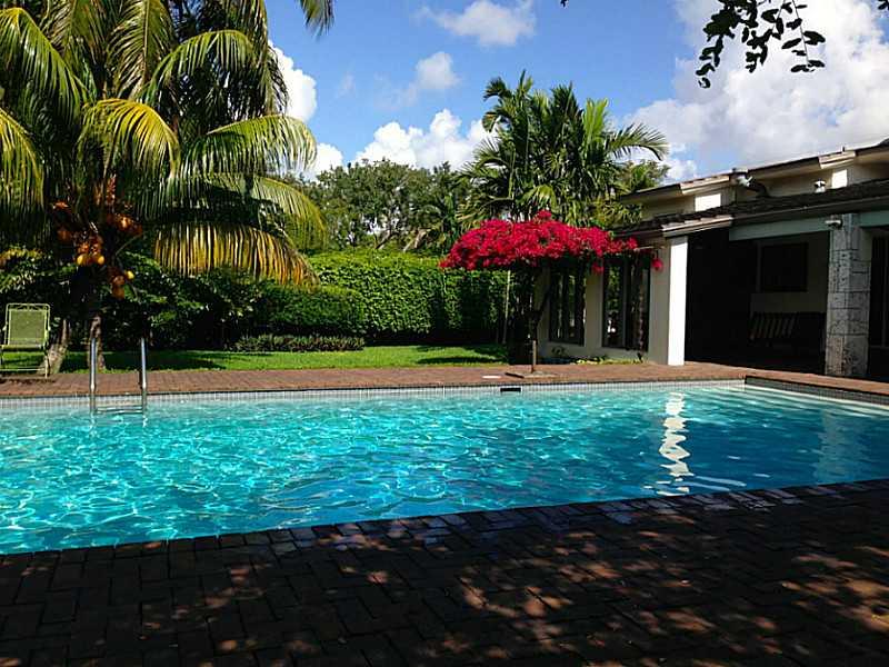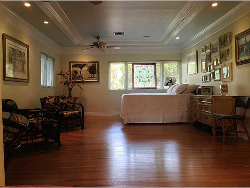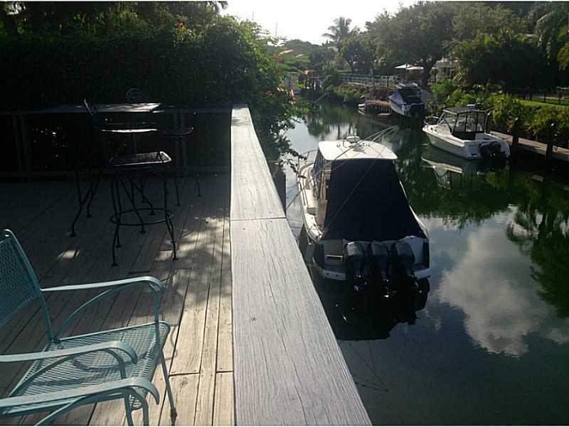 135' on GABLES WATERWAY Big-boat dockage. Coral cut-in boat slip w 800sf deck over enclosed boathouse. 2 tall bridges to Bay. High custom wood ceiling & full glass doors to patio, pool (20x33) & completely private yard. Covered patio & outdoor kitchen/di ning. 4th bedroom/den. Oversize 2car garage w maids area. Separate east & west side of house with 2 water heaters & 2 ACs. New roof. Enjoy as-is or expand for resale/profit. Huge expansion possible ~1/2 Acre High Land. FLOOD INS NOT REQUIRED! Owner/Agent