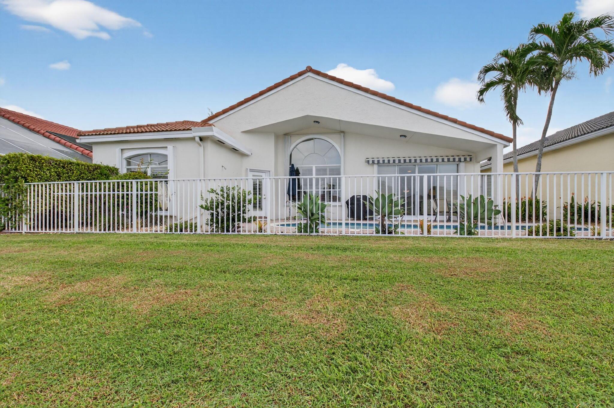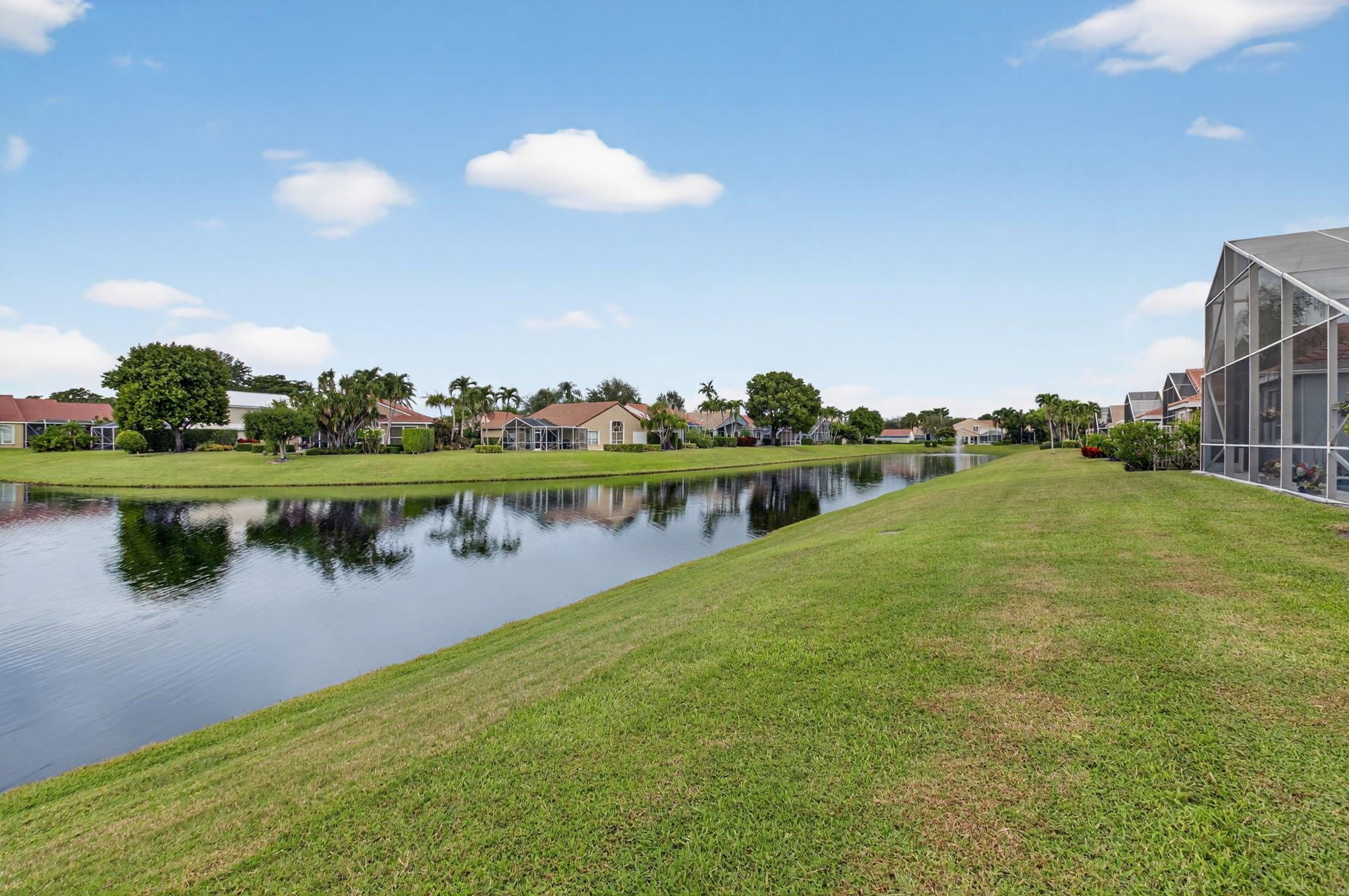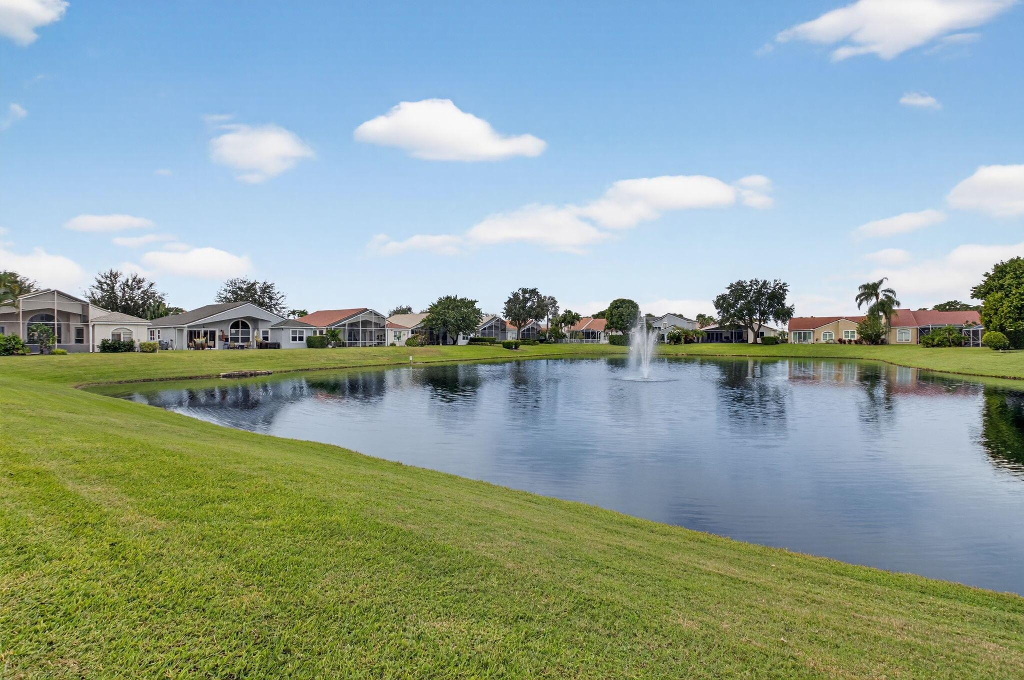 Enjoy the incredible sunset views overlooking the expansive lake & fountain from your own tropical paradise. The patio area has an electric awning which makes it so enjoyable on those bright days. Spotless and meticulously maintained 1-story home with 3 bedrooms & 2.1 baths plus 2-car garage. Ceramic tile and engineered wood flooring. Plantation shutters throughout. The kitchen has real wood cabinetry, granite counters & a full granite backsplash. The master bedroom features fully outfitted closets & en suite bath with dual sinks. New central vacuum system & new washer & dryer. Hurricane resistant garage door & accordion shutters.