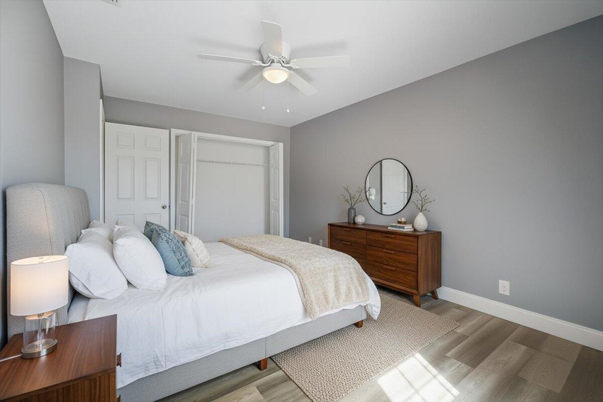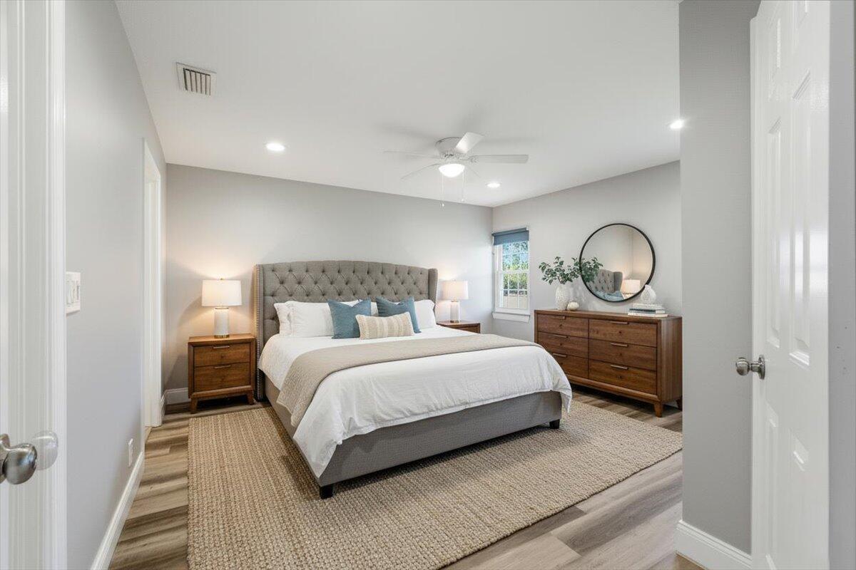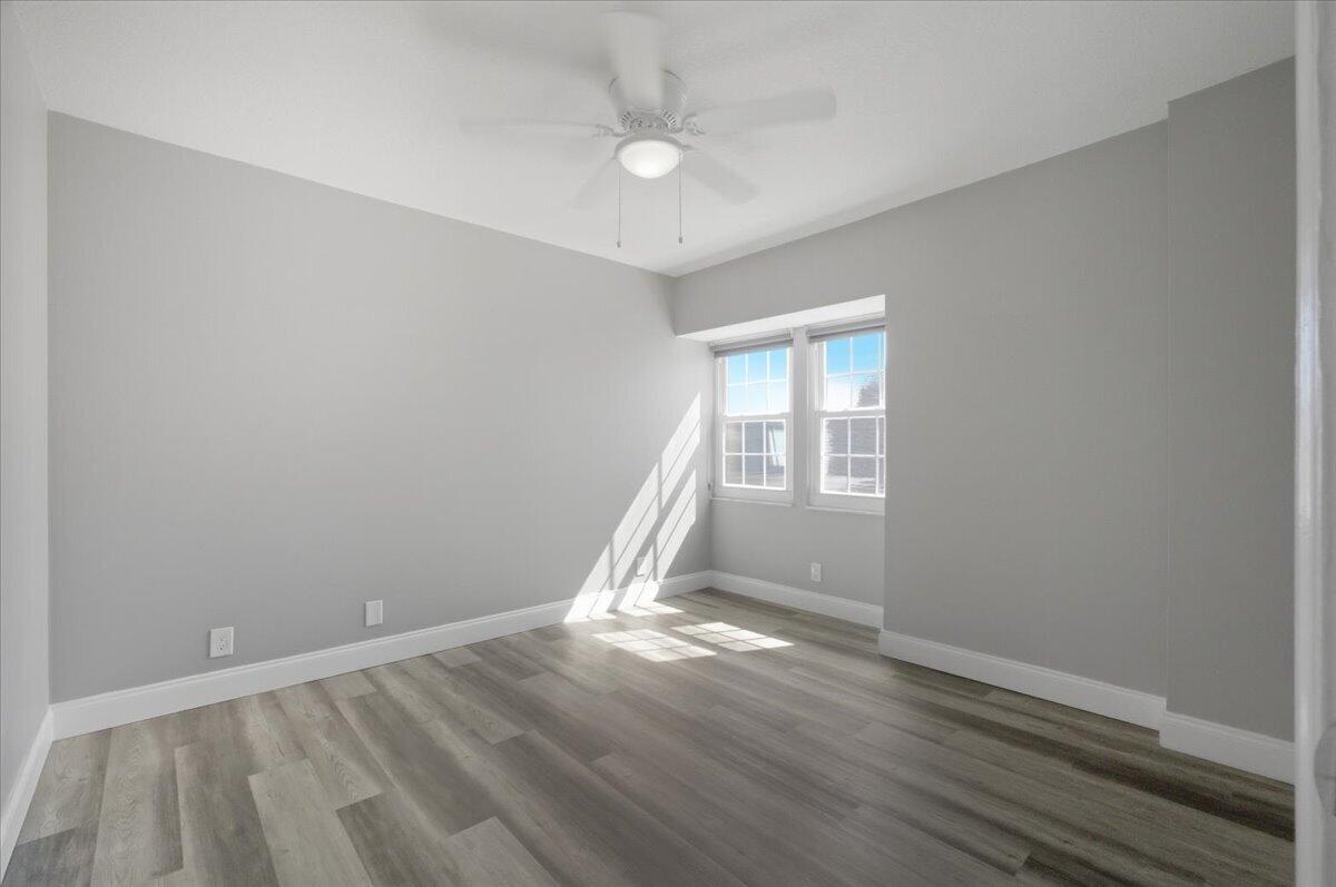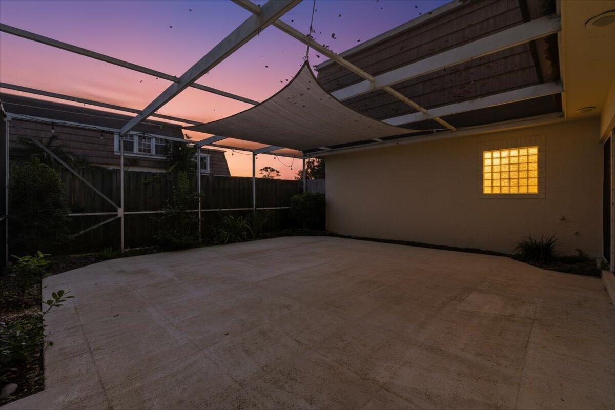 Beautifully updated 3-bedroom, 2.5-bath townhome in Winchester Courts. The open floor plan features light gray porcelain tile throughout the first floor, recessed LED lighting, and impact glass windows with solar shades on all windows. The kitchen includes white shaker cabinetry, quartz countertops, stainless steel appliances, and a large pantry. Sliding glass doors open to a spacious screened courtyard--perfect for outdoor dining or relaxing. Bathrooms feature modern tile and fixtures, and bedrooms offer generous closet space. The roof was replaced in 2023. Centrally located near shopping, dining, and major routes, this move-in ready home offers comfort, style, and convenience in a desirable community!