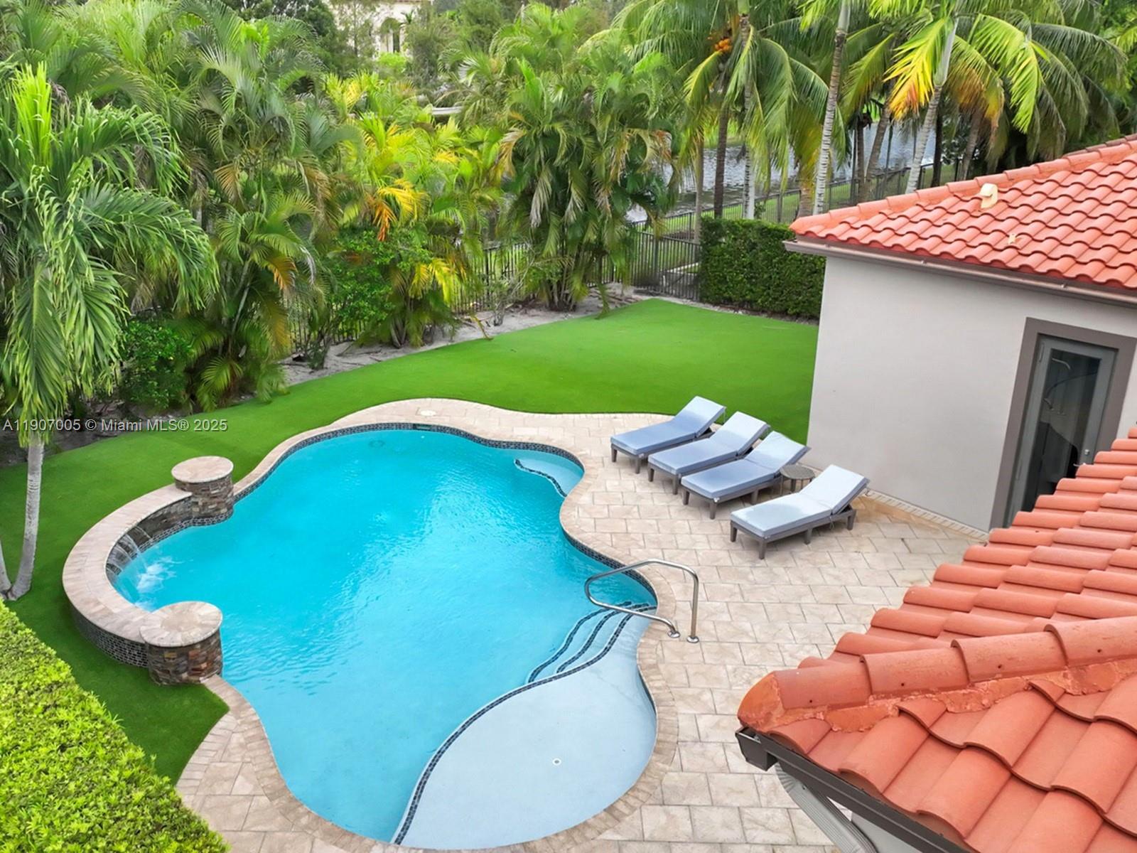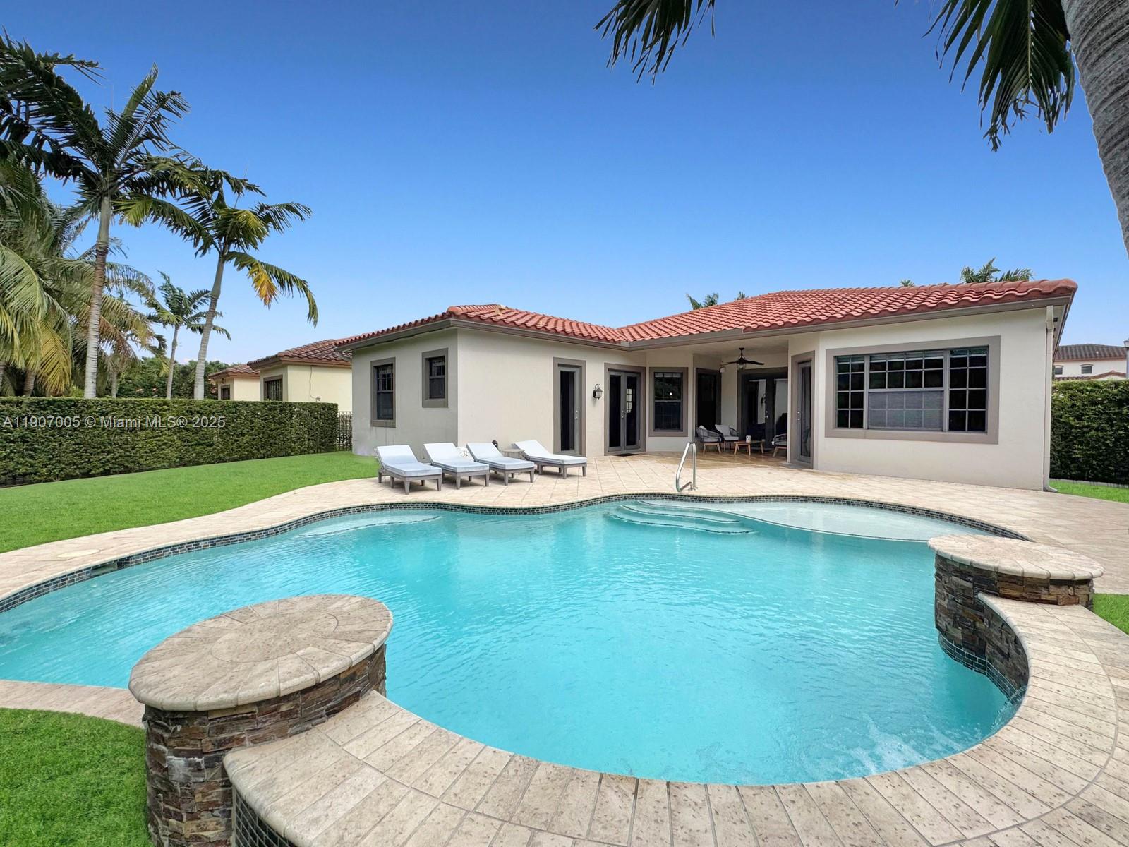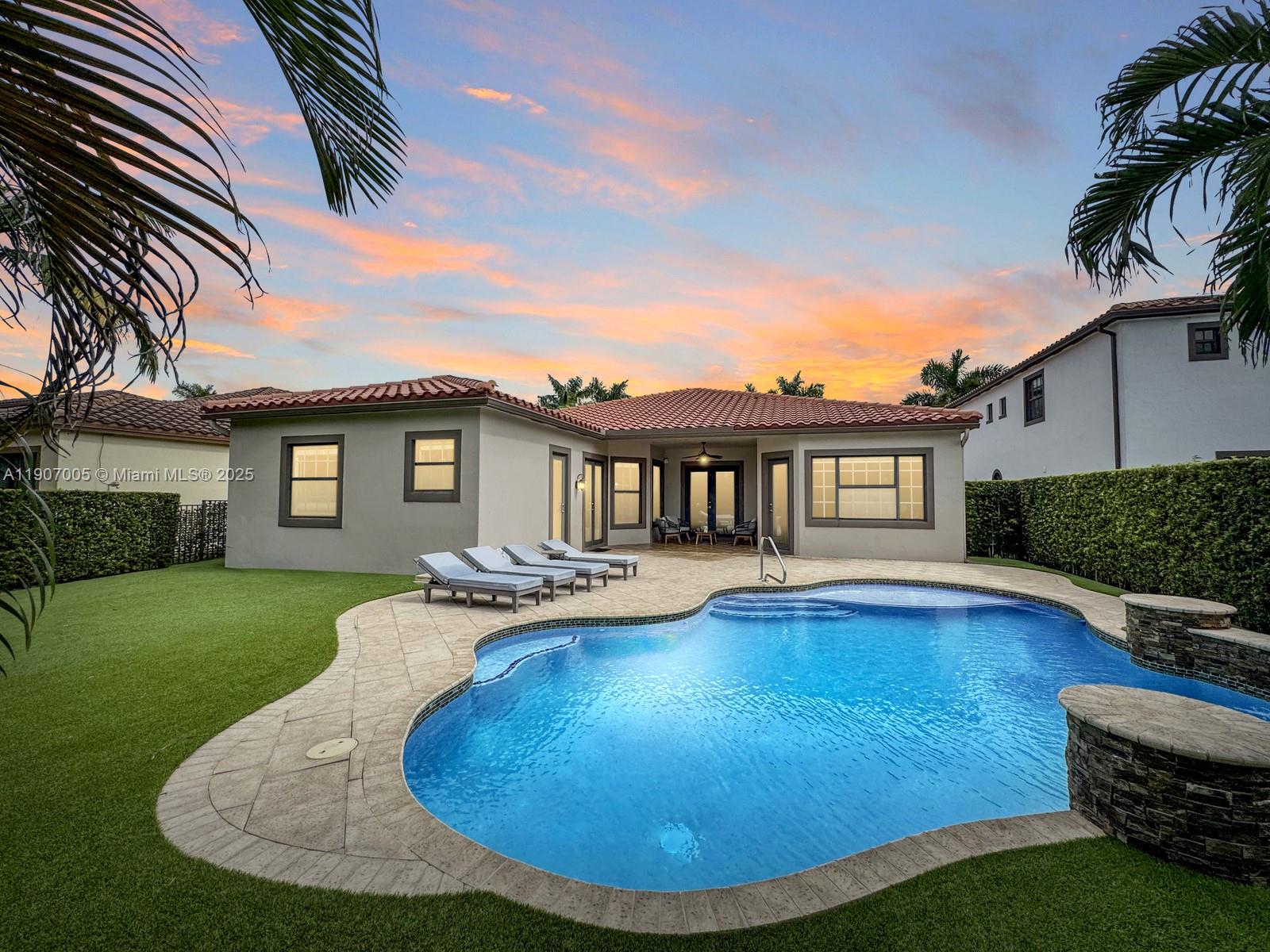 Discover luxury living in the sought-after manned gated community of Estada in Cooper City. This elegant 4 bed, 3 bath home features a flexible 3 way split floor plan. Step into a beautifully designed home with laminate wood floors throughout. The kitchen has white wood-style cabinets, granite countertops & stainless steel appliances. The expansive primary suite offers true serenity, featuring custom walk-in closets & a luxurious bath with dual vanities, shower & a jetted soaking tub. Enjoy your private backyard oasis with heated pool, waterfall, turf yard, & canal view. Additional features: Impact windows/doors, new AC, water heater & pool heater. Walking distance to houses of worship. Monterra resort-like amenities include clubhouse, fitness center, sports courts, playgrounds, and more.