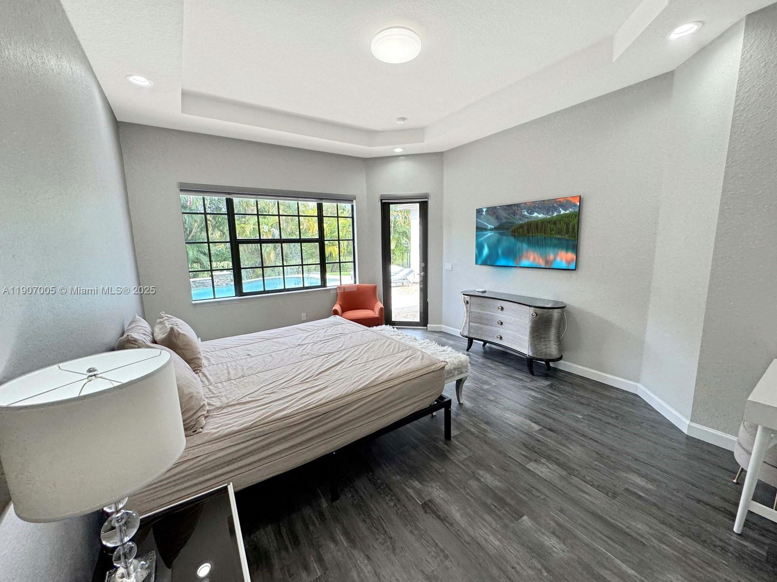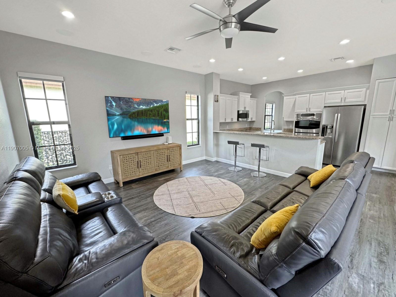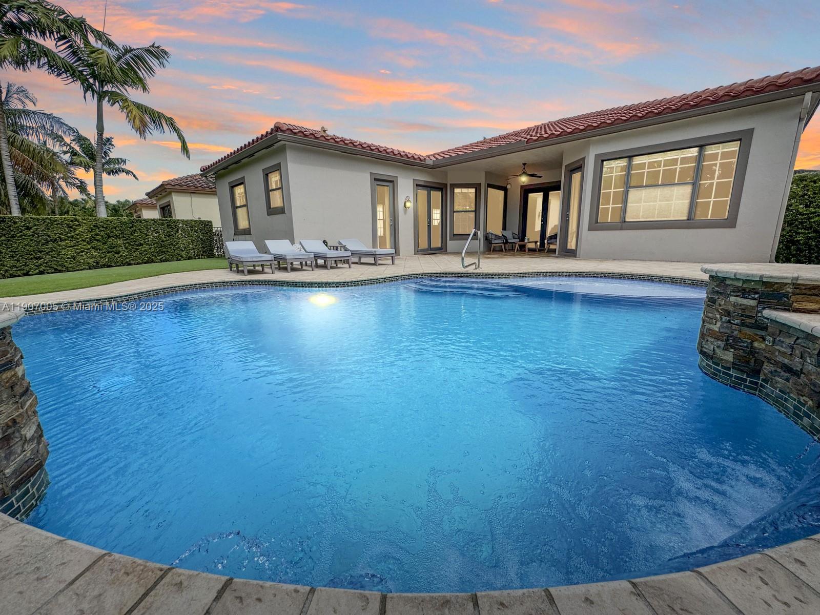 Discover luxury living in the sought-after manned gated community of Estada in Cooper City. This elegant 4 bed, 3 bath home features a flexible 3 way split floor plan. Step into a beautifully designed home with laminate wood floors throughout. The kitchen has white wood-style cabinets, granite countertops & stainless steel appliances. The expansive primary suite offers true serenity, featuring custom walk-in closets & a luxurious bath with dual vanities, shower & a jetted soaking tub. Enjoy your private backyard oasis with heated pool, waterfall, turf yard, & canal view. Additional features: Impact windows/doors, new AC, water heater & pool heater. Walking distance to houses of worship. Monterra resort-like amenities include clubhouse, fitness center, sports courts, playgrounds, and more.
