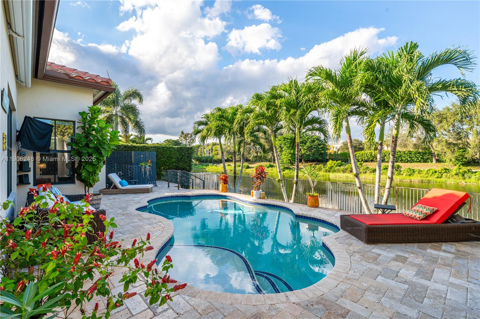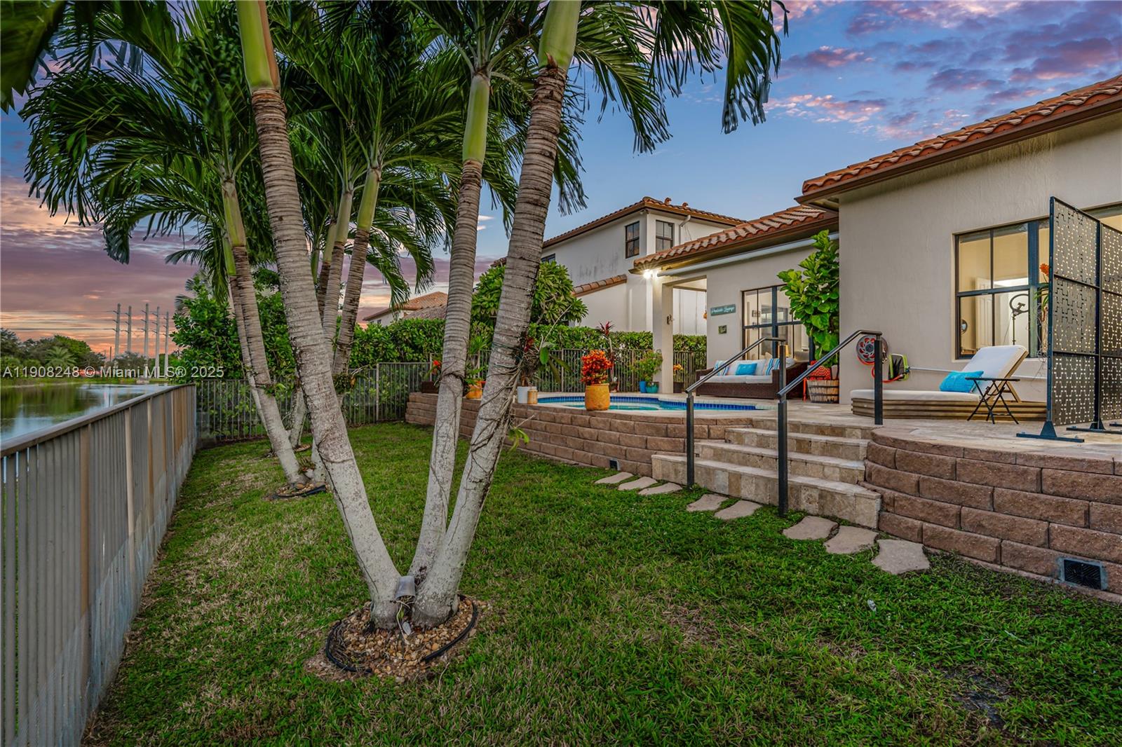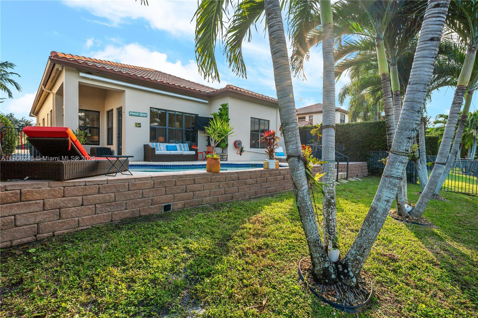 GORGEOUS 4-BED, 3-BATH CHAPALA MODEL LOCATED IN THE LUXURIOUS GATED COMMUNITY OF MONTERRA! BRIGHT & FUNCTIONAL FLOORPLAN FEATURING TILE FLOORING & SOARING VOLUME CEILINGS THROUGHOUT. THE UPGRADED KITCHEN FEATURES QUARTZ COUNTERTOPS, WHITE SHAKER CABINETS, STAINLESS STEEL APPLIANCES, & OPENS TO THE SPACIOUS LIVING AREA - PERFECT FOR ENTERTAINING! ENJOY PEACE OF MIND WITH IMPACT WINDOWS & DOORS THROUGHOUT & A BRAND NEW A/C UNIT (2025). THE BACKYARD IS YOUR PRIVATE RETREAT! FEATURING A HEATED POOL, MOTORIZED RETRACTABLE AWNING, & TRANQUIL WATER VIEWS IN A FULLY FENCED SETTING. MONTERRA OFFERS RESORT-STYLE AMENITIES INCLUDING A CLUBHOUSE, POOL, FITNESS CENTER, TENNIS & BASKETBALL COURT, DOG PARK, & MORE. PRIME LOCATION CLOSE TO A+ SCHOOLS, MAJOR HIGHWAYS, & EXCELLENT SHOPPING & DINING OPTIONS!