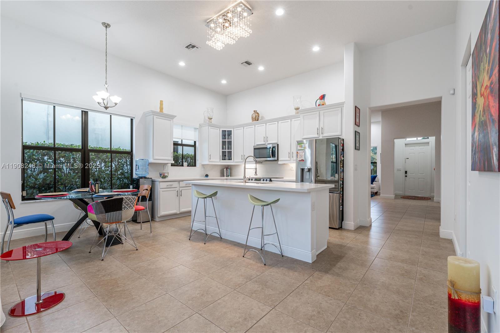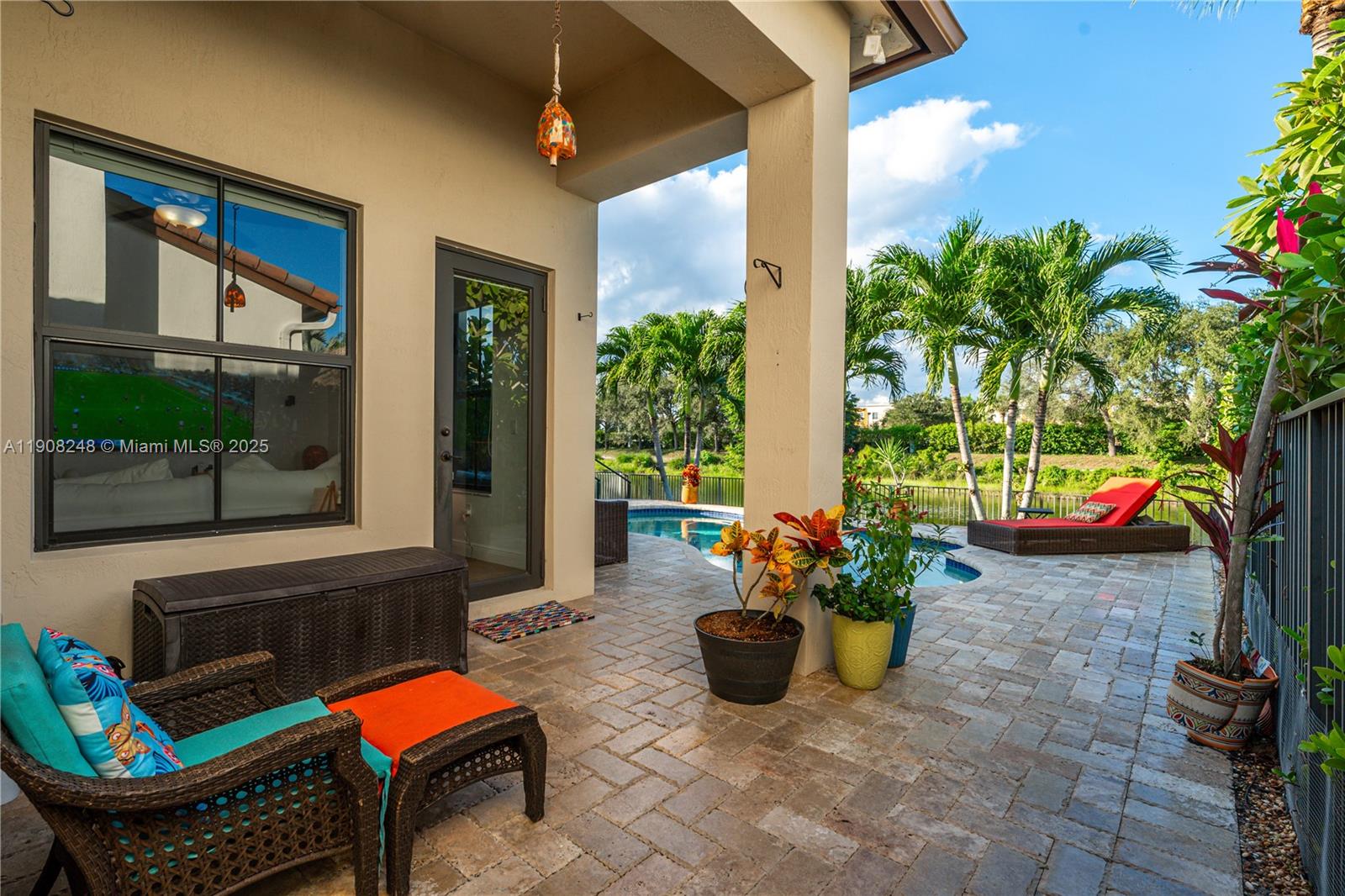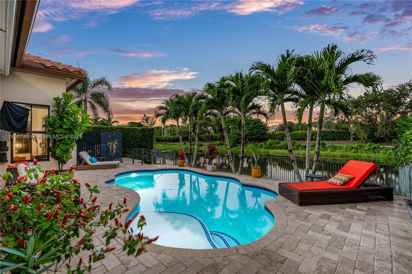 GORGEOUS 4-BED, 3-BATH CHAPALA MODEL LOCATED IN THE LUXURIOUS GATED COMMUNITY OF MONTERRA! BRIGHT & FUNCTIONAL FLOORPLAN FEATURING TILE FLOORING & SOARING VOLUME CEILINGS THROUGHOUT. THE UPGRADED KITCHEN FEATURES QUARTZ COUNTERTOPS, WHITE SHAKER CABINETS, STAINLESS STEEL APPLIANCES, & OPENS TO THE SPACIOUS LIVING AREA - PERFECT FOR ENTERTAINING! ENJOY PEACE OF MIND WITH IMPACT WINDOWS & DOORS THROUGHOUT & A BRAND NEW A/C UNIT (2025). THE BACKYARD IS YOUR PRIVATE RETREAT! FEATURING A HEATED POOL, MOTORIZED RETRACTABLE AWNING, & TRANQUIL WATER VIEWS IN A FULLY FENCED SETTING. MONTERRA OFFERS RESORT-STYLE AMENITIES INCLUDING A CLUBHOUSE, POOL, FITNESS CENTER, TENNIS & BASKETBALL COURT, DOG PARK, & MORE. PRIME LOCATION CLOSE TO A+ SCHOOLS, MAJOR HIGHWAYS, & EXCELLENT SHOPPING & DINING OPTIONS!