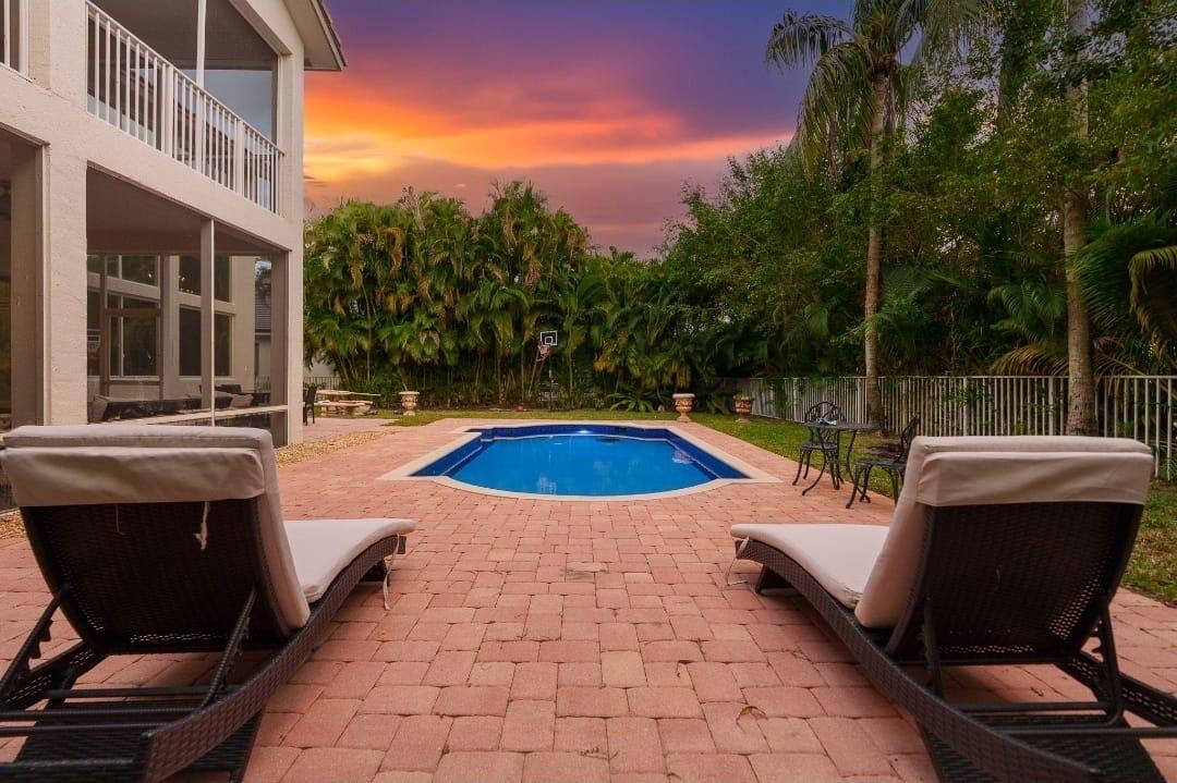 This exquisite home offers an open floor plan with high-end upgrades throughout. The main level features new 32''x32'' white and gray porcelain tile, glass stair railings, crown moldings, and a renovated kitchen and guest bath. A custom 300-bottle wine cellar adds sophistication. Recent updates include a resurfaced pool and new carpet on the stairs and all upstairs bedrooms. A first-floor den or office with a full bath provides flexibility. Enjoy lush landscaping, a beautiful pool, a covered screened patio, and a private screened balcony off the primary suite.