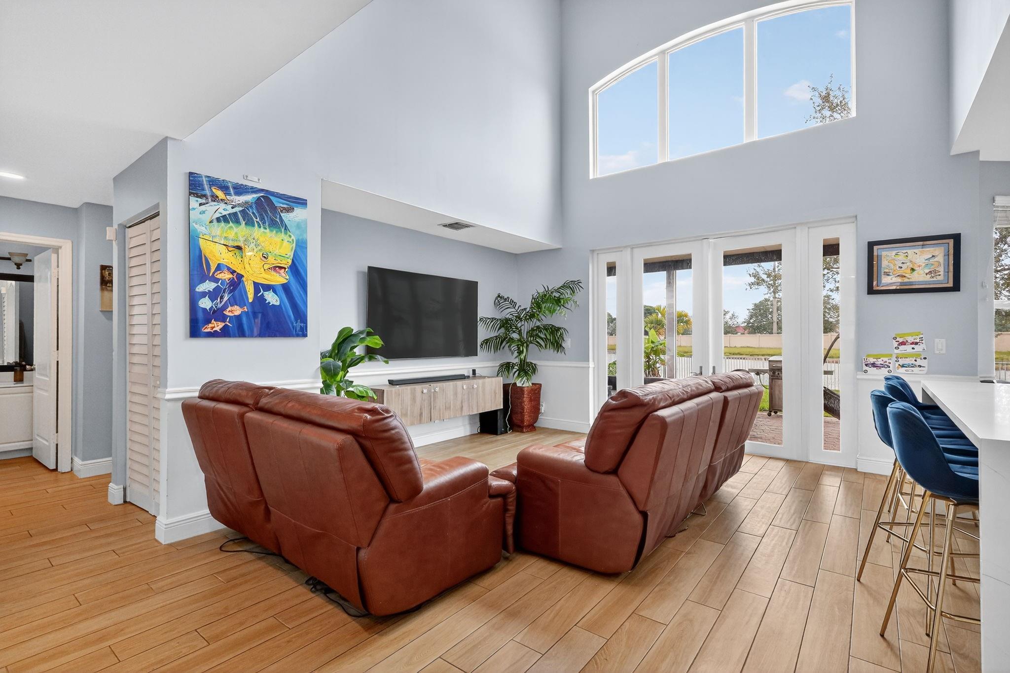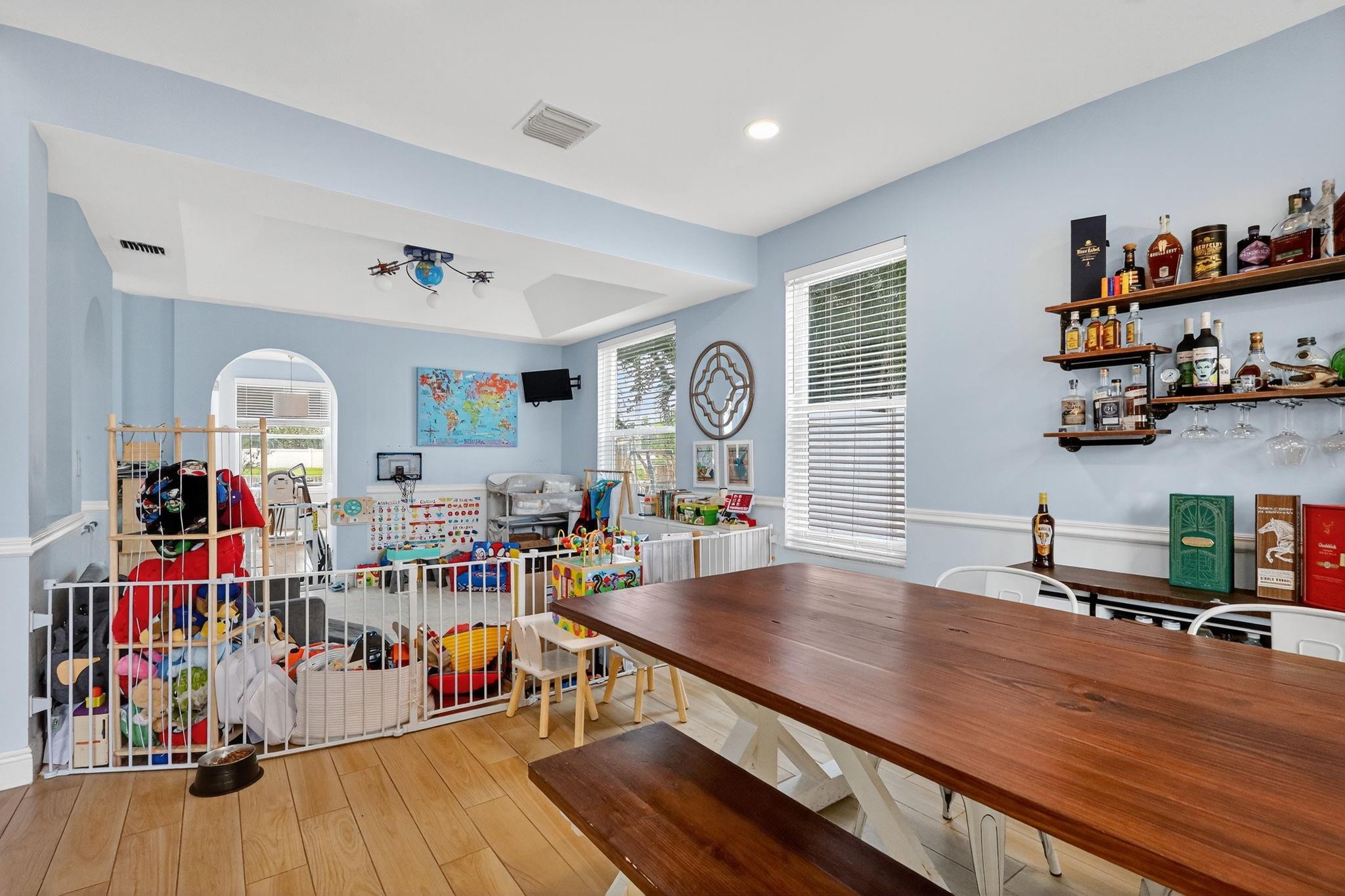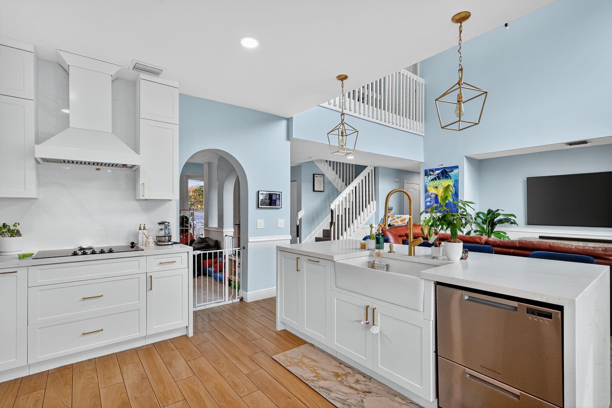 Perfectly situated on a premium waterfront lot, this stunning 4-bedroom, 3-bath home in the desirable gated community of Encantada offers over 2,400 sqft of beautifully reimagined living space designed for comfort and functionality. Step inside to discover a gorgeous upgraded kitchen with new appliances, and a spacious center island that seamlessly connects the family and living area. A versatile downstairs bedroom or office with a full bath adds flexibility for guests or work-from-home needs. Thoughtful touches include a custom doggie room under the stairs, a mudroom for easy transitions, and hurricane-impact windows and doors throughout. Step outside to your backyard paradise featuring a grand area to entertain and a new playground while enjoying the lake views.