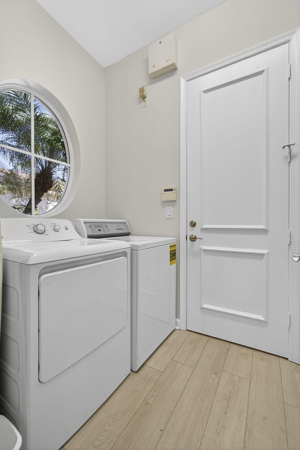 Rarely do you find a home with such a spectacular golf view, impact windows and doors, and a complete renovation. This three-bedroom, three-bath residence showcases a modern, contemporary kitchen and master bath, luxury vinyl flooring throughout, decorator finishes, custom paint colors, LED lighting, and more.The spacious primary suite offers beautiful views and a serene retreat. The master bathroom was impeccably designed with a freestanding tub, stylish cabinetry, new tile, and designer fixtures creating a spa-like atmosphere.The second bedroom is a private en suite featuring a large walk-in closet, providing comfort and privacy for family or guests. A third bedroom includes a Murphy bed, making it ideal for use as an office or den with convenient access to a full bath.