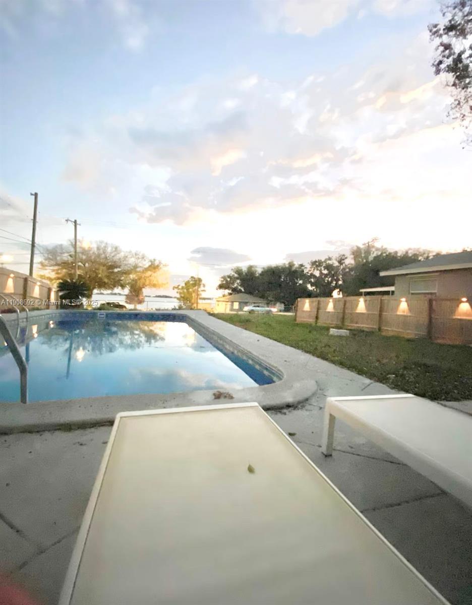 This newly renovated pool home comes with beautiful lake views! The interior features a brand-new kitchen with stainless steel appliances, granite countertops and new cabinets, new A/C, new windows and sliding door providing plenty of natural light, formal dining room, spacious living area, updated bedrooms and bathrooms, laundry room, new electric water heater, updated electrical and plumbing, all new flooring, ceiling fans and light fixtures, and fresh paint. Escape the Florida heat in this home’s updated pool with a new vinyl liner and pump, diving board, and two ladders, with beautiful views of Lake McLeod from the backyard and pool deck. Enjoy the newly landscaped front yard from the large, covered front porch.